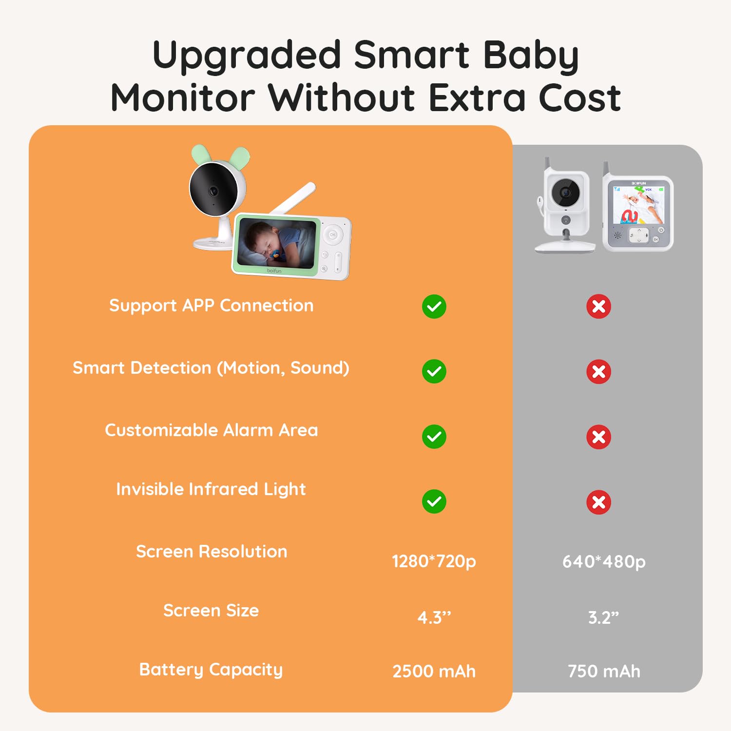 - [𝟒𝐱 𝐙𝐨𝐨𝐦 & 𝟏𝟎𝟖𝟎𝐏 𝐇𝐃 𝐍𝐢𝐠𝐡𝐭 𝐕𝐢𝐬𝐢𝐨𝐧 & 𝐈𝐧𝐯𝐢𝐬𝐢𝐛𝐥𝐞 𝐈𝐧𝐟𝐫𝐚𝐫𝐞𝐝 𝐋𝐢𝐠𝐡𝐭 ] BOIFUN wireless baby monitor provides a 4.3-inch large screen with 1080P resolution, enabling high-quality and eye-protecting viewing. And 4x zoom function allows you to clearly see your baby's cute expression without entering the baby's room. And the thoughtful invisible infrared light design protects your baby's quality sleep while ensuring it doesn't harm your child's vision.