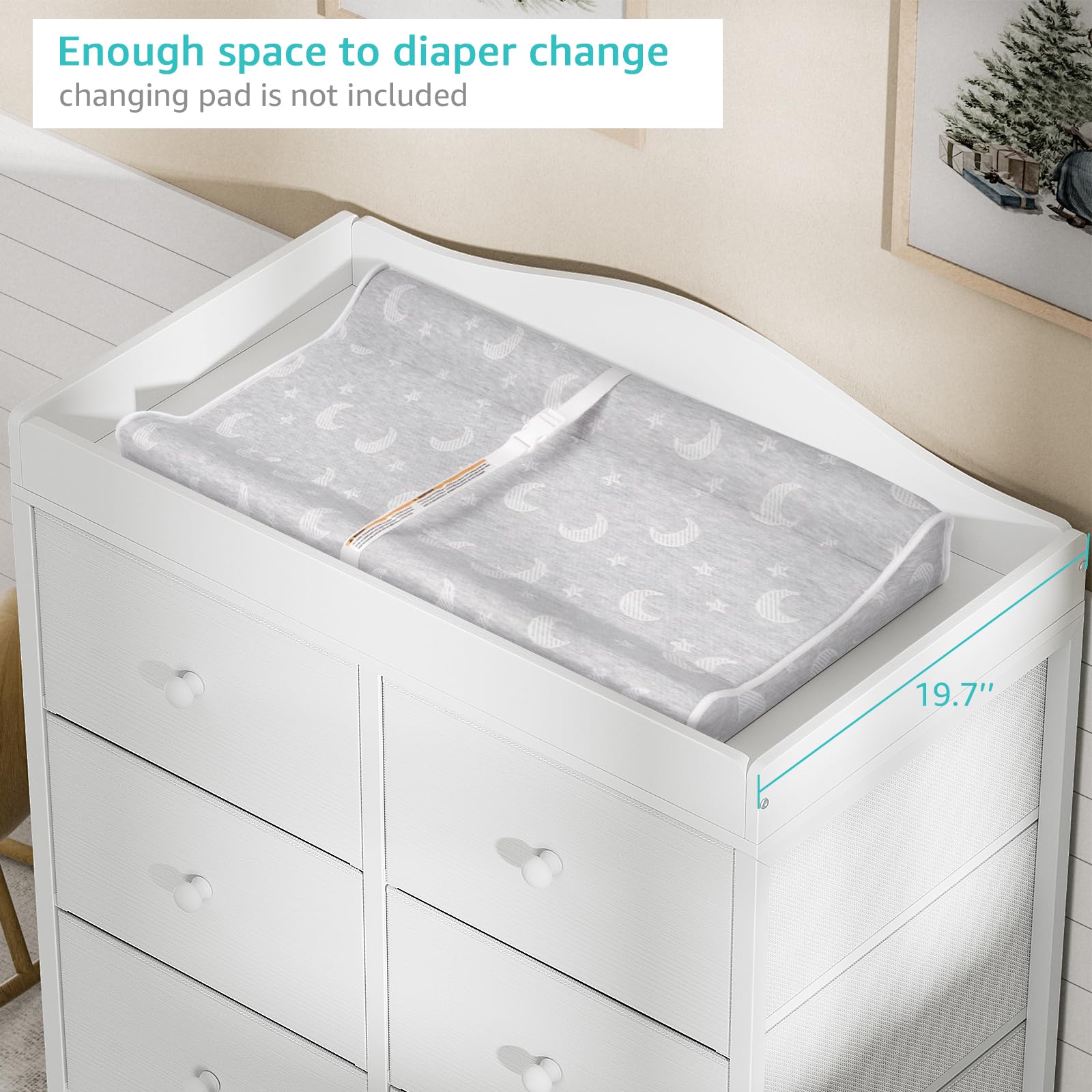 - 6 Fabric Drawers Storage: Features 6 drawers for baby essentials, such as babies' clothes, baby cream, towels, and socks. Changing pad not included