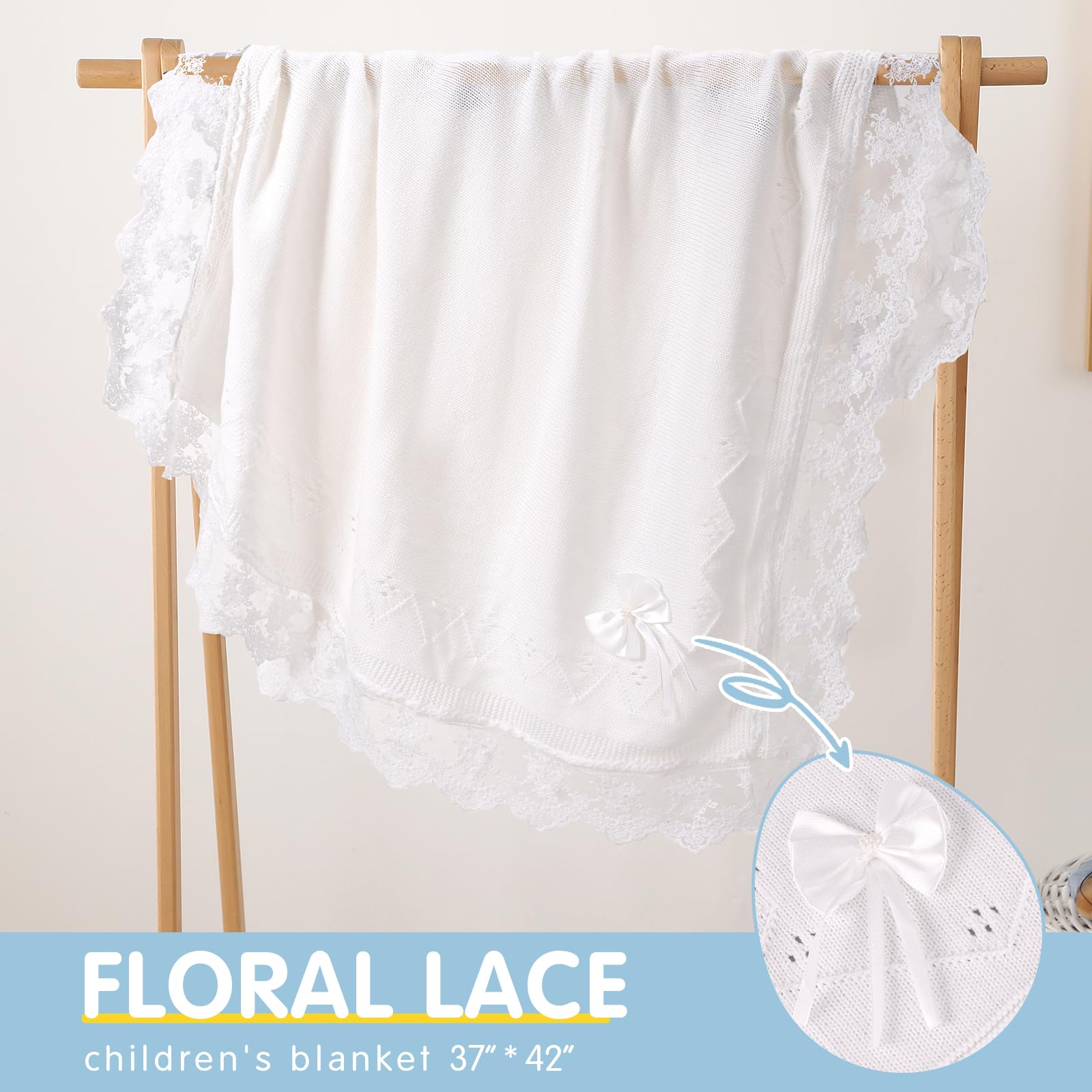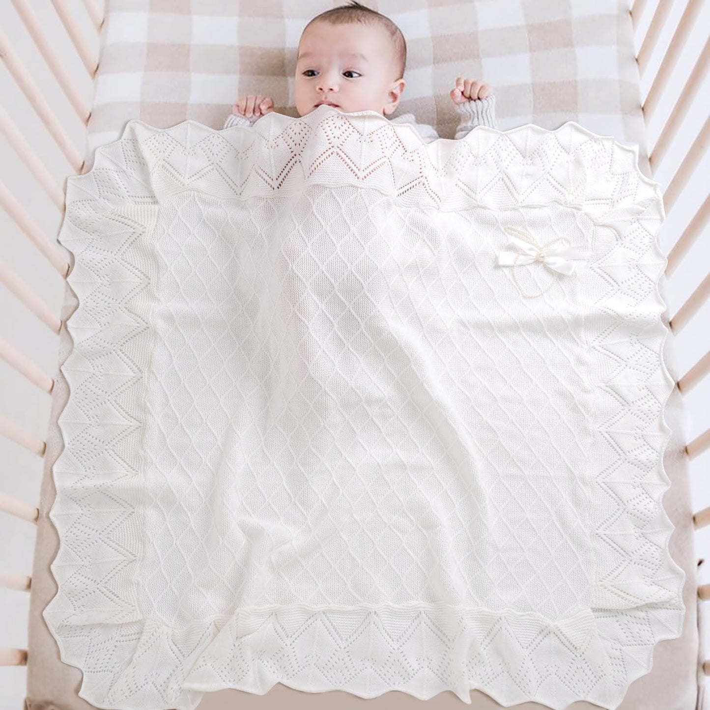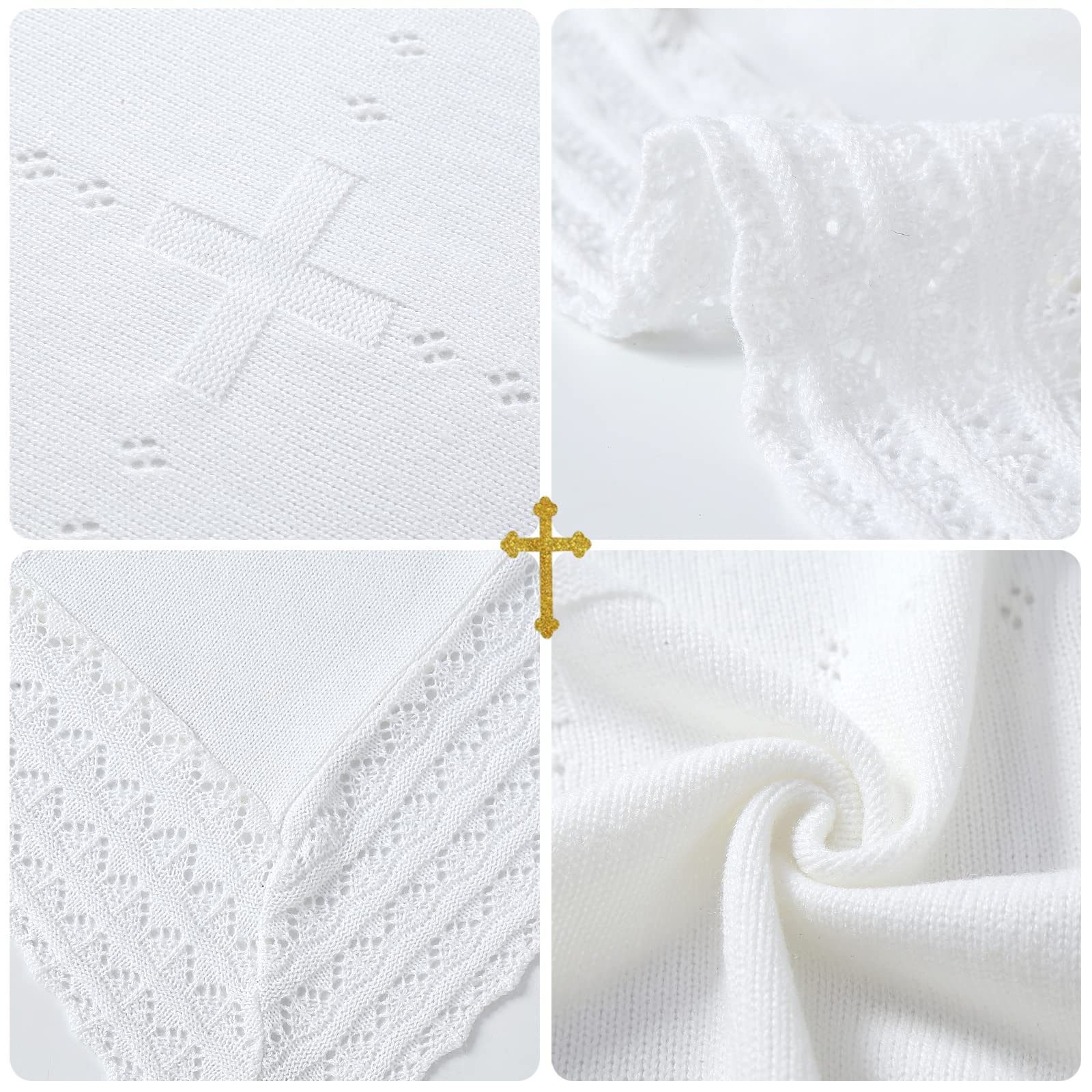 - 【GOOD QUALITY】Our white baby blanket made from soft cotton and polyester fabric,skin-friendly and comfortable. Our knit baby blanket is quick-drying and machine washable and tumble dried on low, the more you wash the softer it becomes.The cotton baby blanket suitable for all seasons, durable, and a good baptism gifts for boys and girls,and also the baby essentials for newborn girls & boys