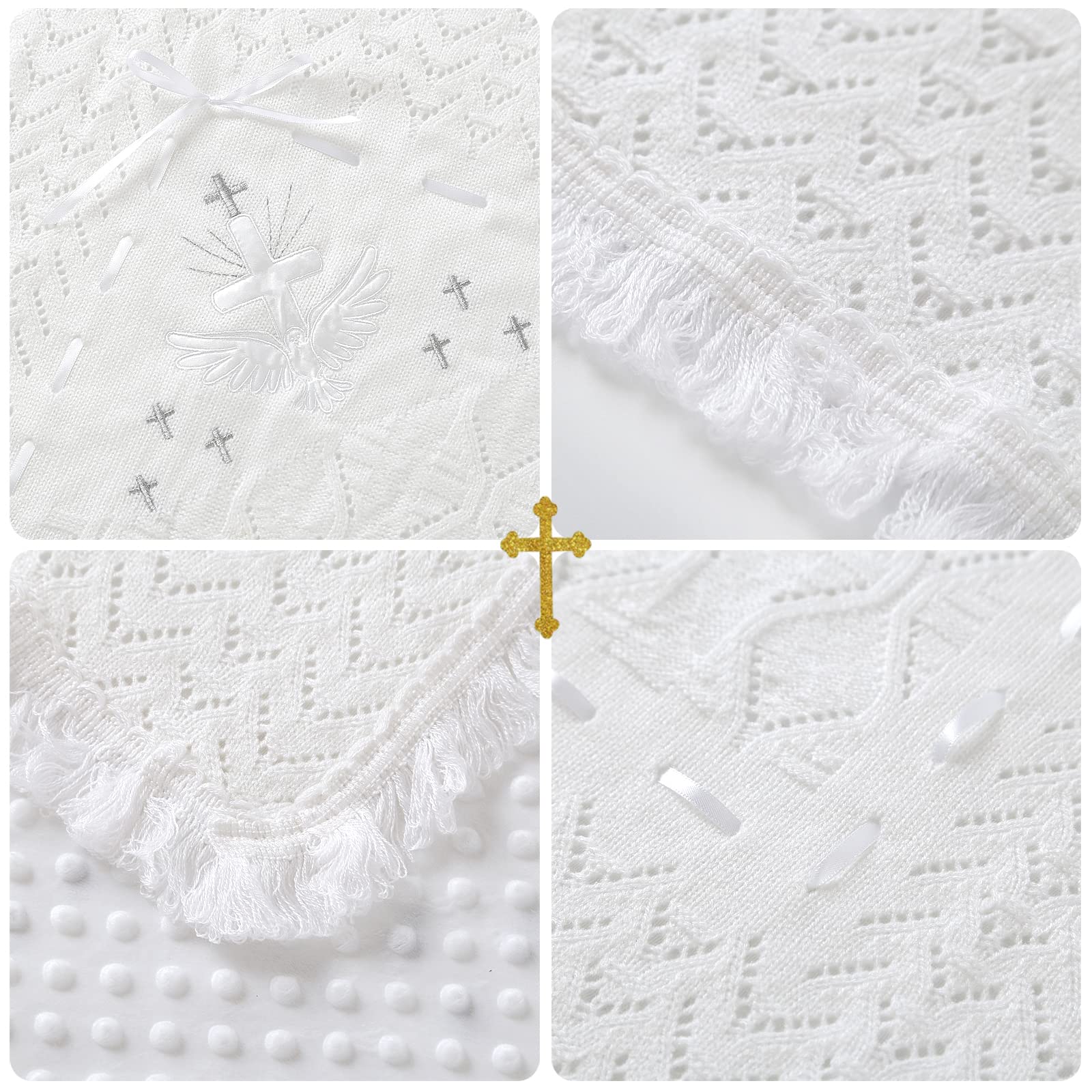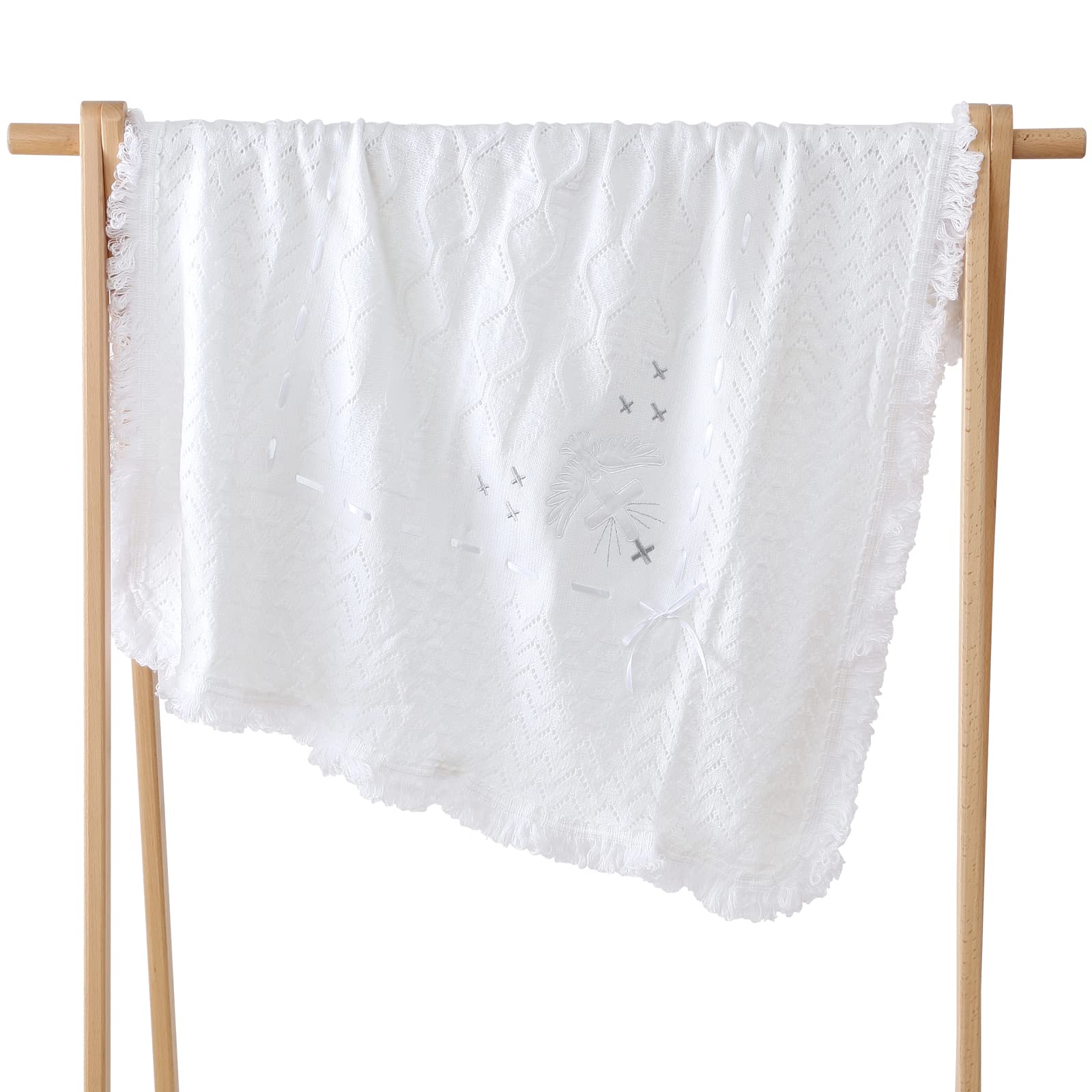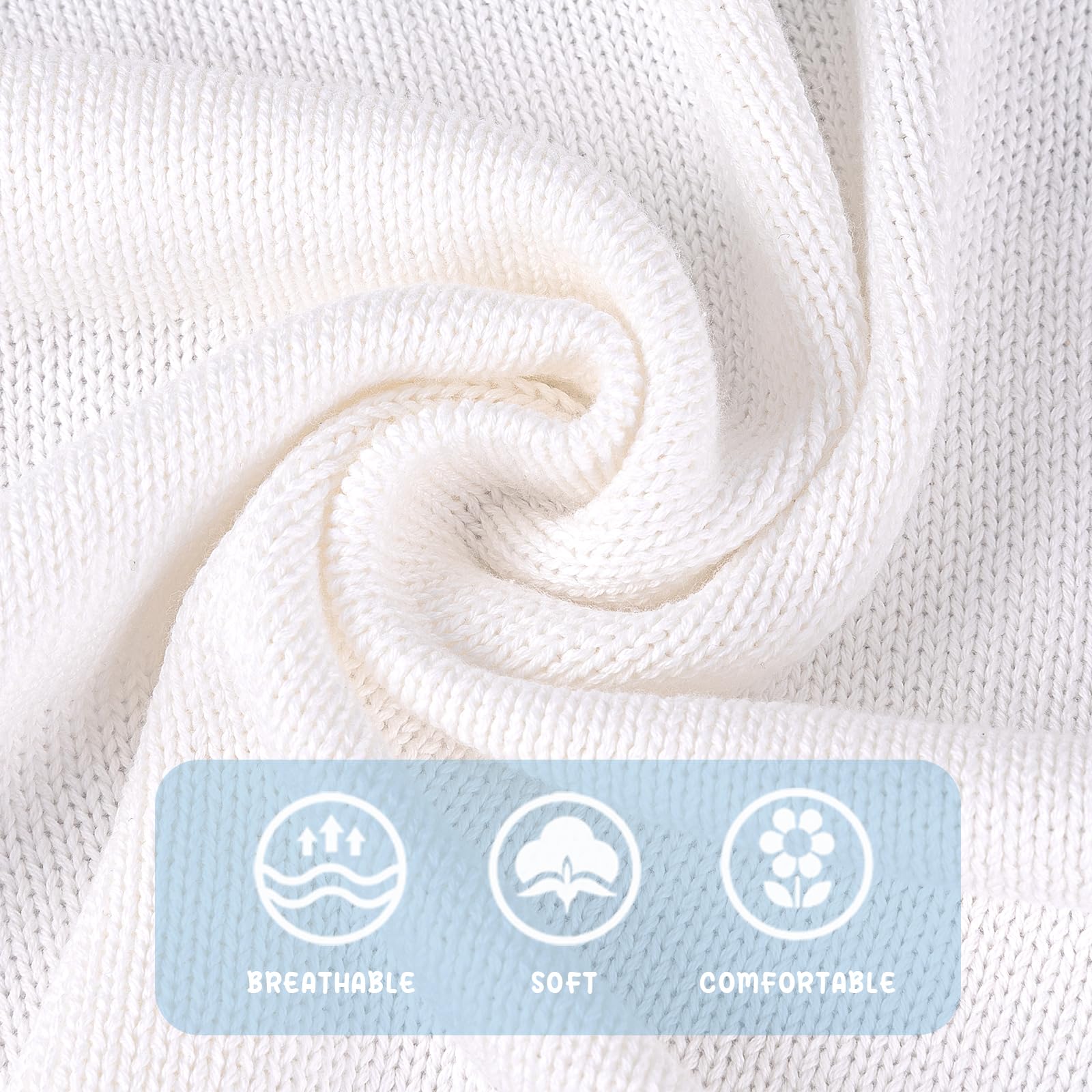 - 【GOOD QUALITY】Our white baby blanket made from soft cotton and polyester fabric,skin-friendly and comfortable. Our knit baby blanket is quick-drying and machine washable and tumble dried on low, the more you wash the softer it becomes.The cotton baby blanket suitable for all seasons, durable, and a good baptism gifts for boys and girls,and also the baby essentials for newborn girls & boys