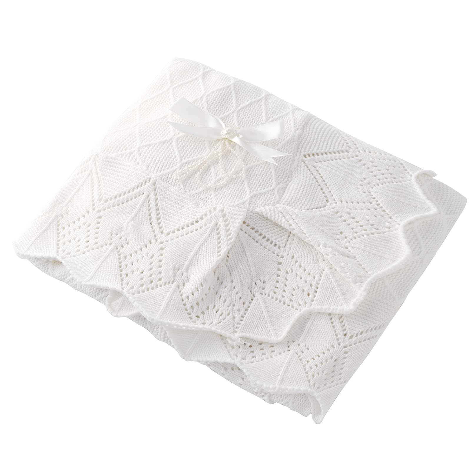 - 【Exquisite Designs】This baby blankets newborn is designed with a cellular construction and reticulate knitting craftwork can bring your extraordinary hand feel and advanced texture .Our receiving blankets neutral with pearl ribbon decoration. Our baby boy girl blanket not only can keep the baby comfortable and cozy, but also this exquisite appearance is very suitable for christening gifts.