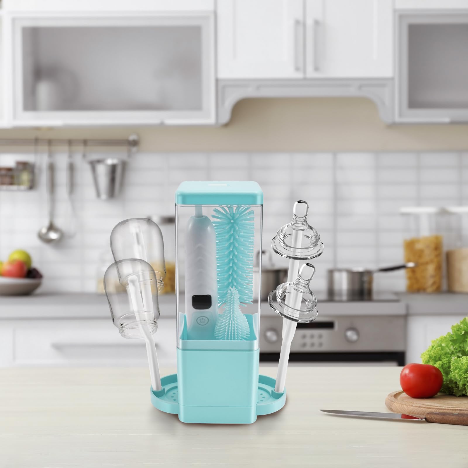 - Complete Cleaning Kit: This set includes a bottle brush, nipple brush, straw brush, dustproof storage box, USB charging cable, electric brush body, drainage rack, and two bottle drying racks, providing a comprehensive cleaning solution for parents.