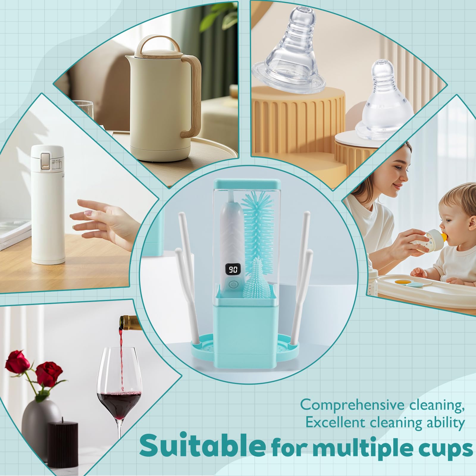 - Adjustable Cleaning Power: The electric bottle brush features adjustable cleaning intensity, allowing you to customize the cleaning strength for optimal results and improved efficiency.