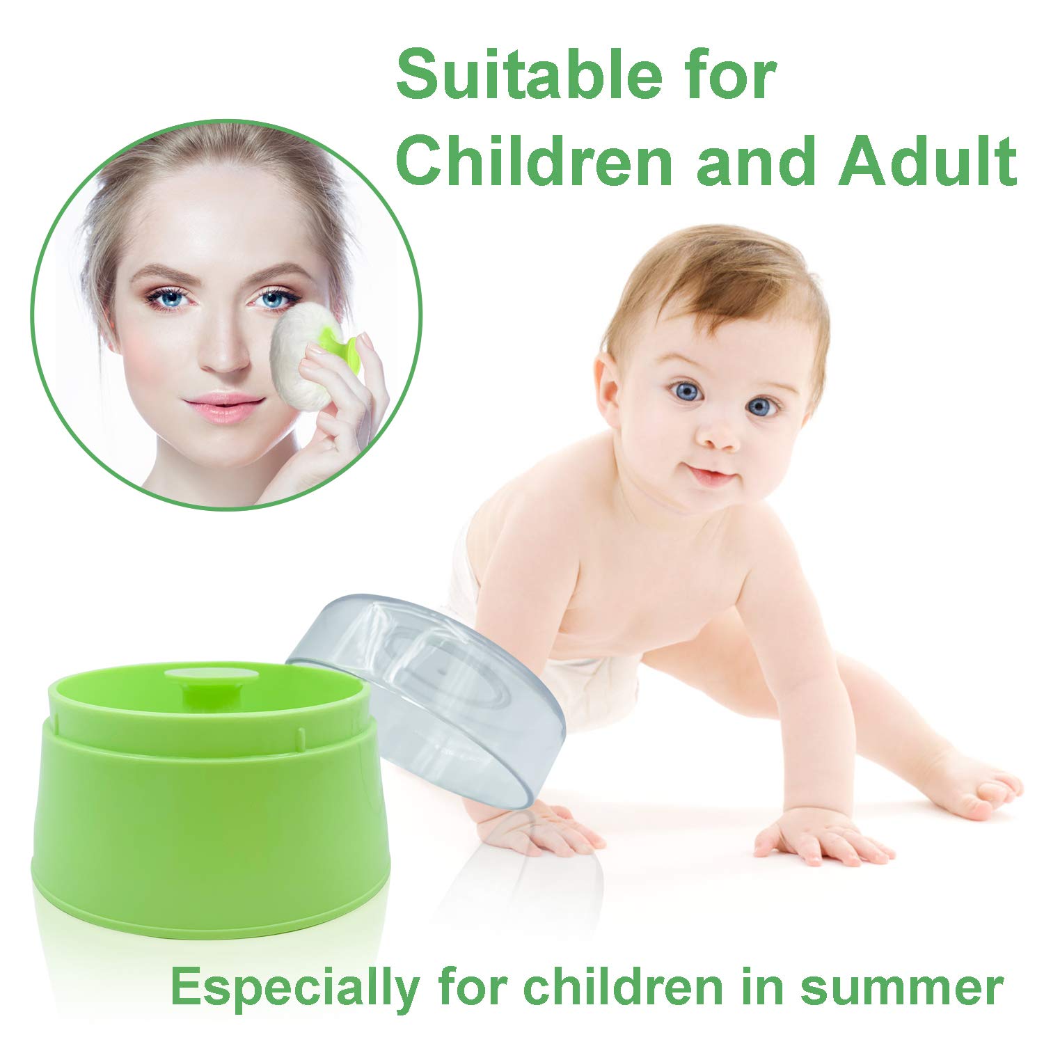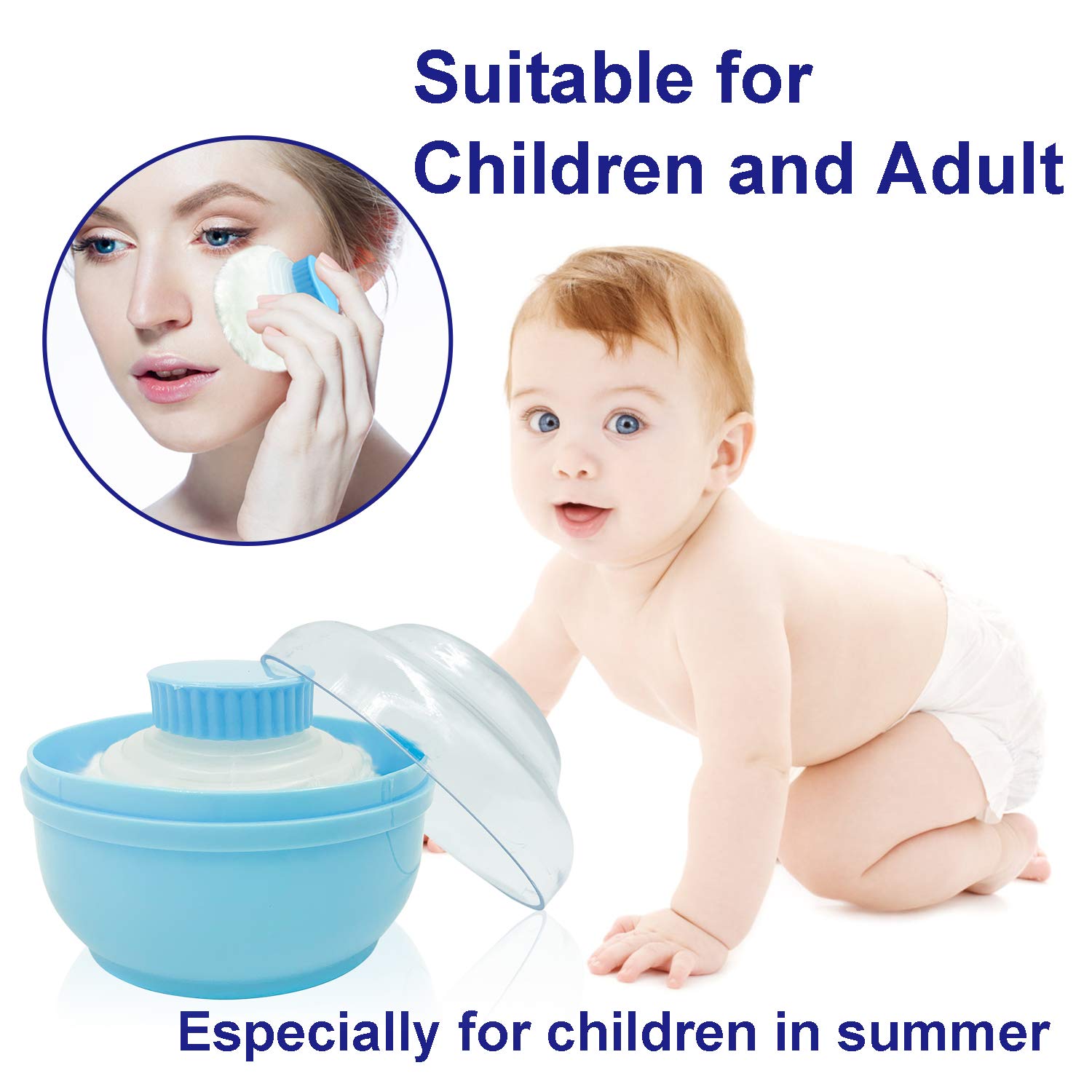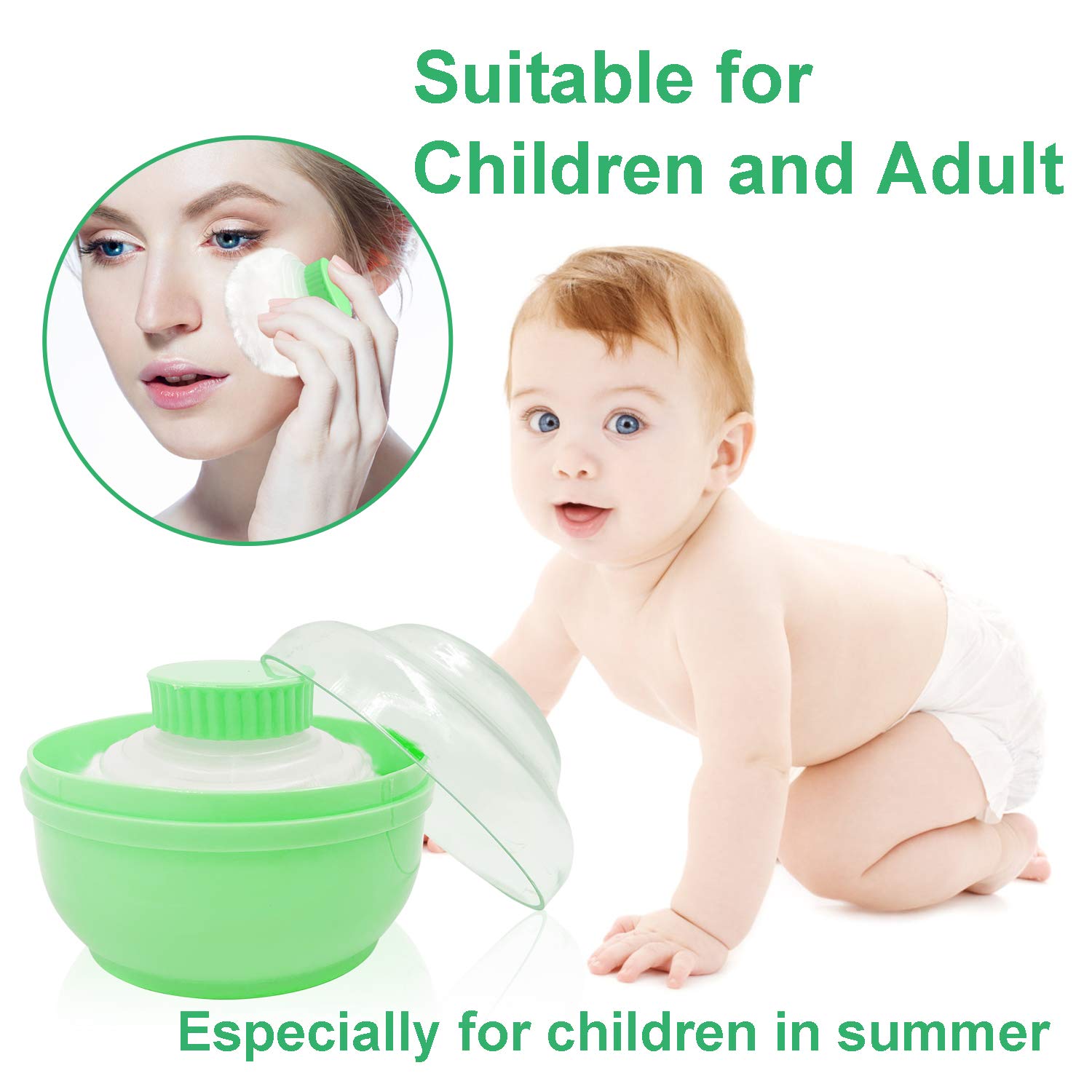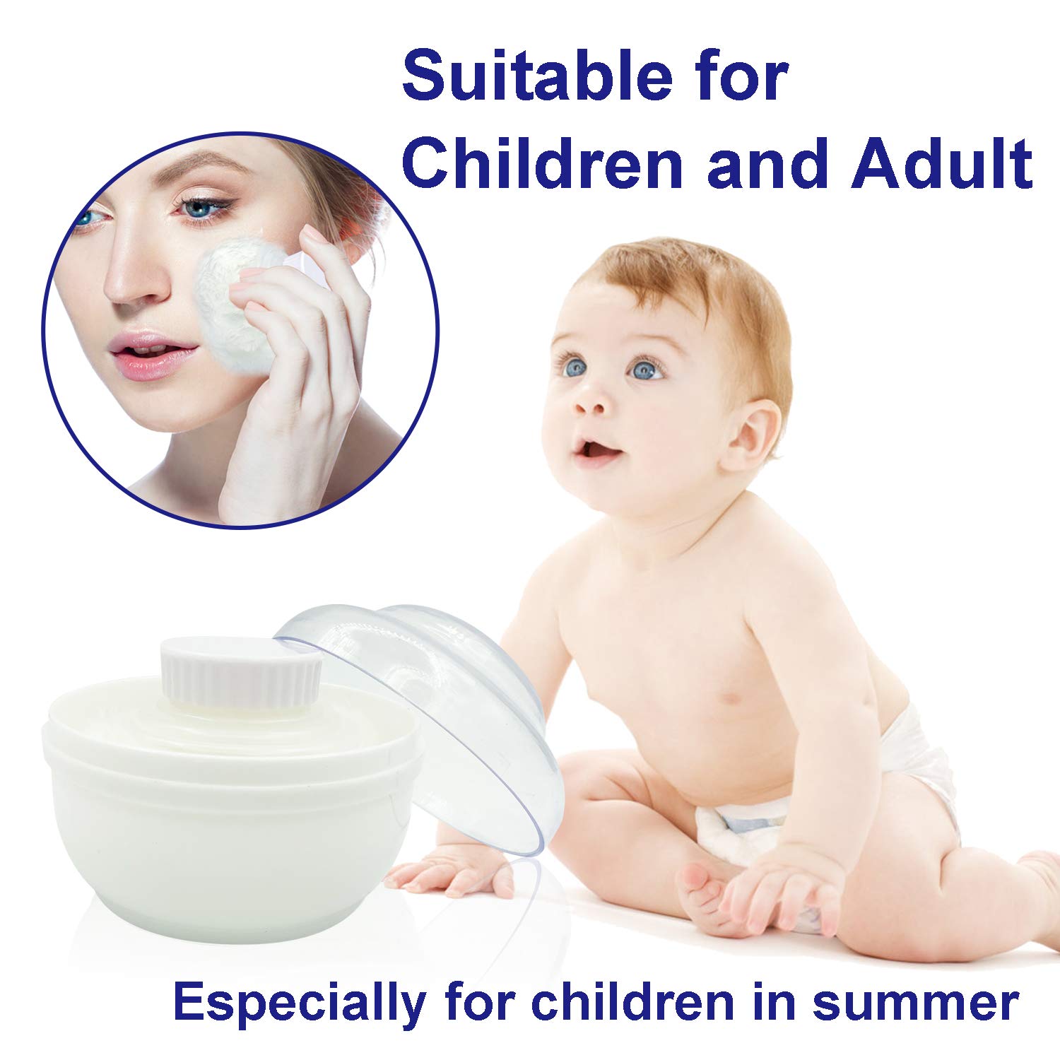- Suit for children and adult, especially for children in summer, hot and wet weather is easy to harm for your kid`s skin, you can use this puff to apply the talcum powder on your kid`s skin.