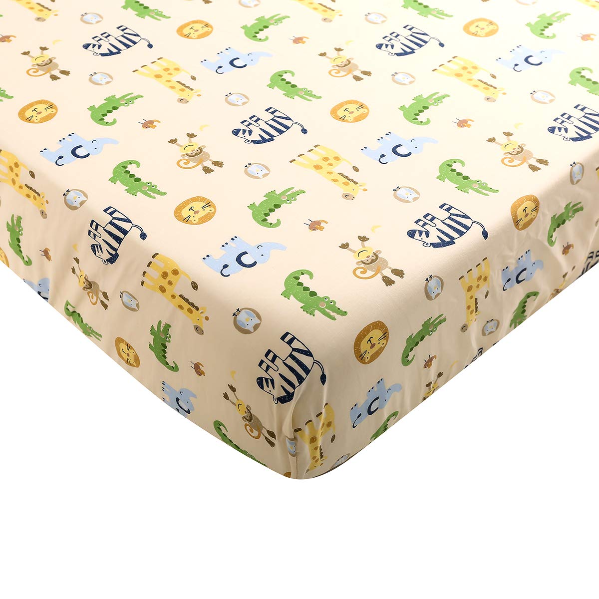 Brandream Jungle 3- Piece Nursery Crib Bedding Sets for Boys - Zebra Elephant Lion Monkey Giraffe Crocodile Birds - Playful Animal Zoo