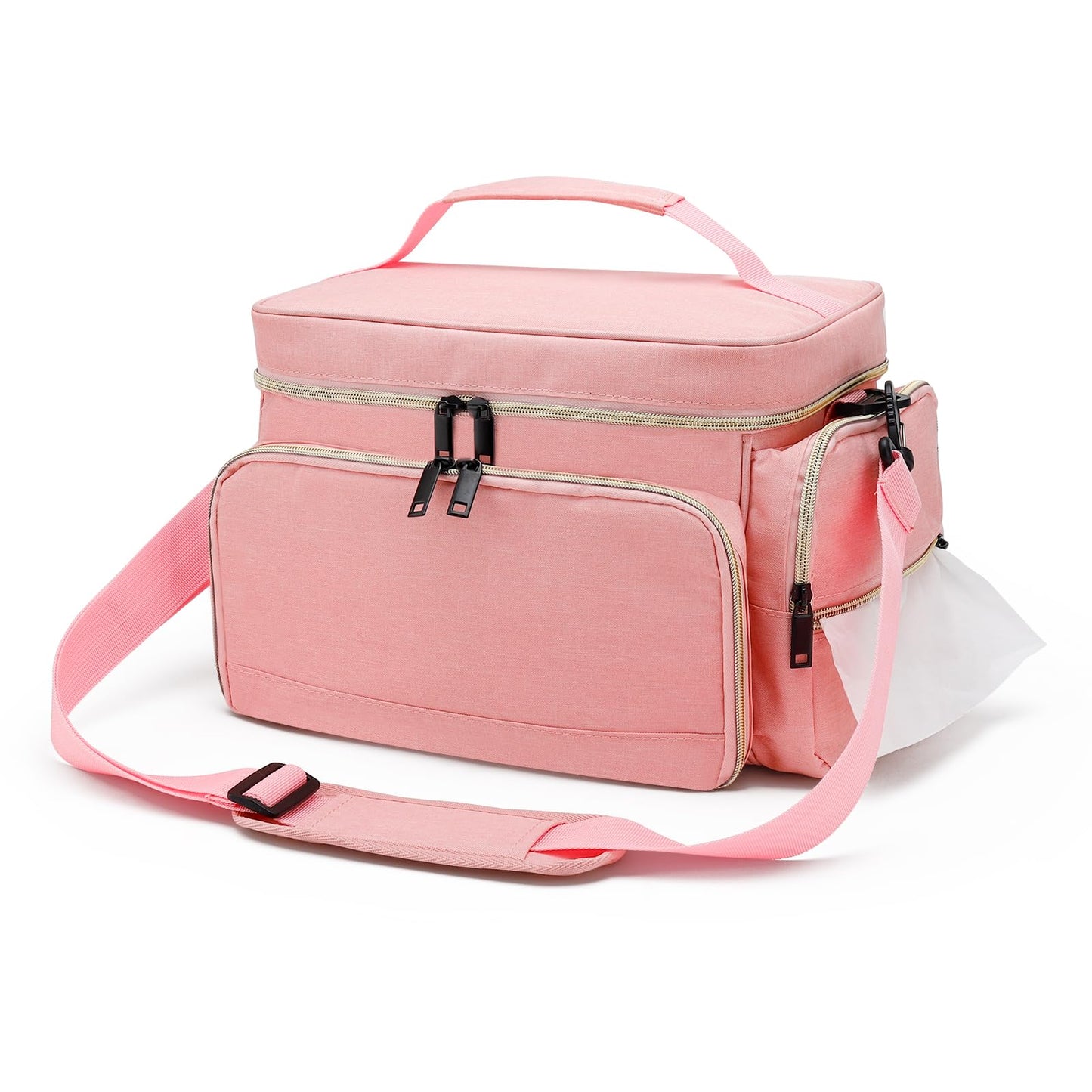 Deisgned with multiple compartments, allowing you to put almost all of your items in this breast pump bag when on the go. Like breast pump and its extra parts, tissue and other accessories.