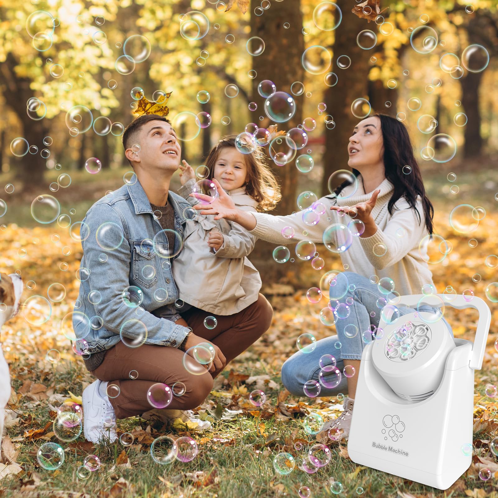 Enjoy the ultimate joy with portable bubble machine outdoor or indoor. The handle is easy to carry to outdoor, park, backyard, beach, party, wedding, stage, etc.