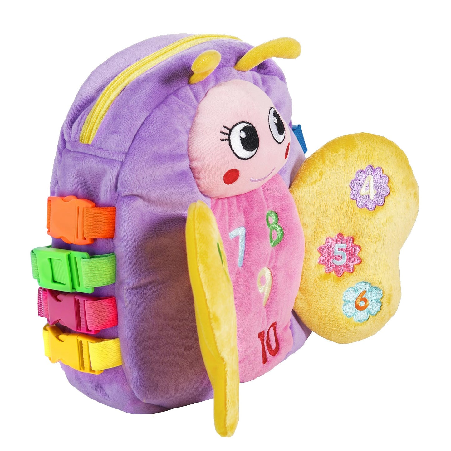 Buckle Toys Blossom Butterfly Toddler Backpack with Buckles and Toddler Learning Activities and Sensory Toys for Toddlers 1-3, Travel Essentials & Road Trip Activities for Fine Motor Skill Development