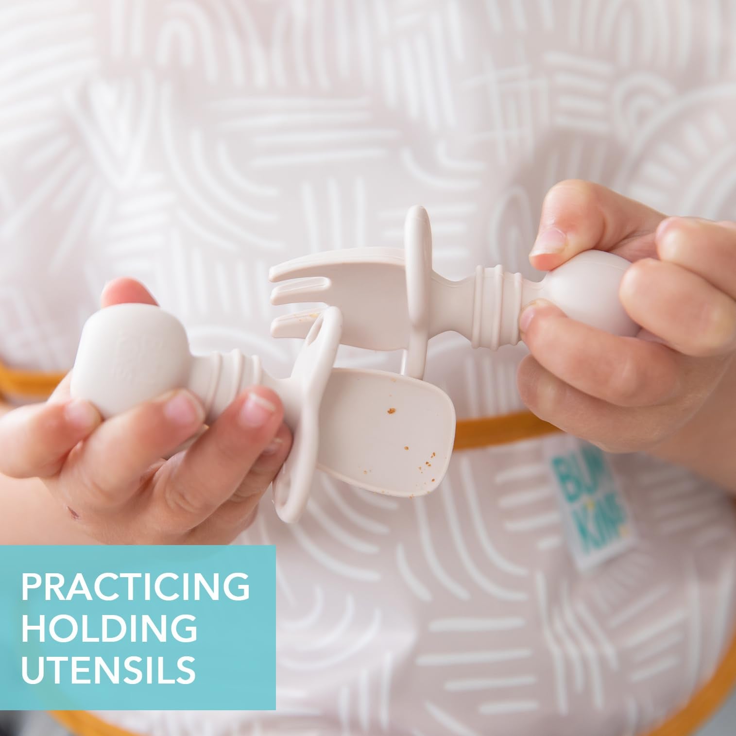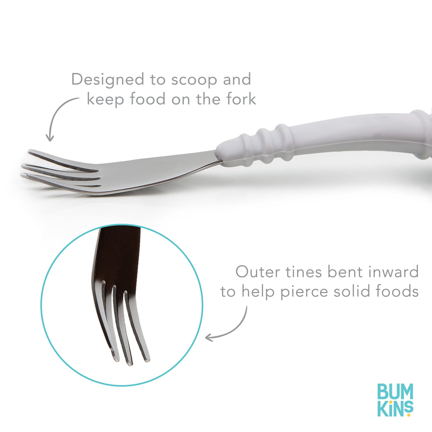 - BABY UTENSILS – Spoon set intended for Stage 1 of baby led weaning – introducing babies to the concept of holding utensils; practice dipping into purees at the early part of BLW; for ages 6 months up before they have a firm grasp on self-feeding; the fork and spoon are best for dipping and scooping, not yet spearing / piercing solid foods