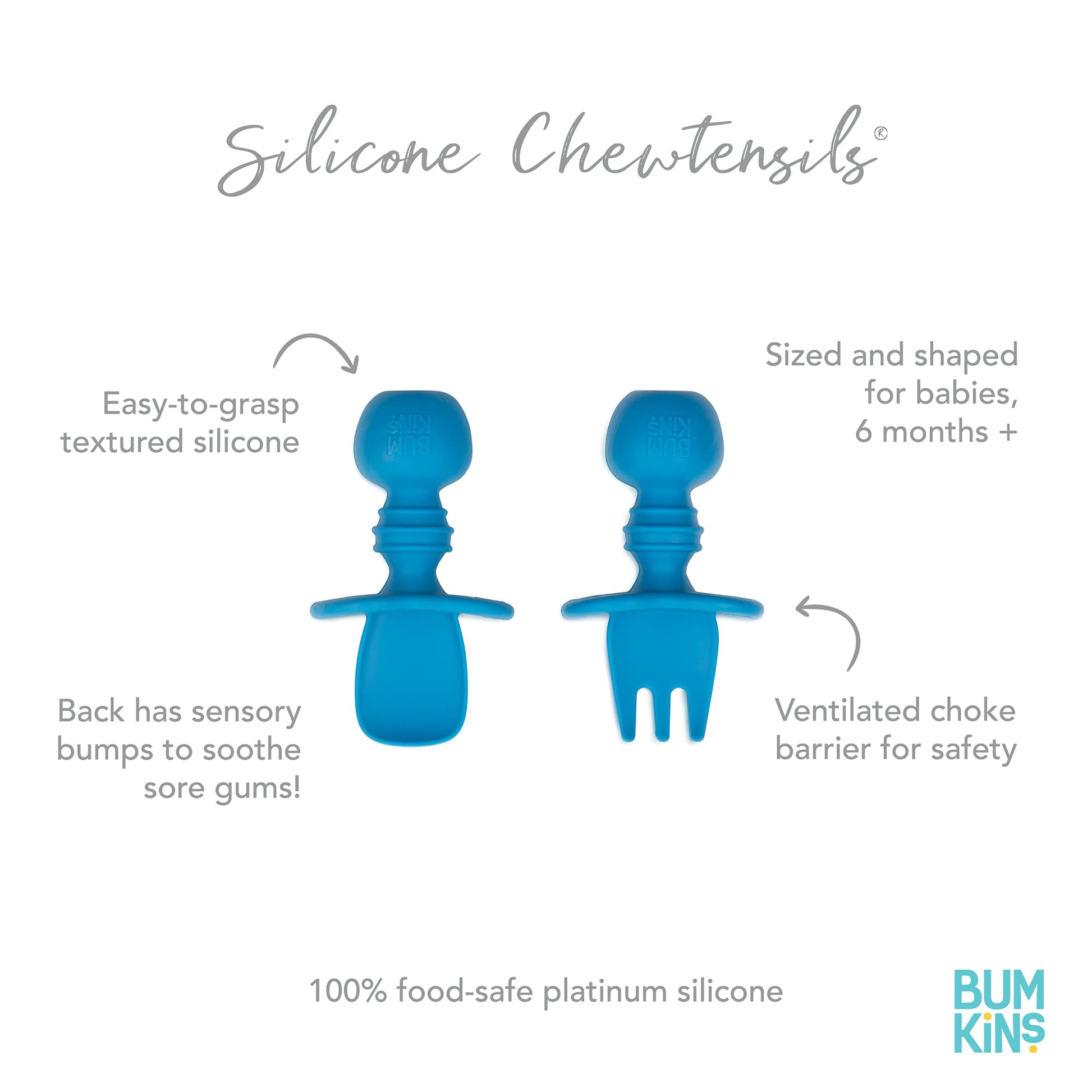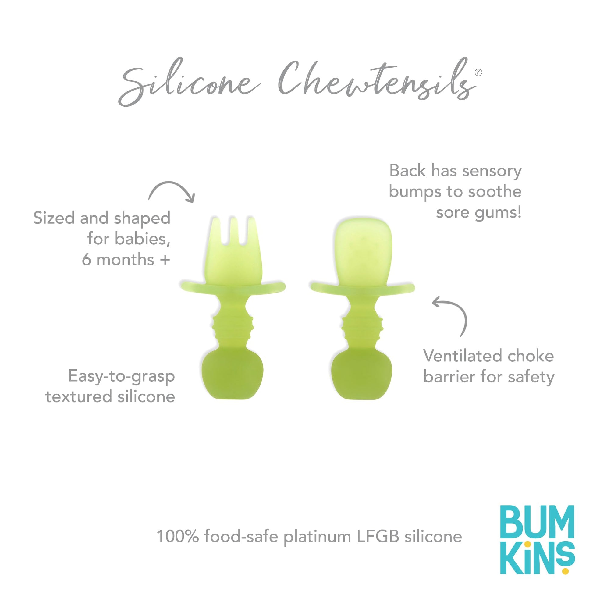 - GENTLE ON GUMS – Textured silicone is not only easy-to-grip, but soft and gentle on gums; Chewtensils can be chewed by teething babies; the back of the spoon head has sensory bumps to stimulate gums