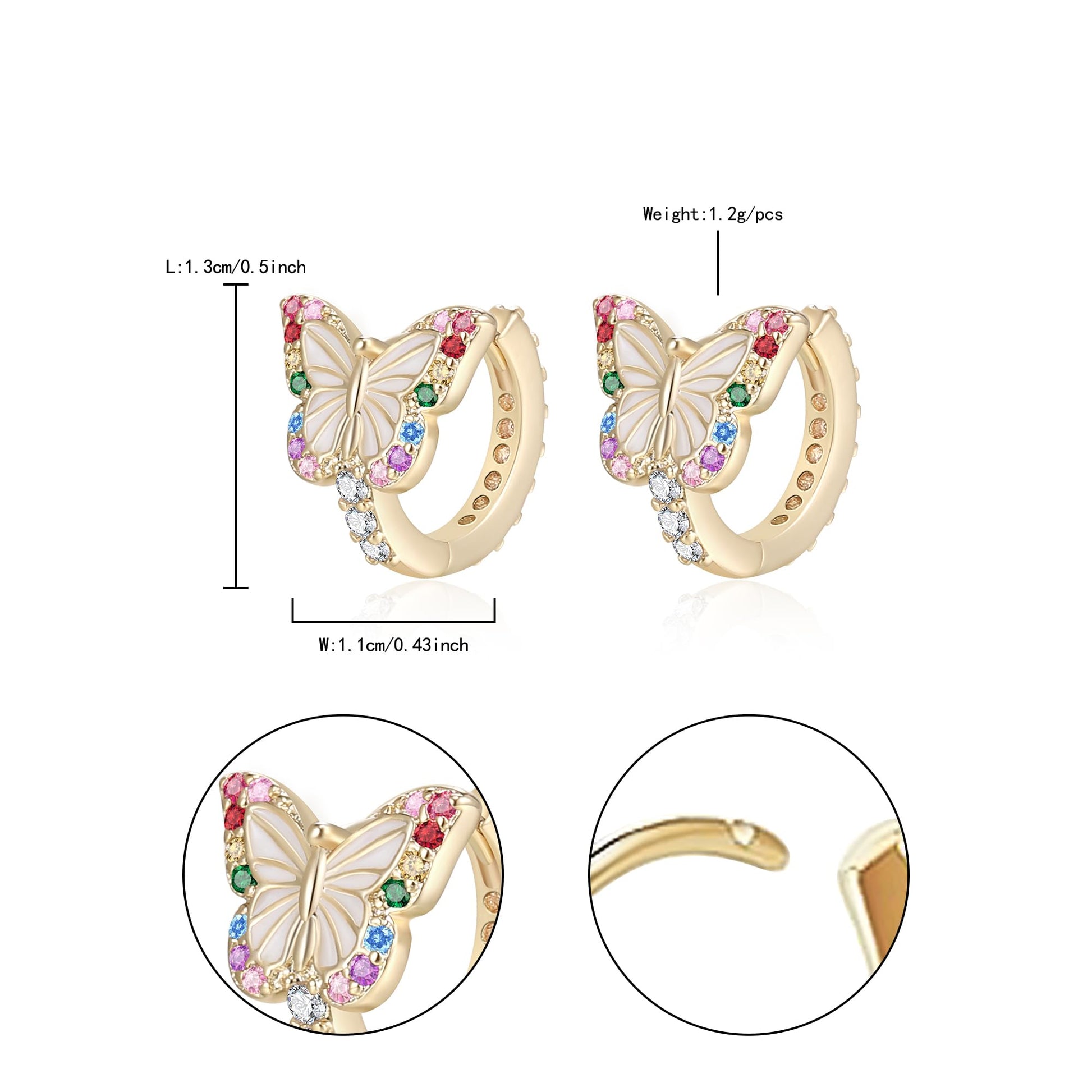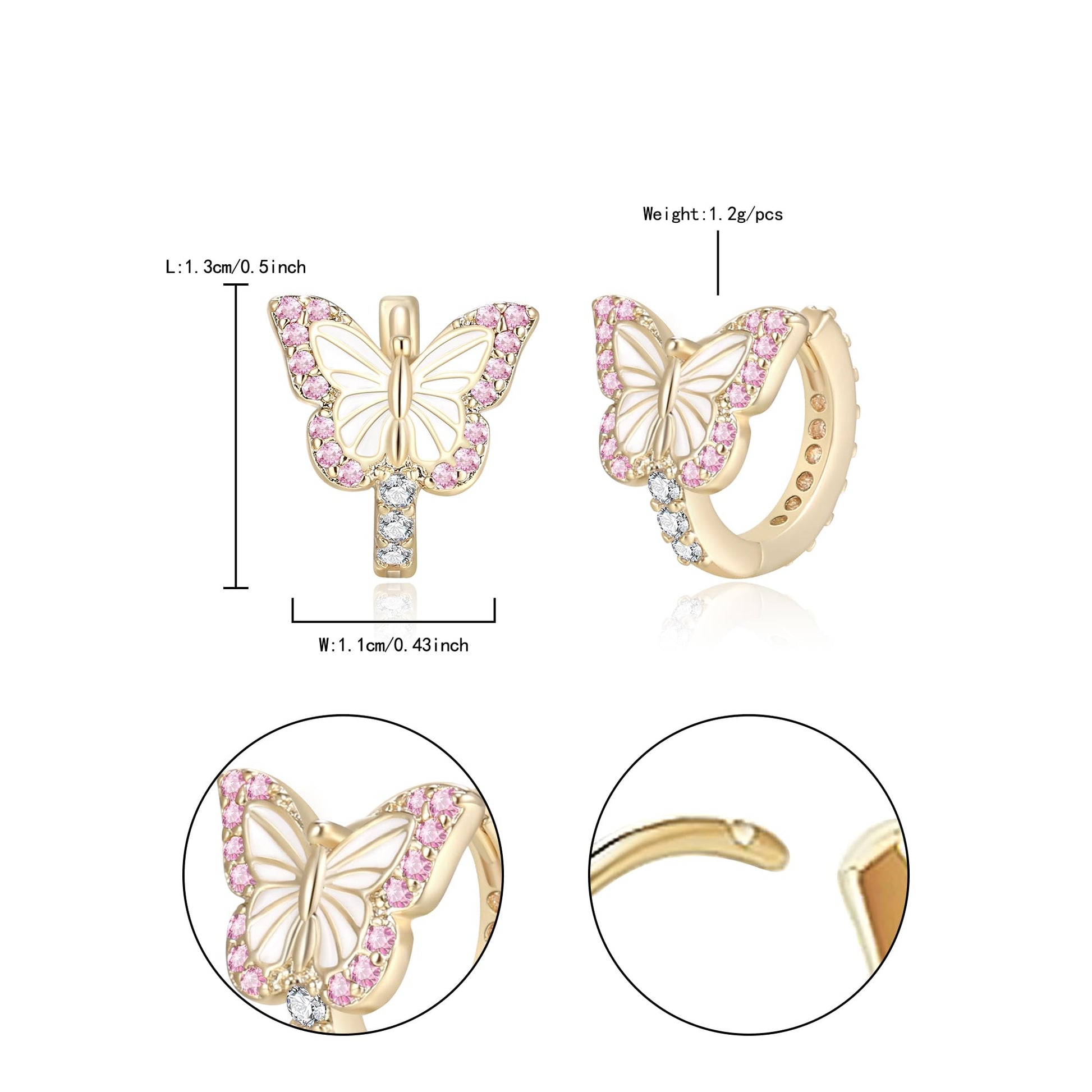 Butterfly Earrings for Women Hypoallergenic CZ 14K Gold Plated Butterflies Huggie Hoop Earring Small Tiny Hoops