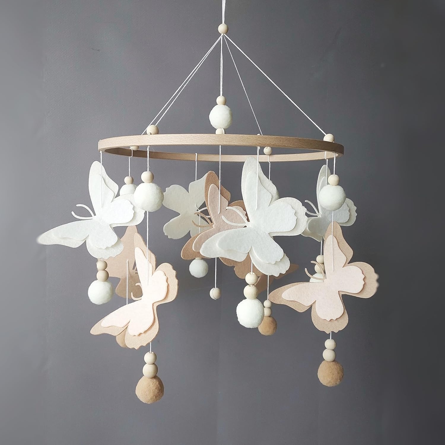 Enchant your little one's nursery with this delightful baby crib mobile featuring a whimsical design of butterflies. Crafted with care, this charming mobile will captivate your baby girl's attention and create a soothing, dreamy atmosphere in her cozy space. Perfect as a baby shower present or nursery decor, it adds a touch of magic to your little one's world.