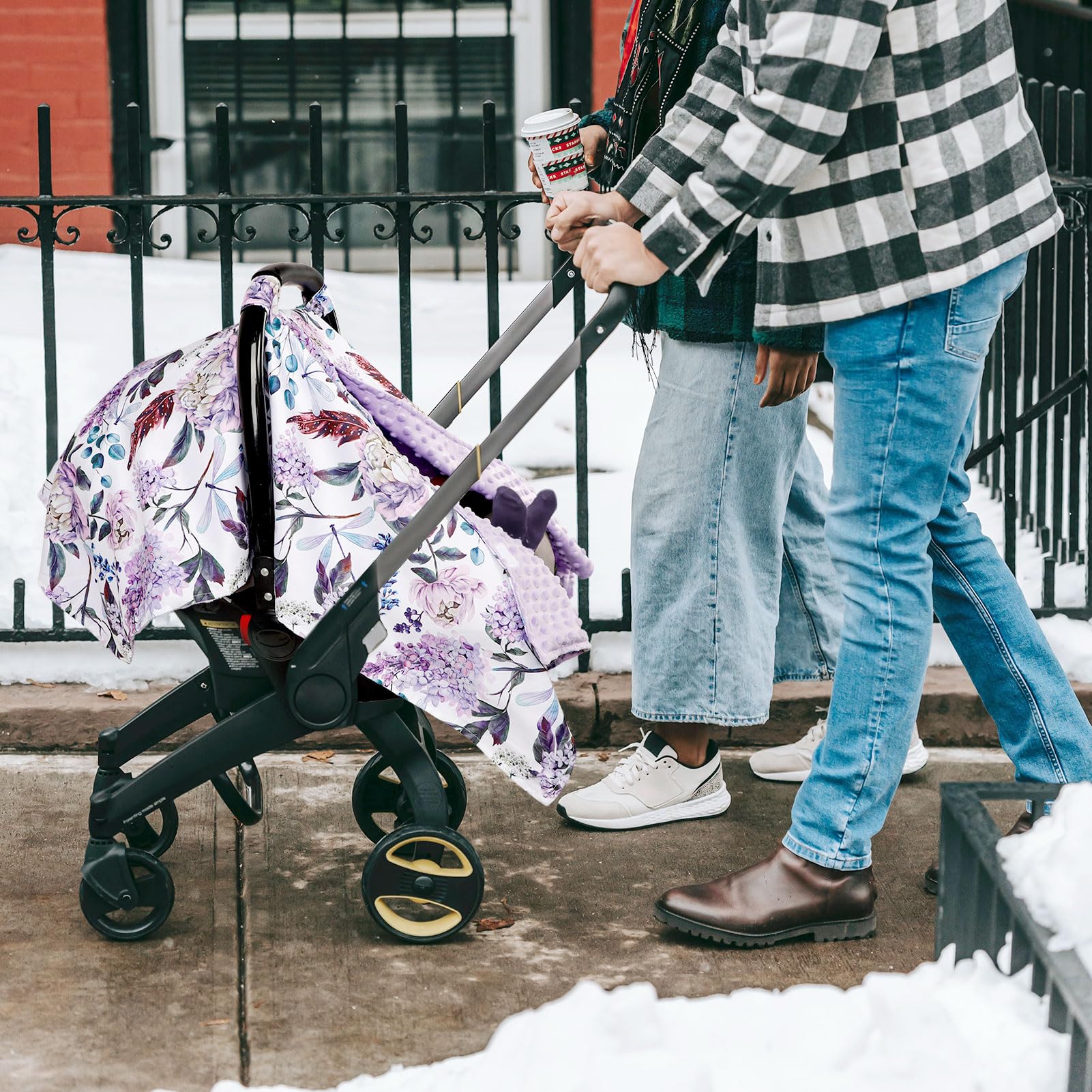 Car Seat Cover Baby, Infant Car Seat Canopy Covers for Newborn Girls Boys, Soft Breathable Mink Carseat Covers Stretchy Multi-Use Nursing Cover for Stroller Baby Car Seat, Purple Flroal