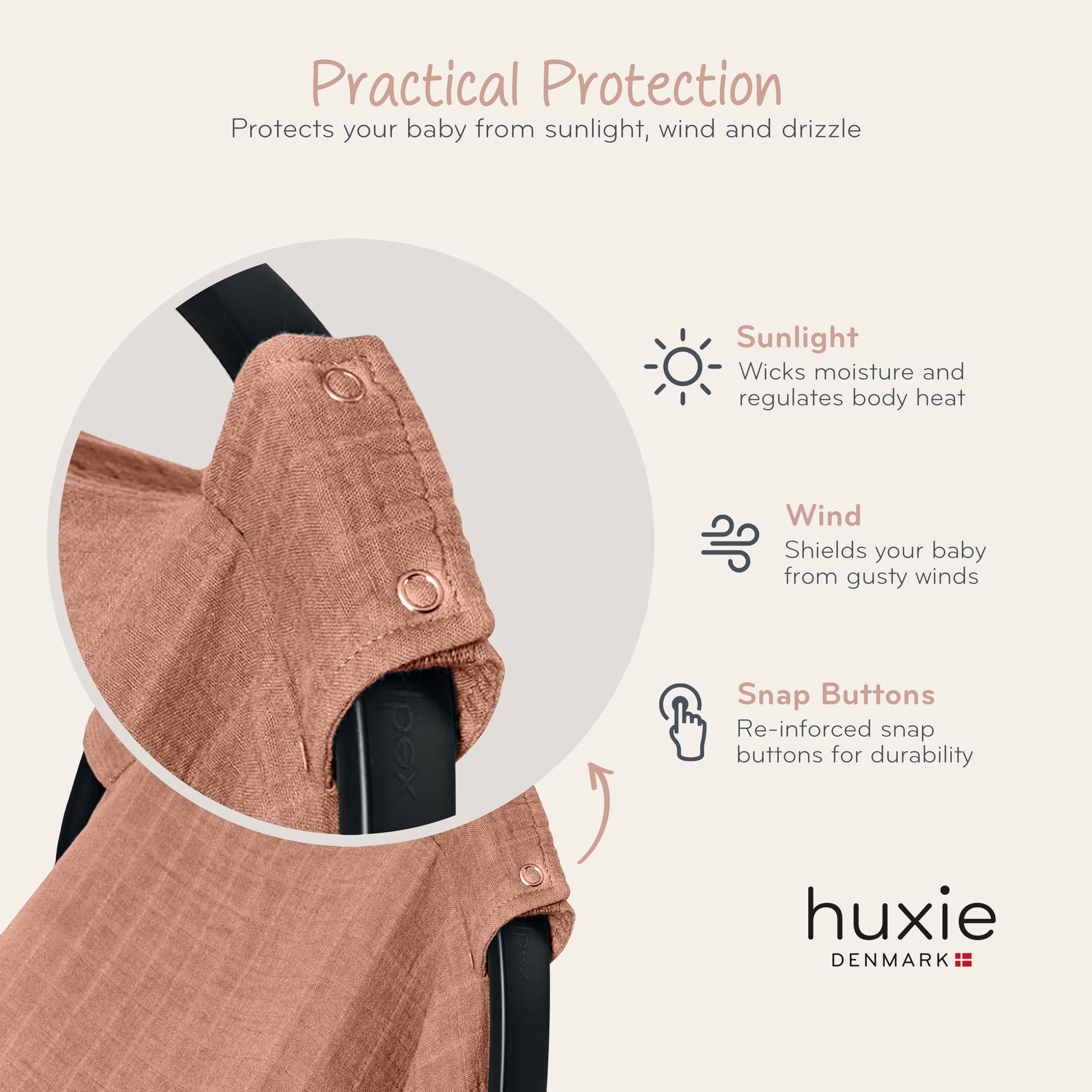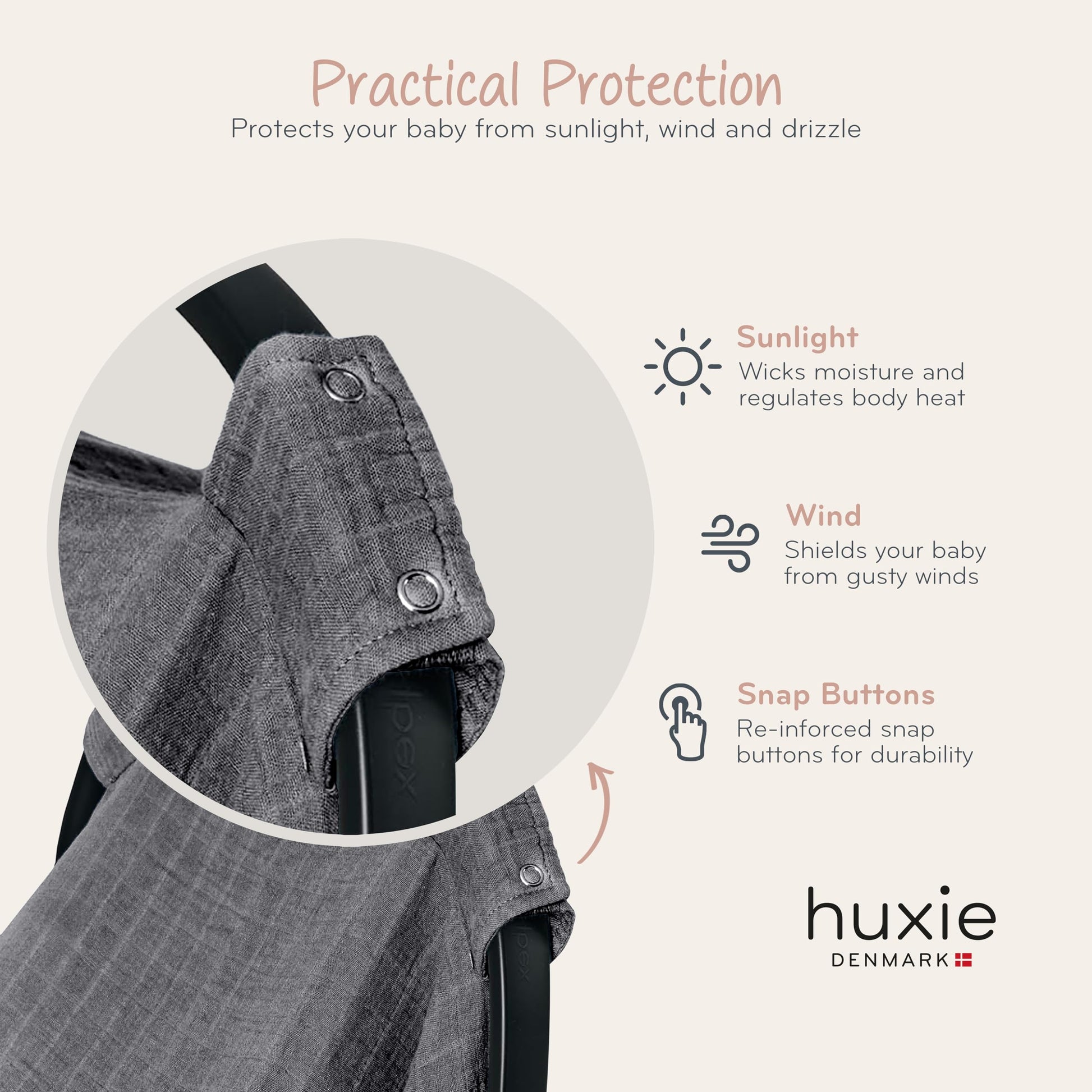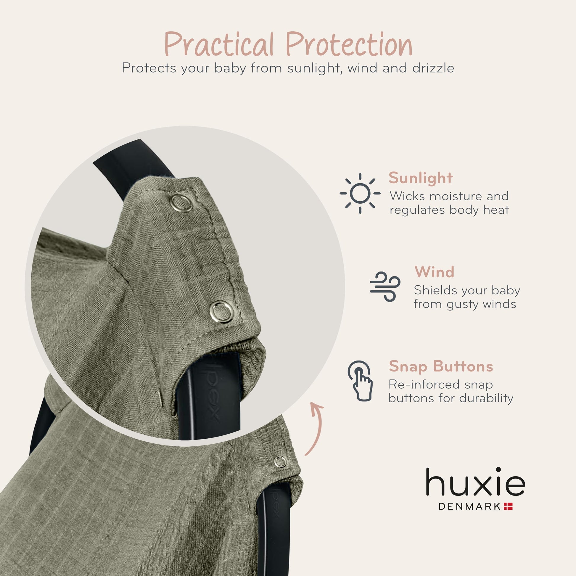 The Carseat Canopy from huxie combine responsible materials with a natural touch, creating simple, heartwarming designs in plain and neutral colors.
