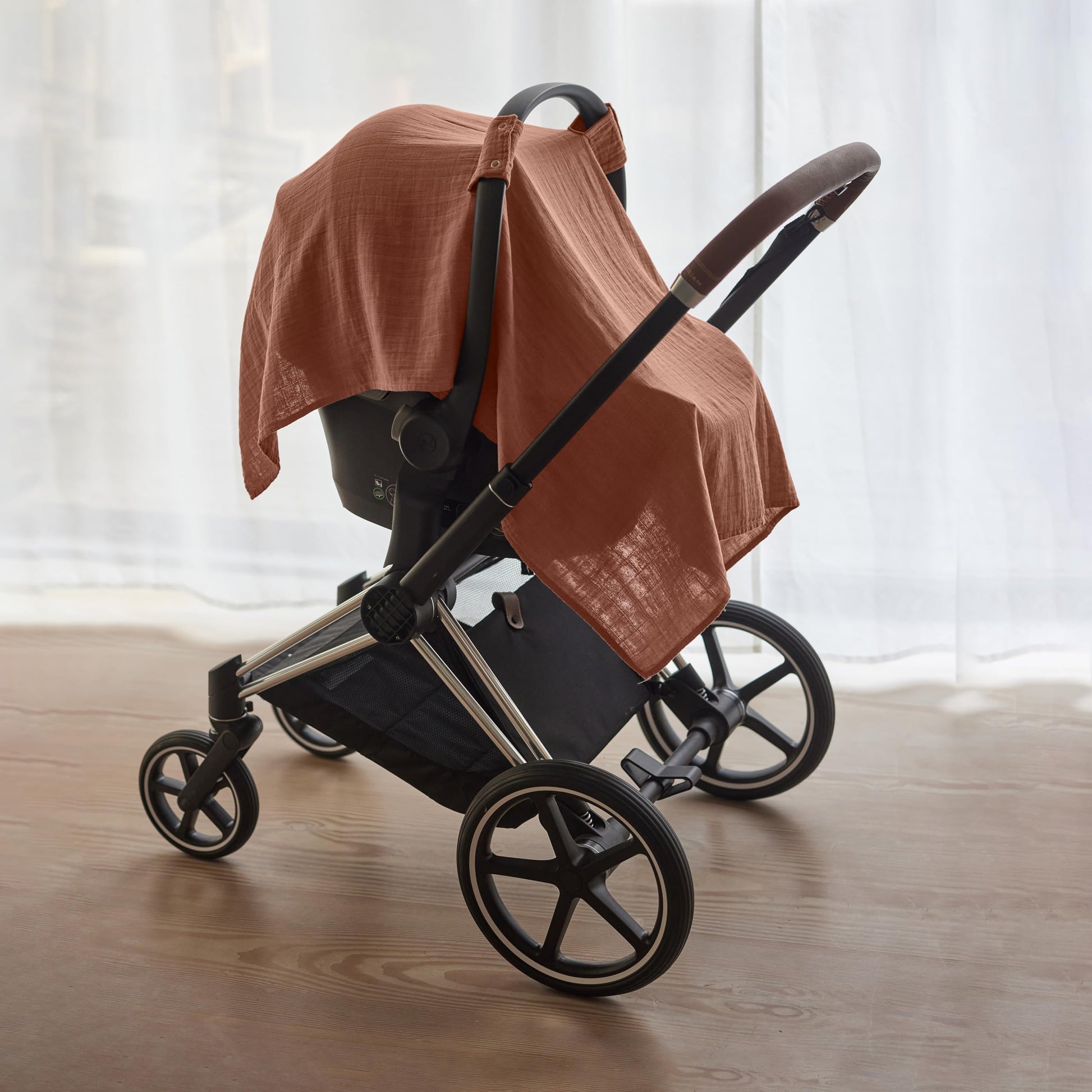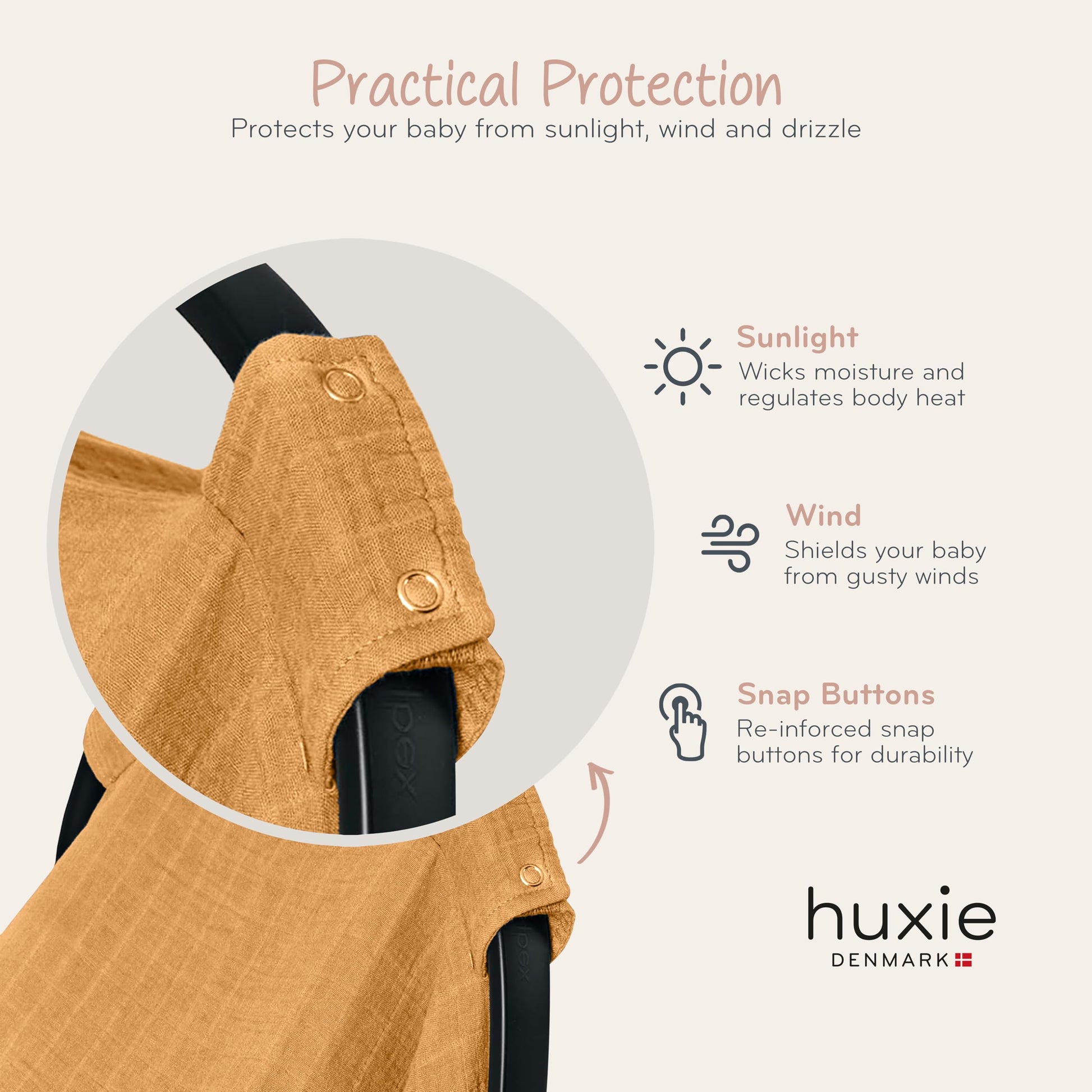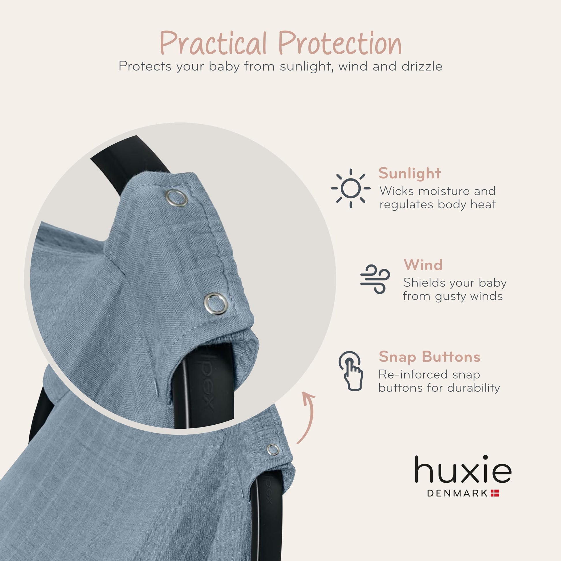 The Carseat Canopy from huxie combine responsible materials with a natural touch, creating simple, heartwarming designs in plain and neutral colors.