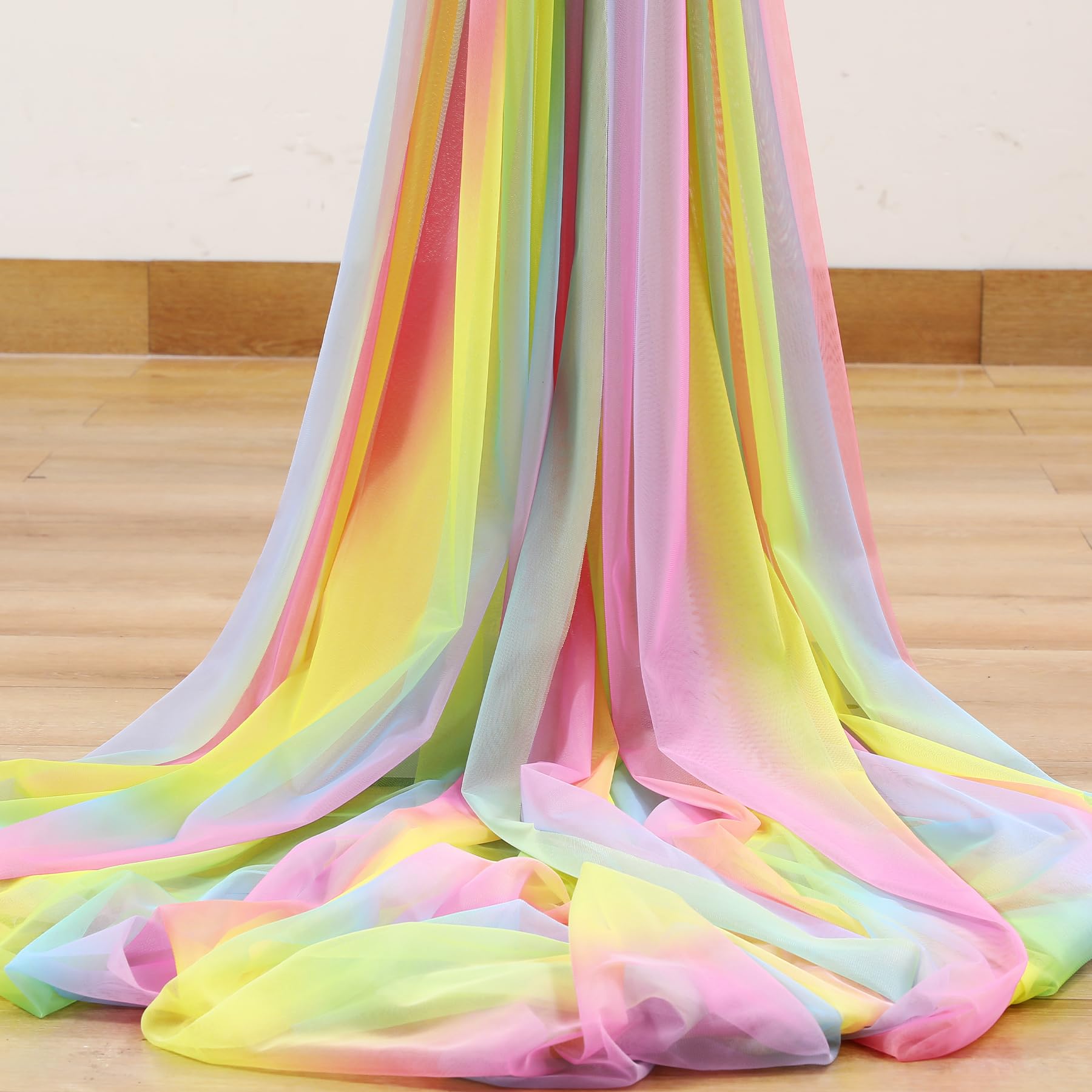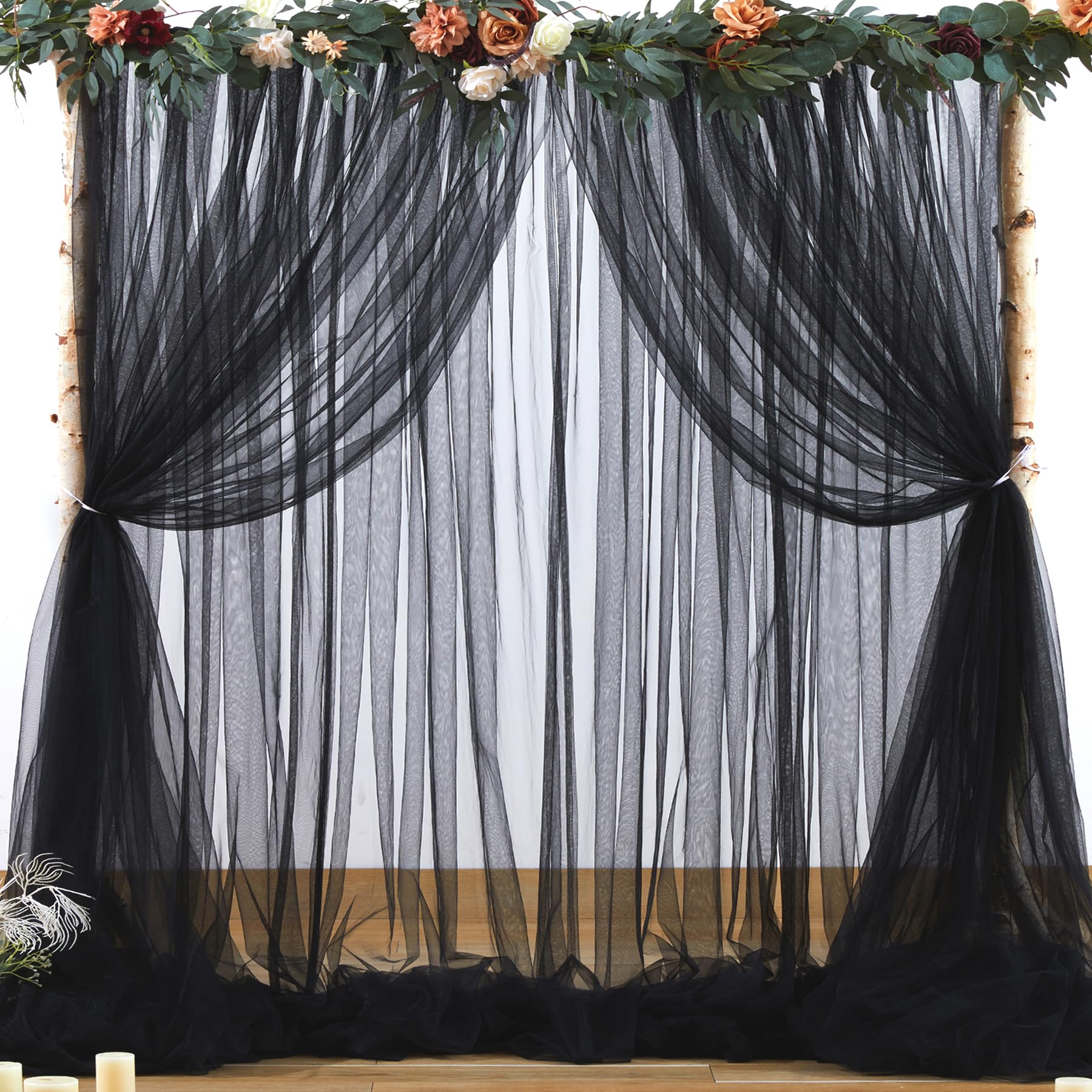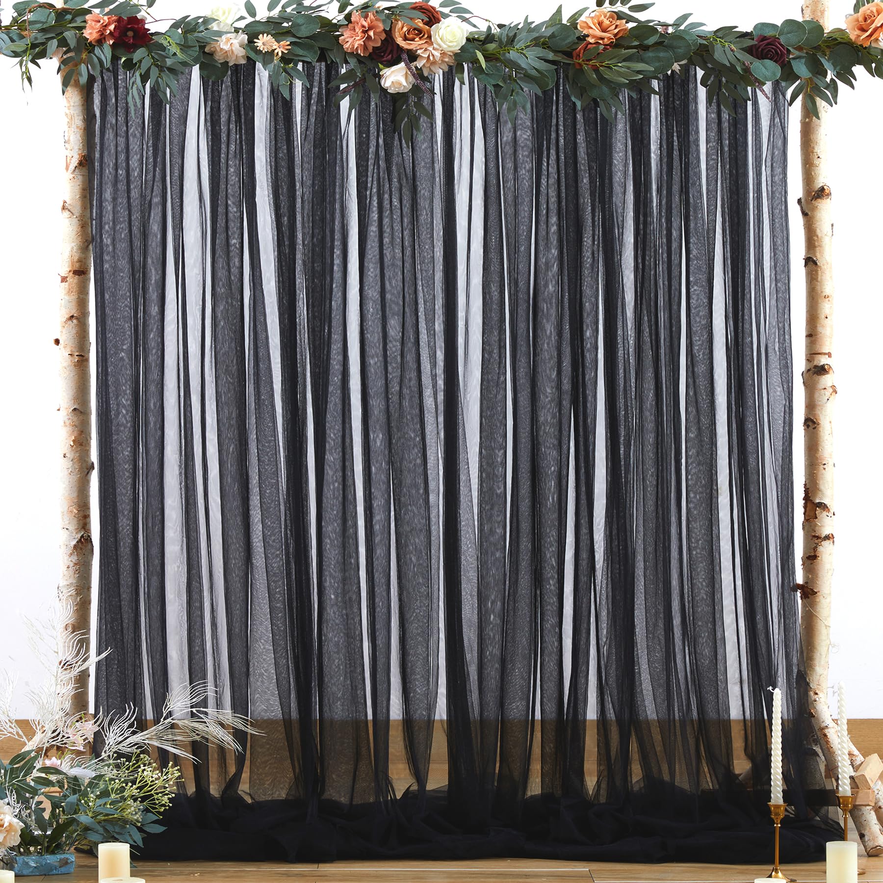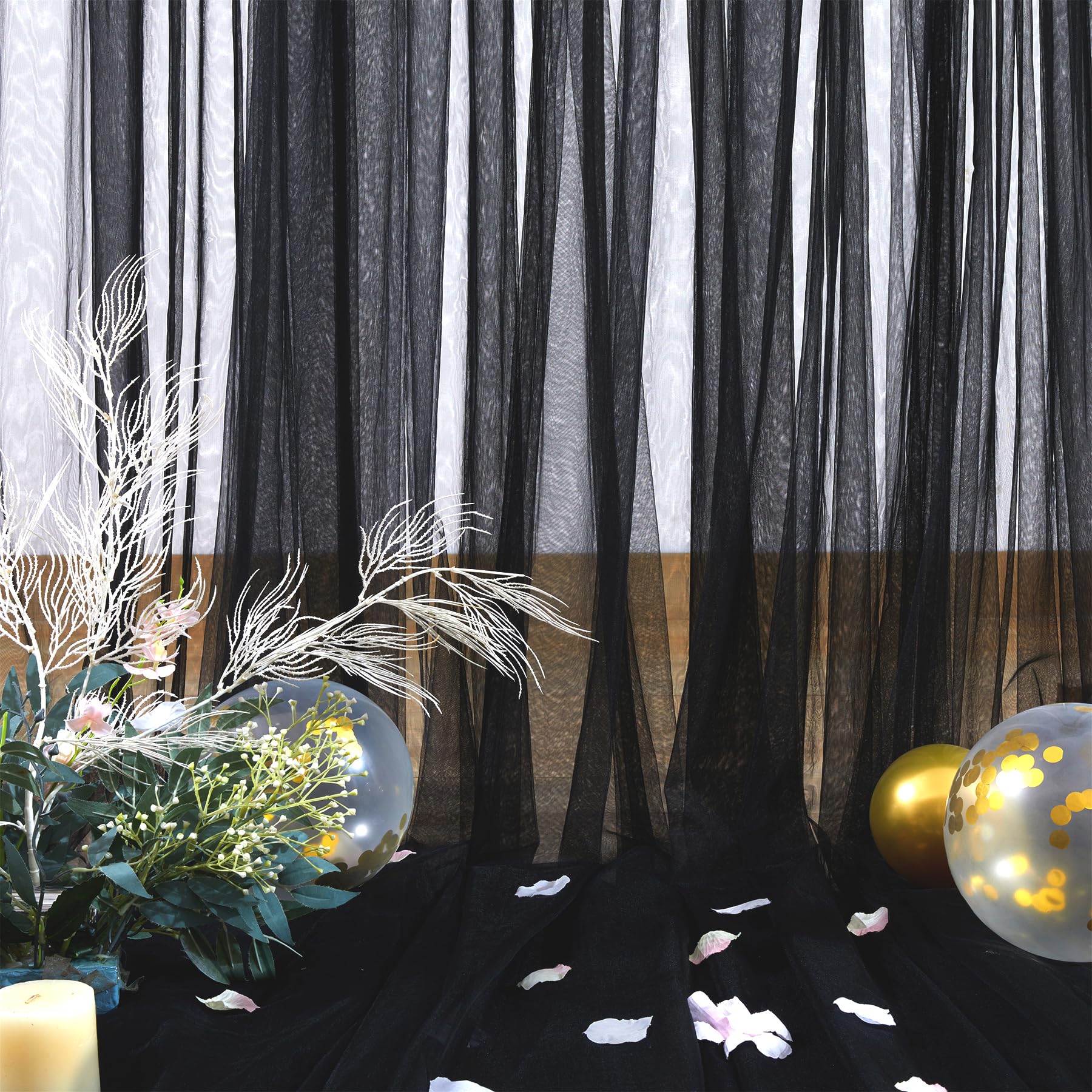 - Champagne sheer backdrop material : champagne tulle backdrop curtain 2 panels, each panel measures 5ft width ×8ft height. Total area of 10ft width by 8ft height. Each piece of backdrop curtain is made of two layers of smooth tulle. Collapsible, washable, natural drooping,durable. Can be reused. If you don't want to be particularly transparent, you can buy 2 packs and more then the effect will be better.