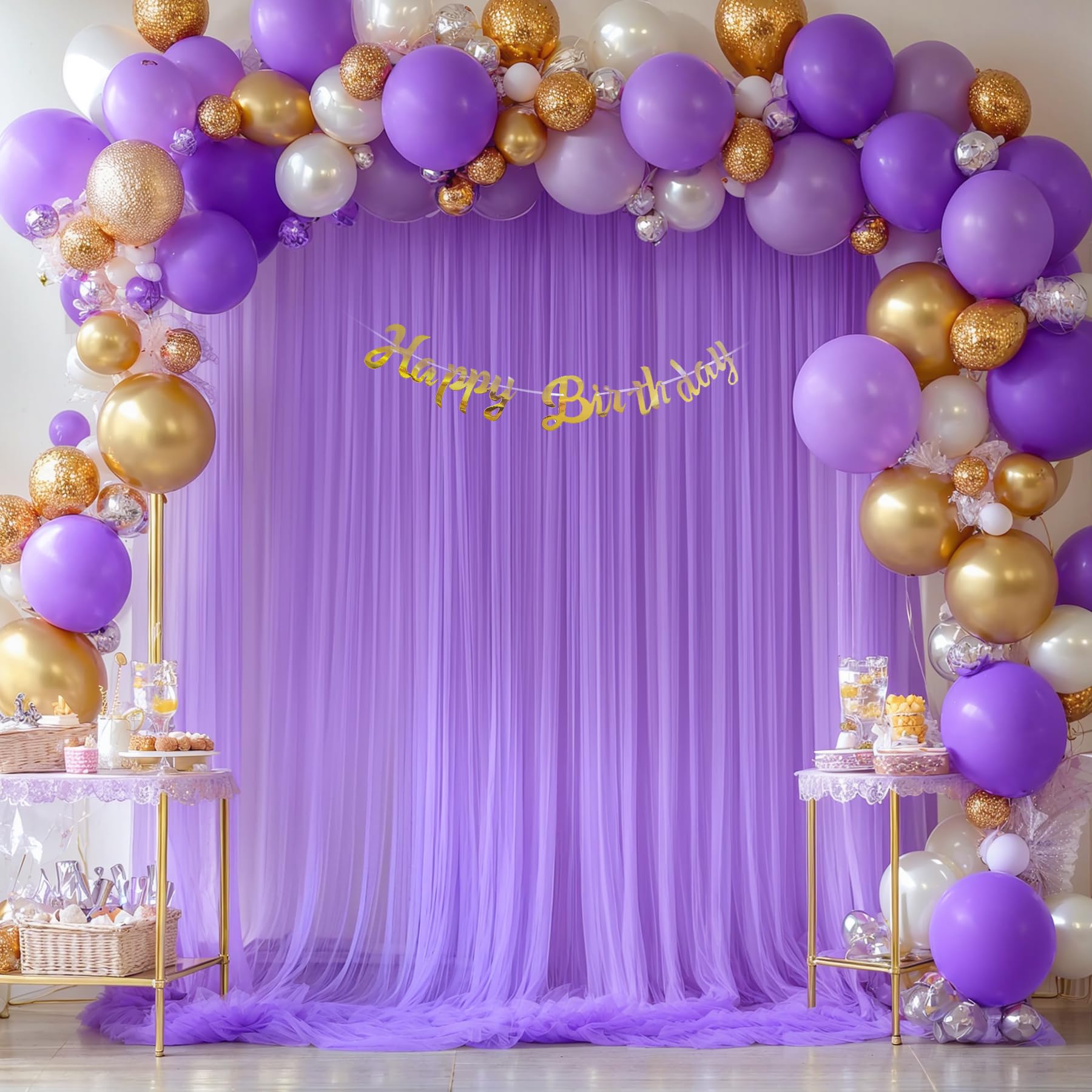 - Champagne background backdrop easy to mount : With rod pocket across the top for easy hanging on a pipe or stand.Avoid sharp items or the tulle curtain may be damaged.