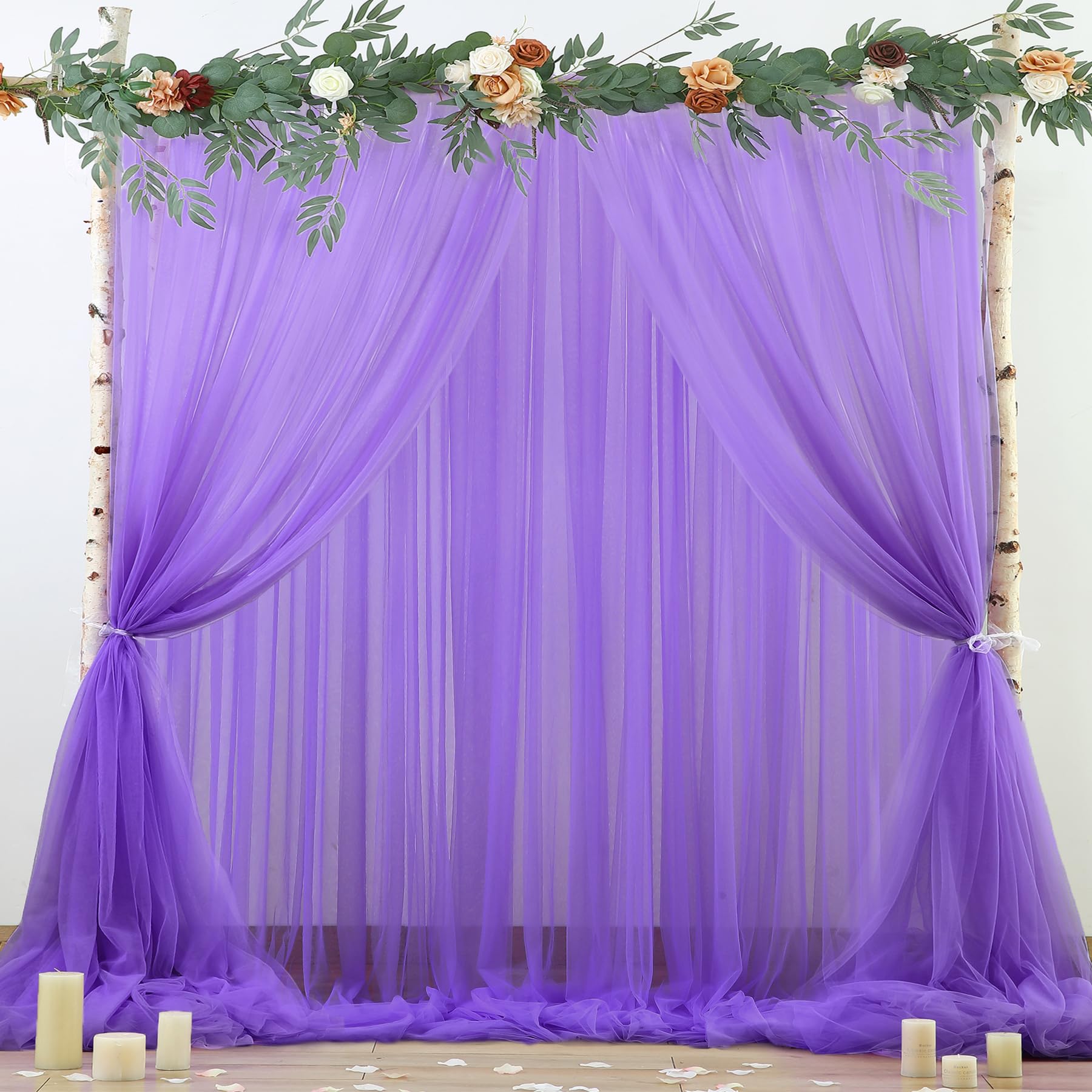 - Feature of champagne backdrop curtain : Unlike other products, champagne sheer curtains is made of two layers of tulle. Royal blue curtain drapes outer layer stretch yarns can be separated from the middle and tied up with bouquets or bows to make your party more romantic.You may also add LED starry string lights to create a romantic and warm atmosphere.