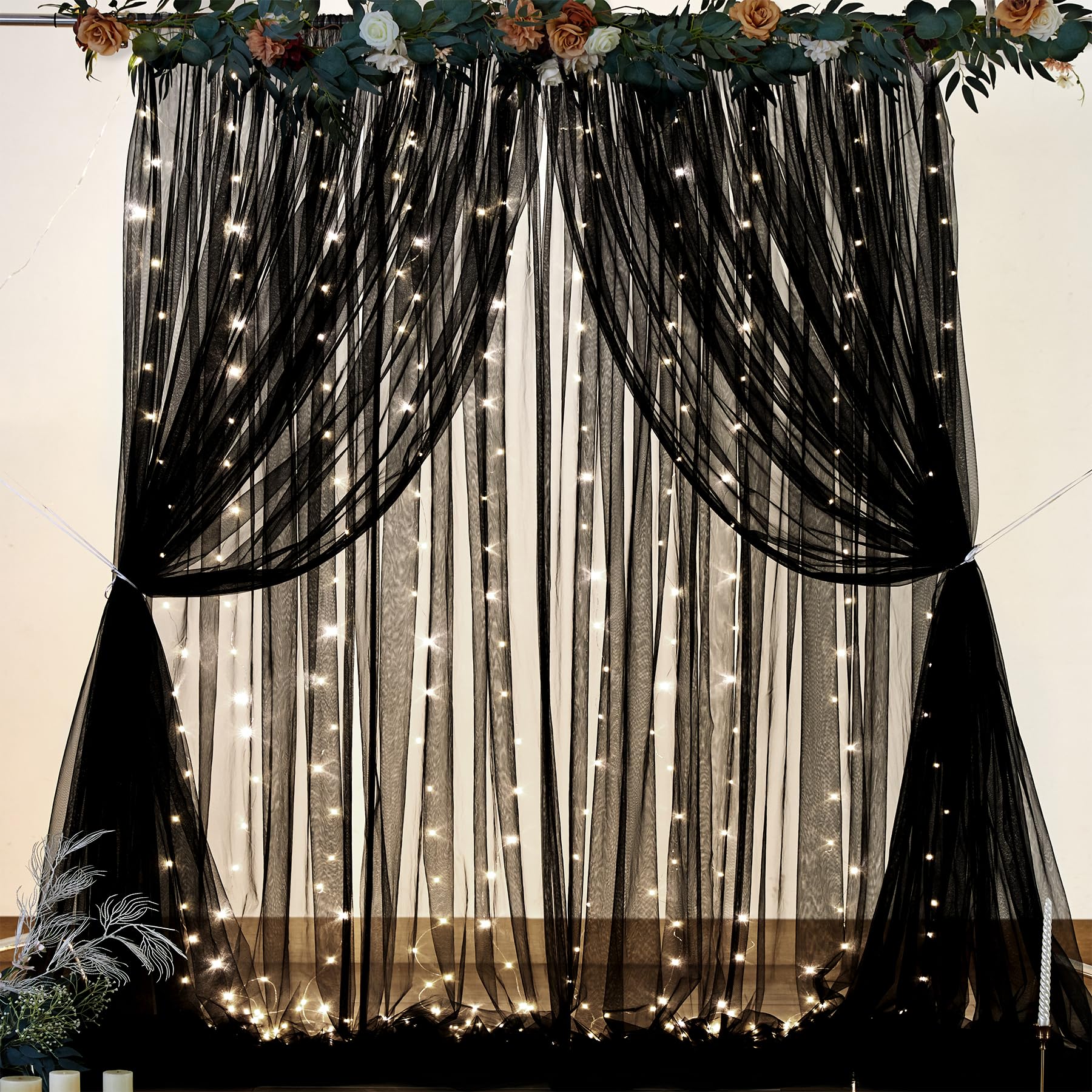 Sheer Tulle Backdrop Curtains with Lights String for Parties Baby Shower Wedding