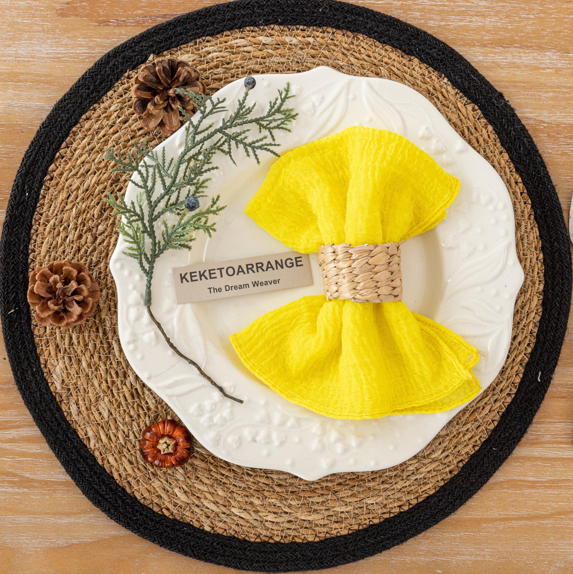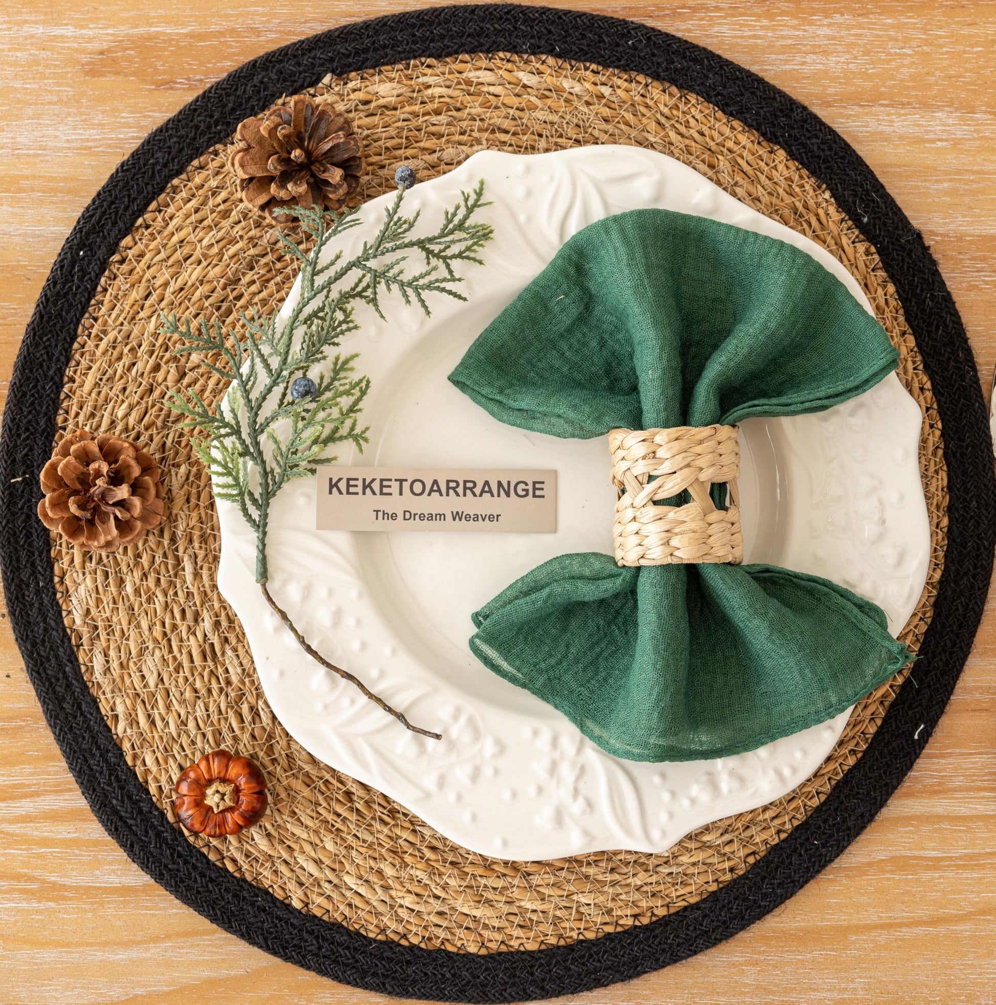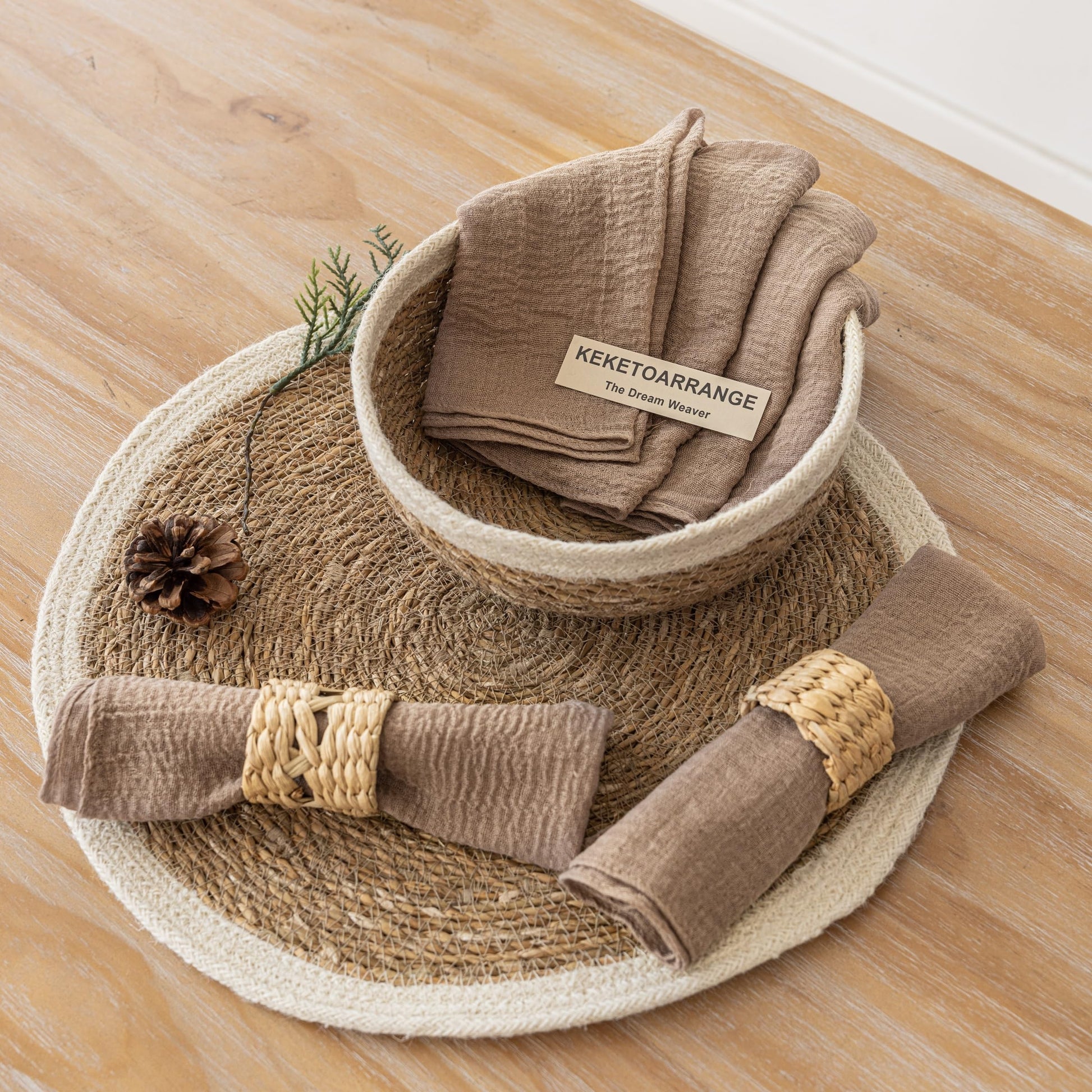 - 【Package Includes】6 Cloth napkins( 17 x 17 inches) and 6 sisal ropes all neatly packed in a transparent plastic bag.