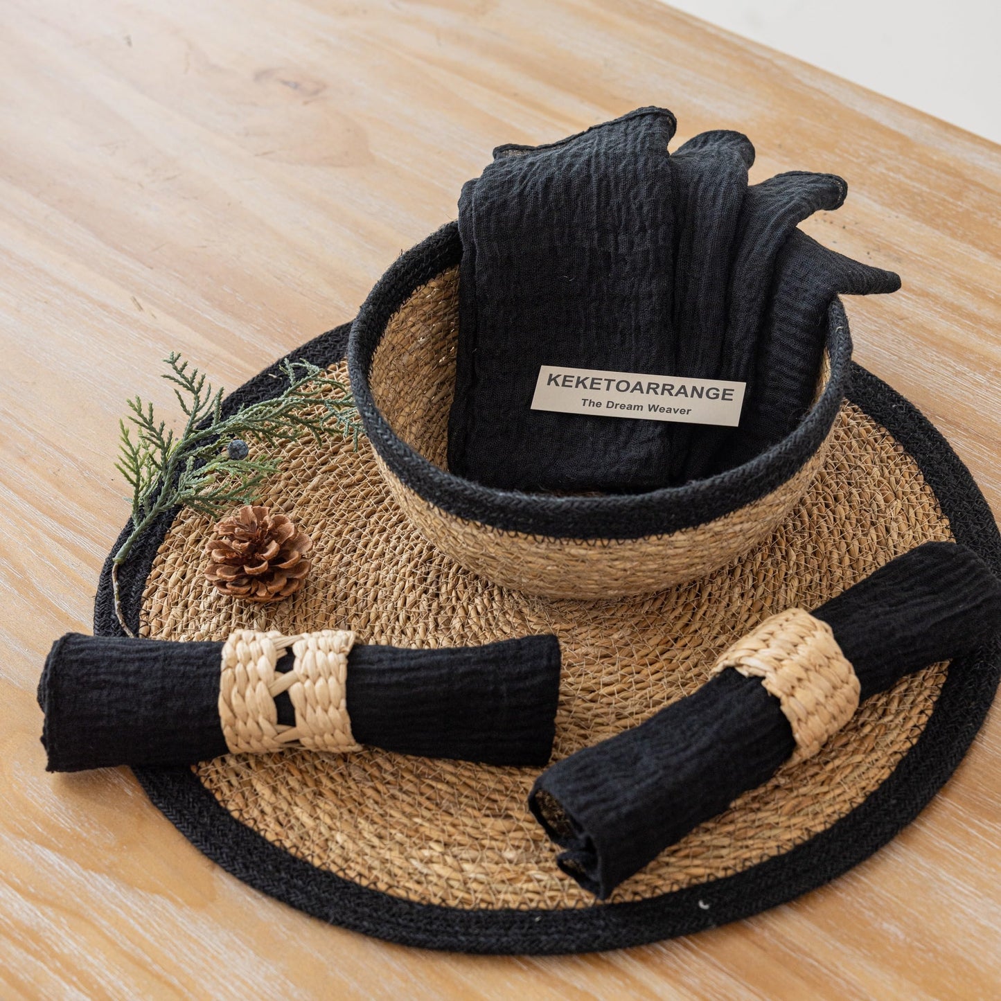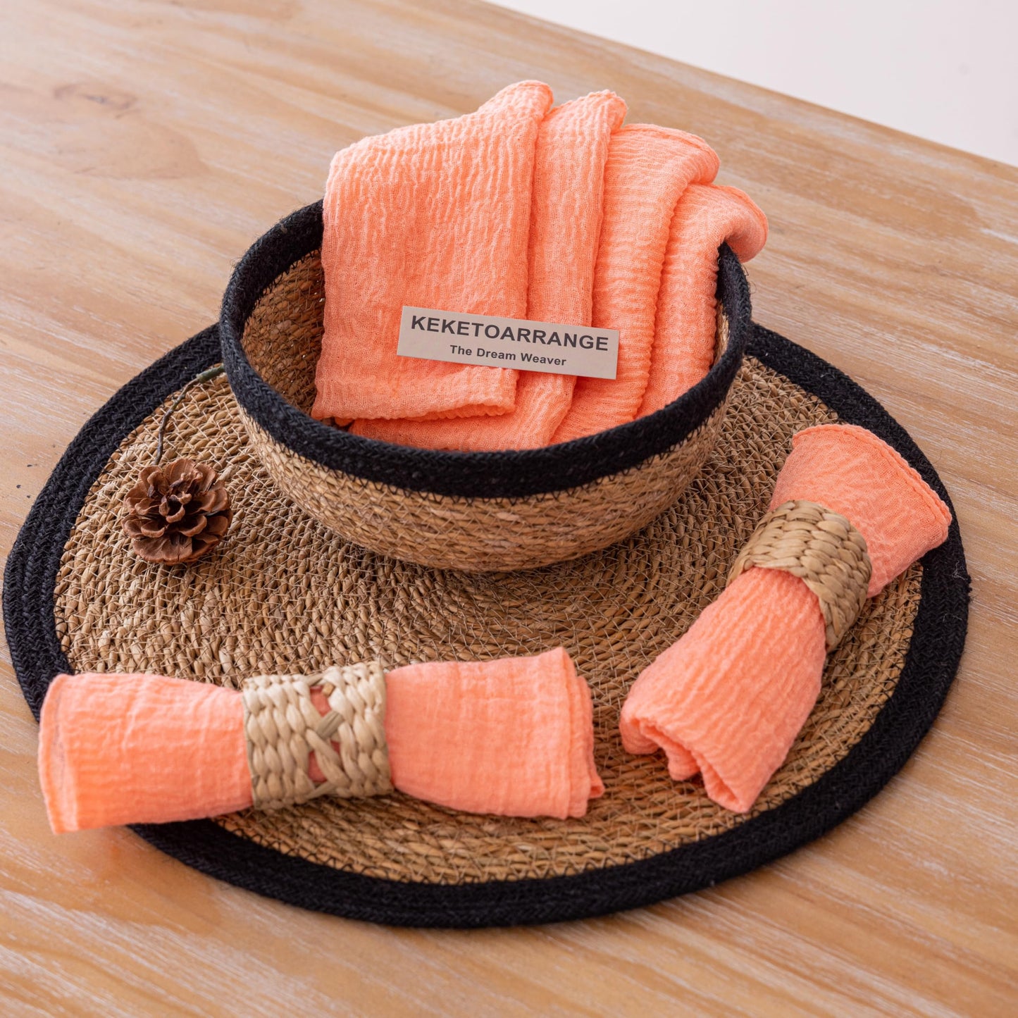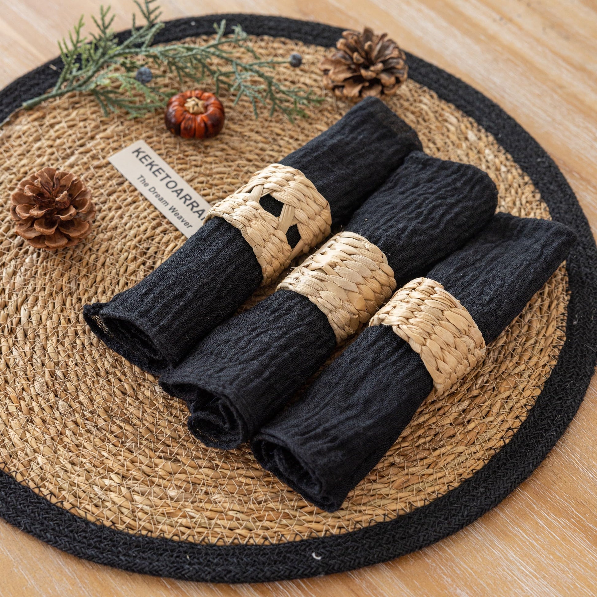 - 【Package Includes】6 Cloth napkins( 17 x 17 inches) and 6 sisal ropes all neatly packed in a transparent plastic bag.