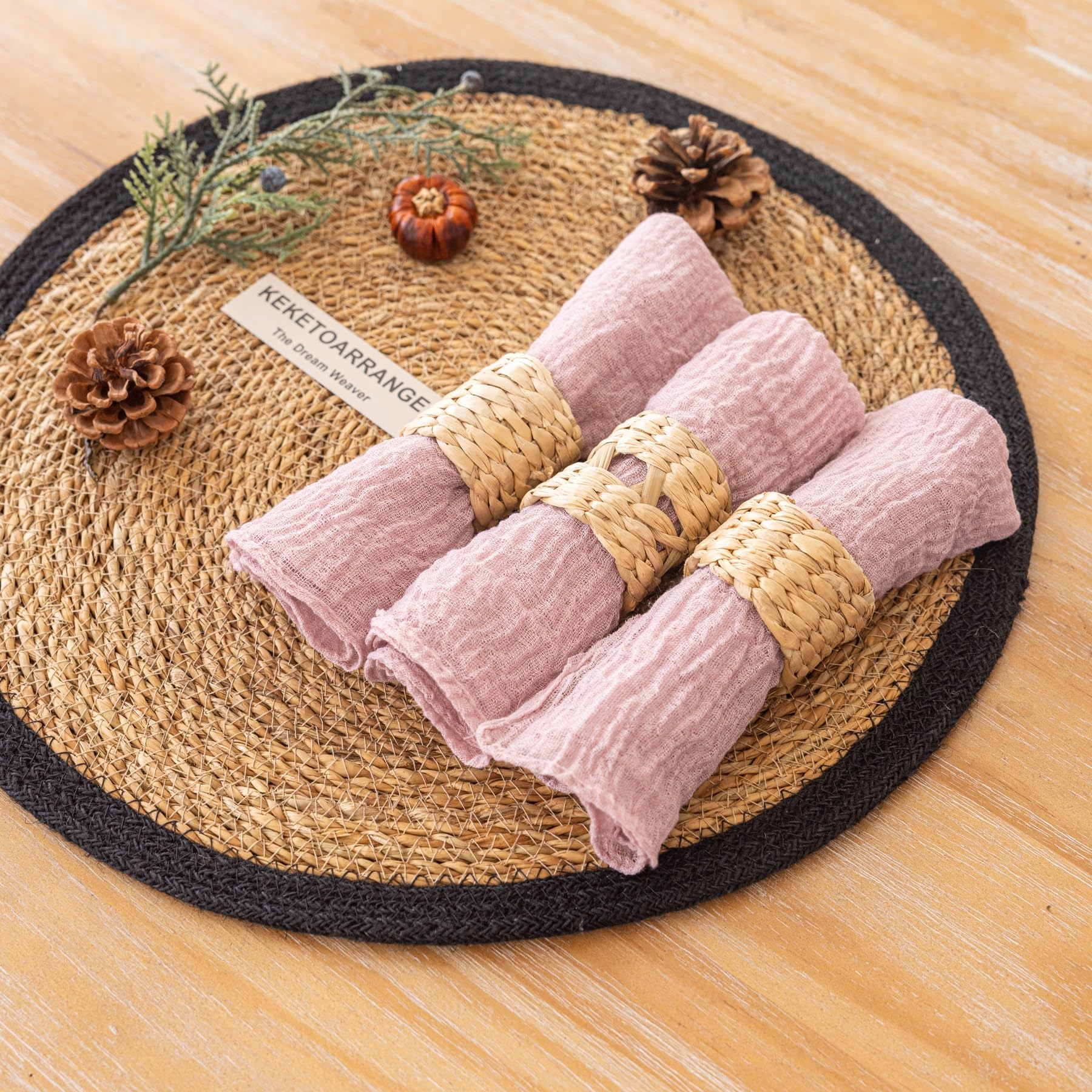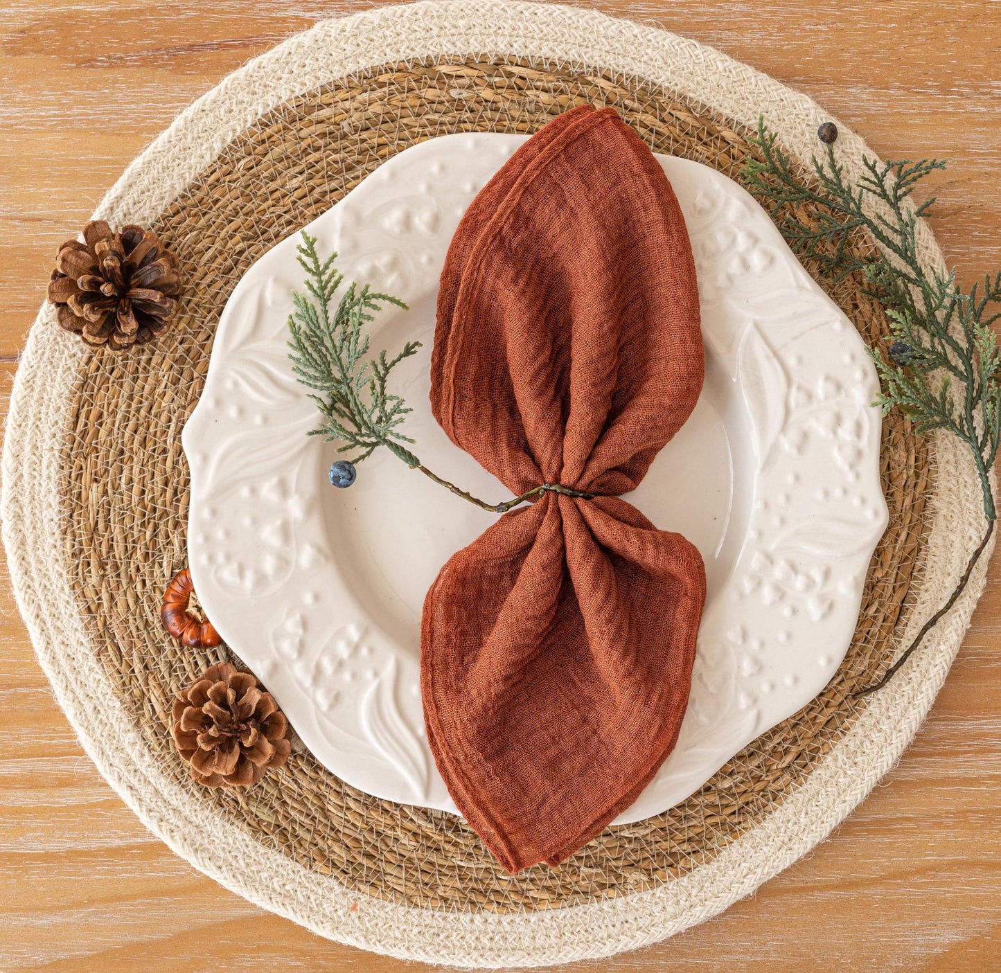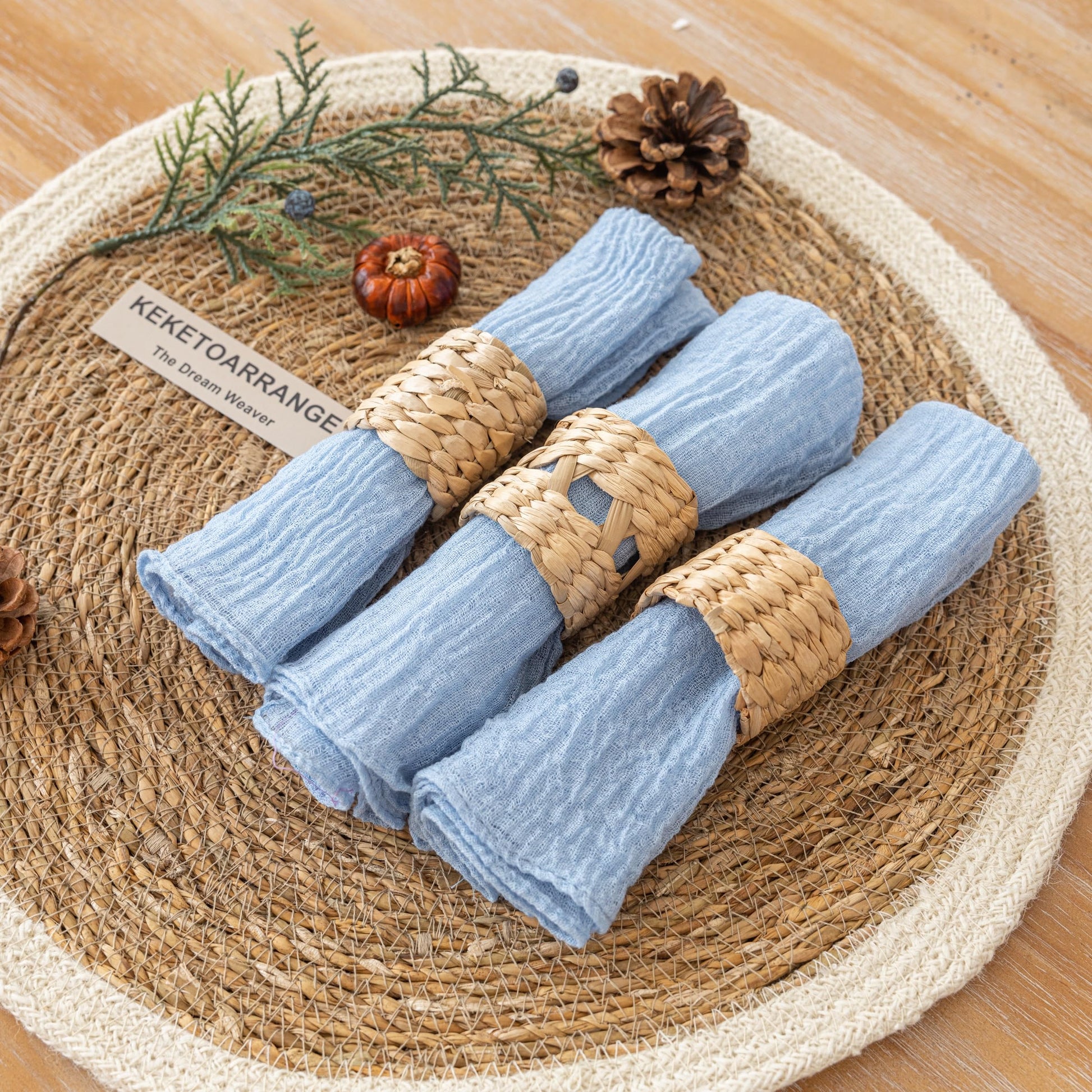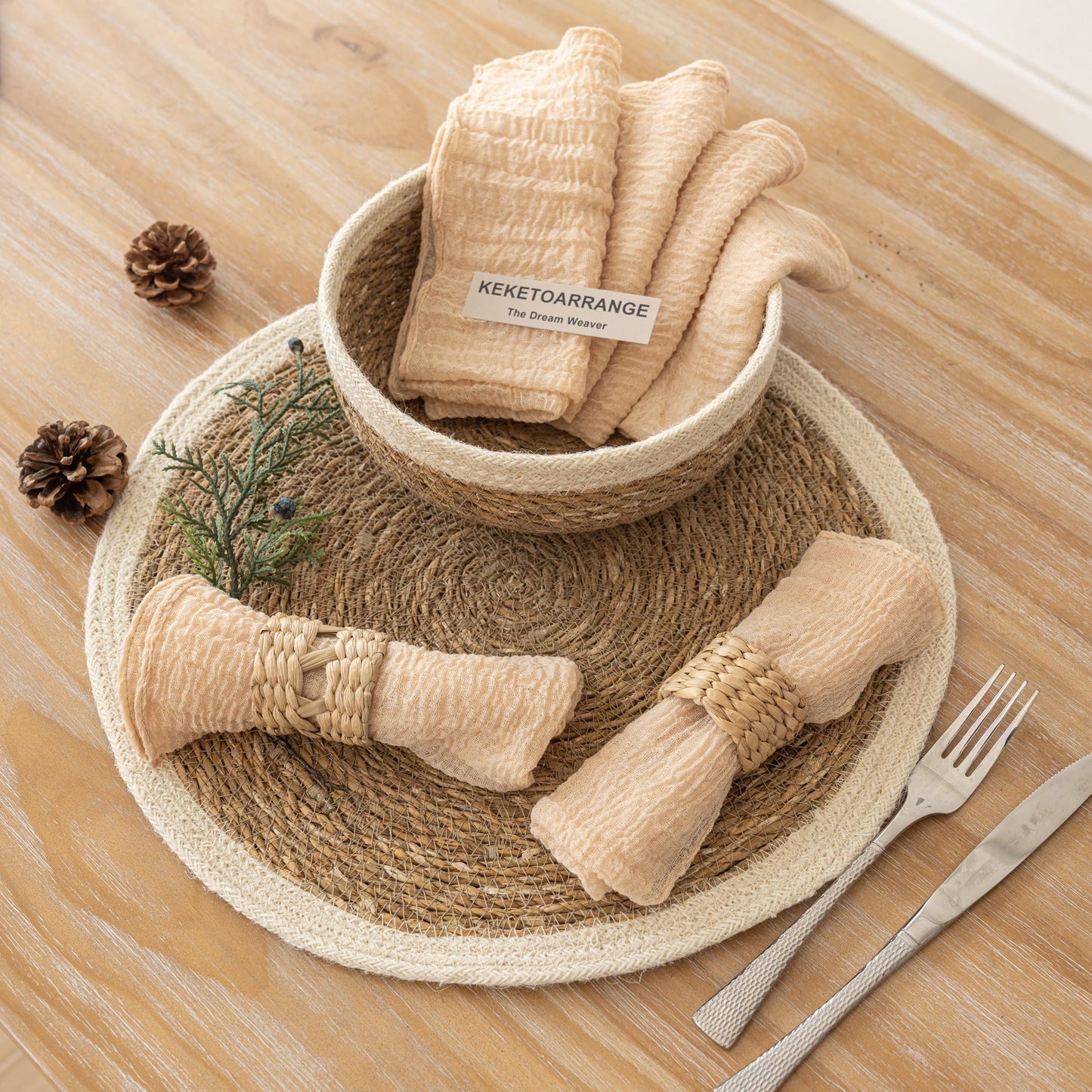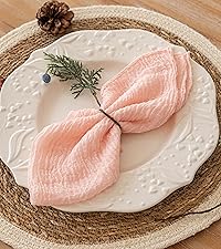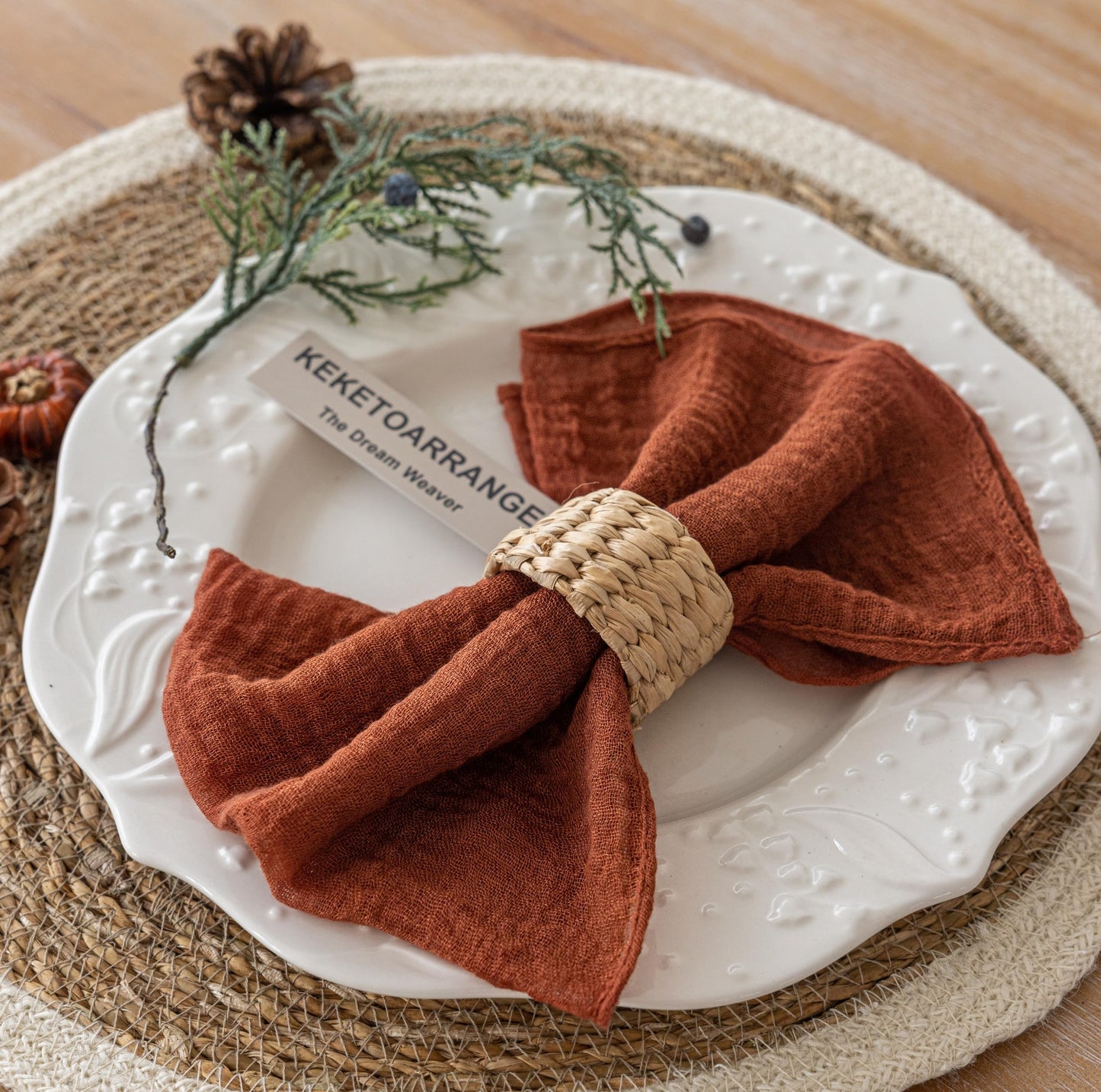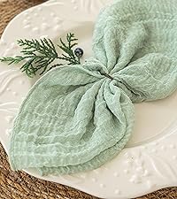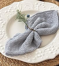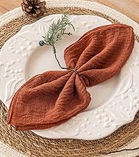 - 【Superior Quality】Crafted from premiun cheesecloth fabric with manual dying process. The edges are thoughtfully stitched to prevent fraying. This top-notch material is incredibly soft, breathable, and long-lasting,The classy napkins bringing a delightful vintage, rustic, and aesthetic charm to your table.