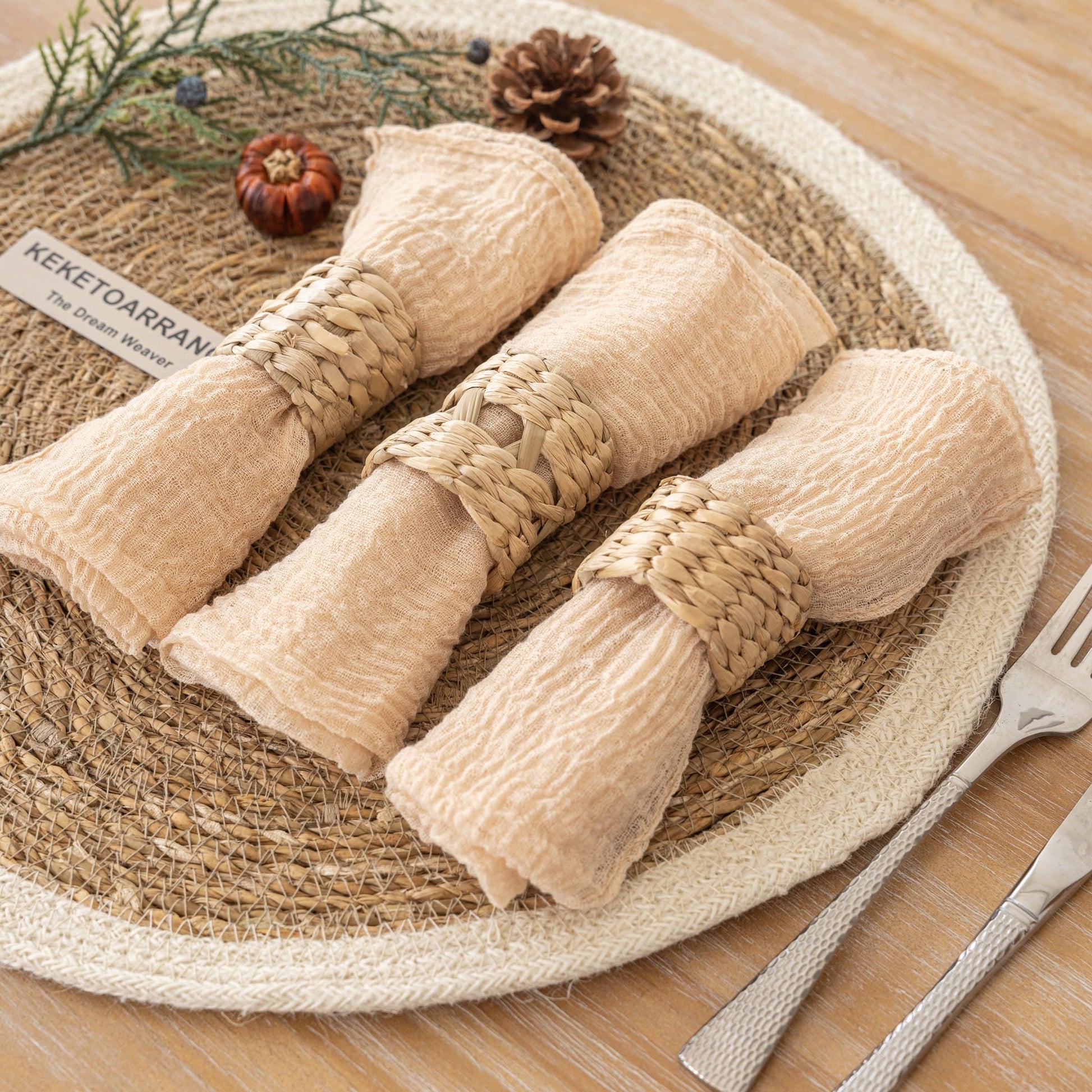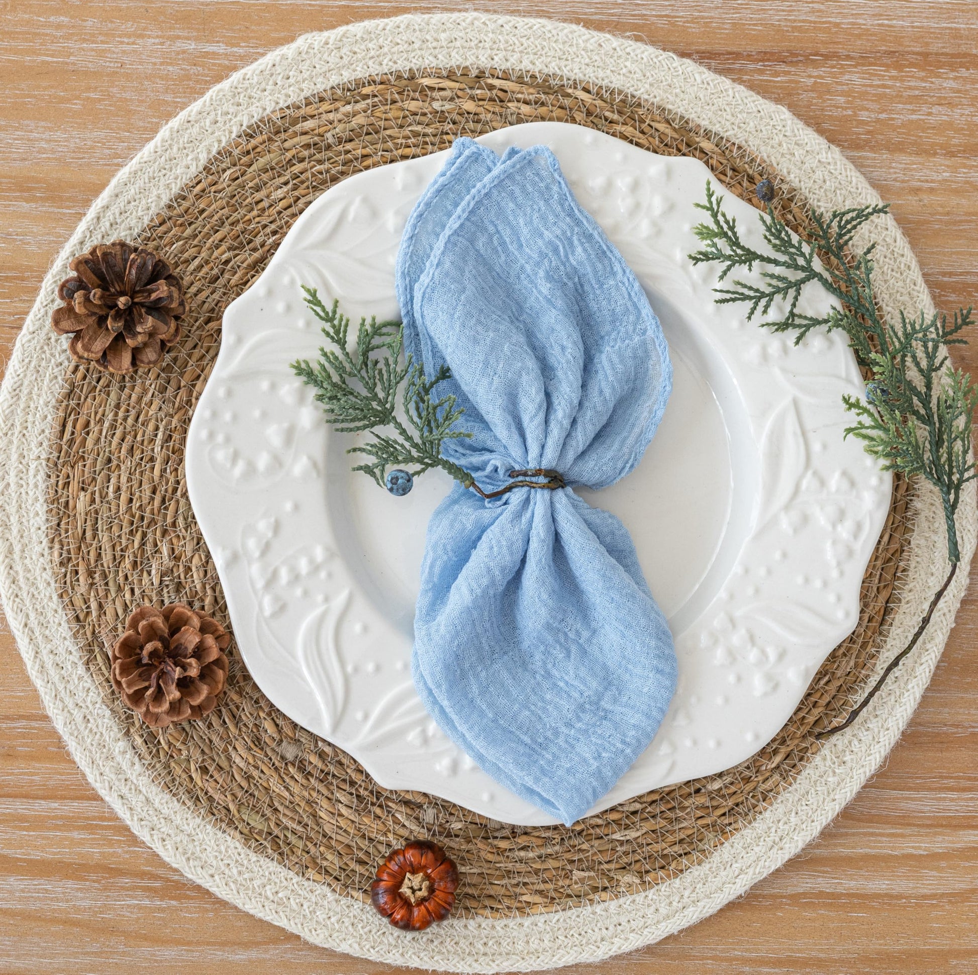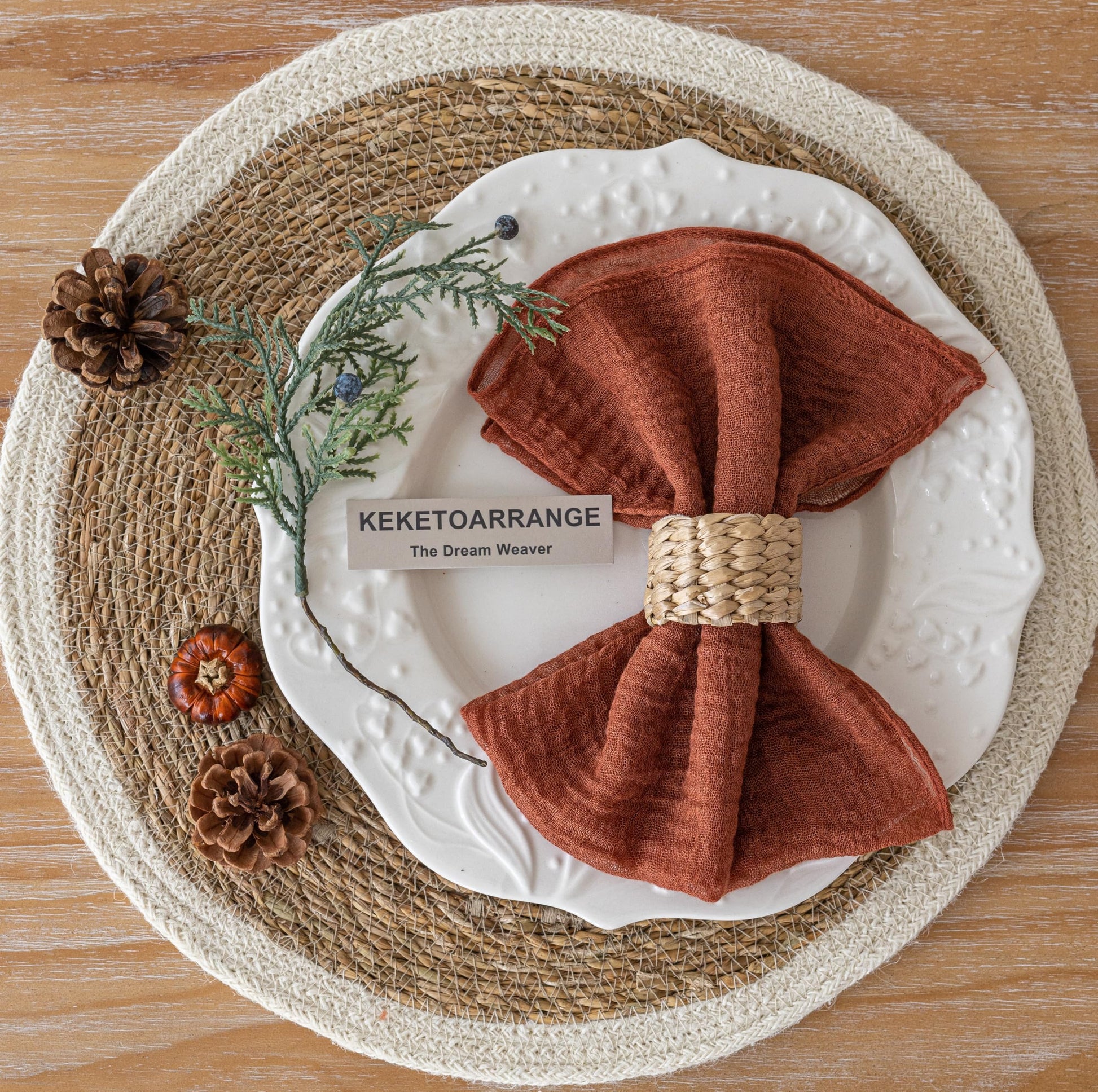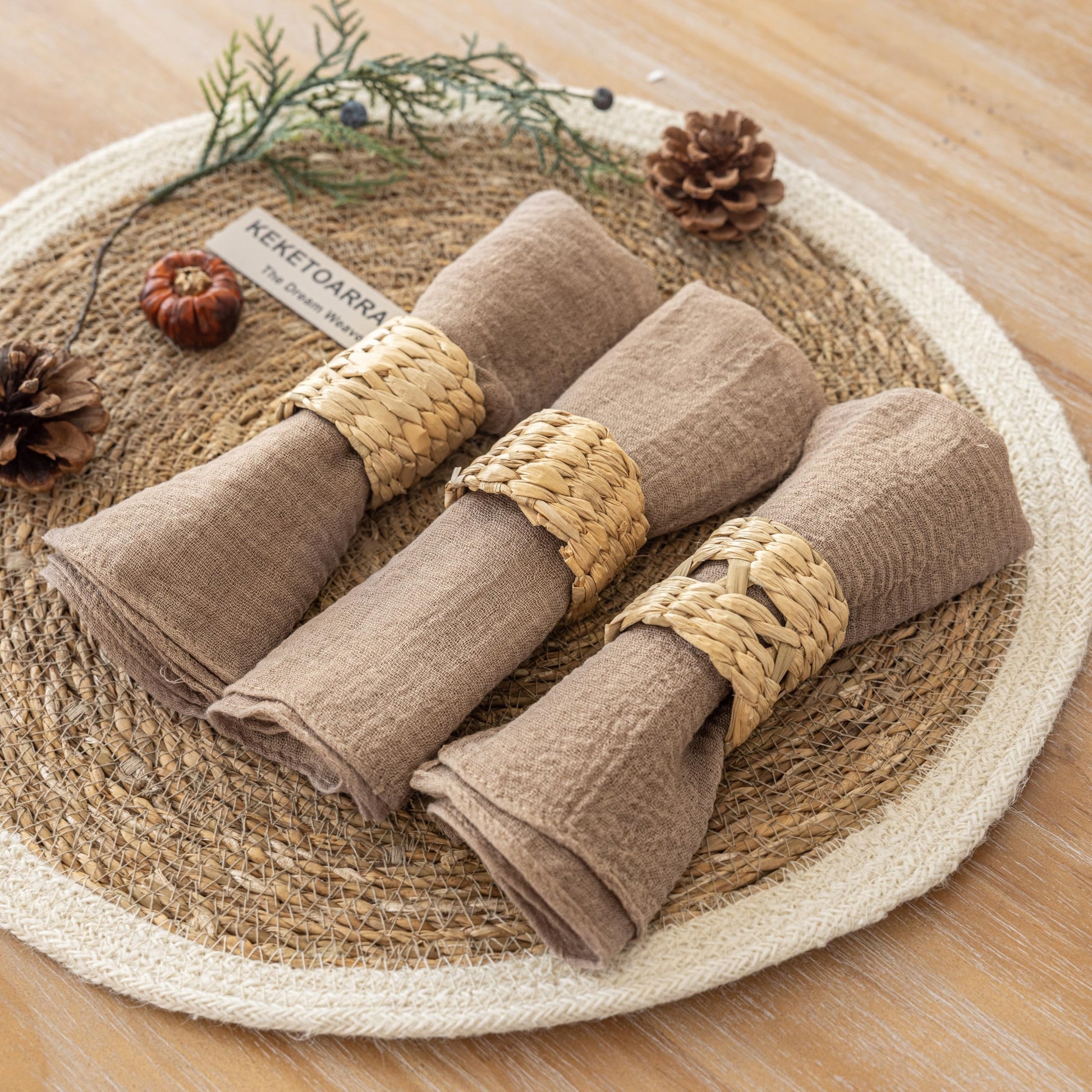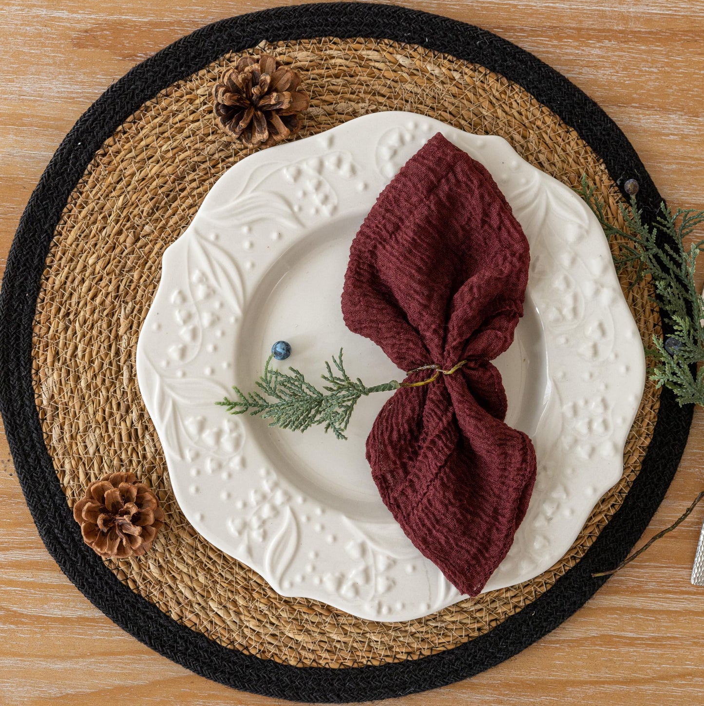- 【Superior Quality】Crafted from premiun cheesecloth fabric with manual dying process. The edges are thoughtfully stitched to prevent fraying. This top-notch material is incredibly soft, breathable, and long-lasting,The classy napkins bringing a delightful vintage, rustic, and aesthetic charm to your table.