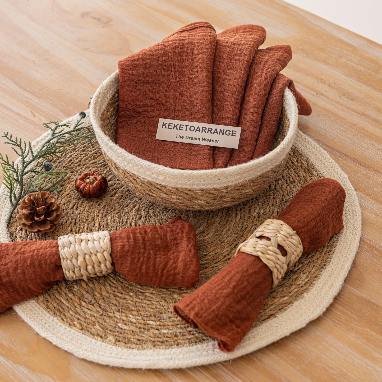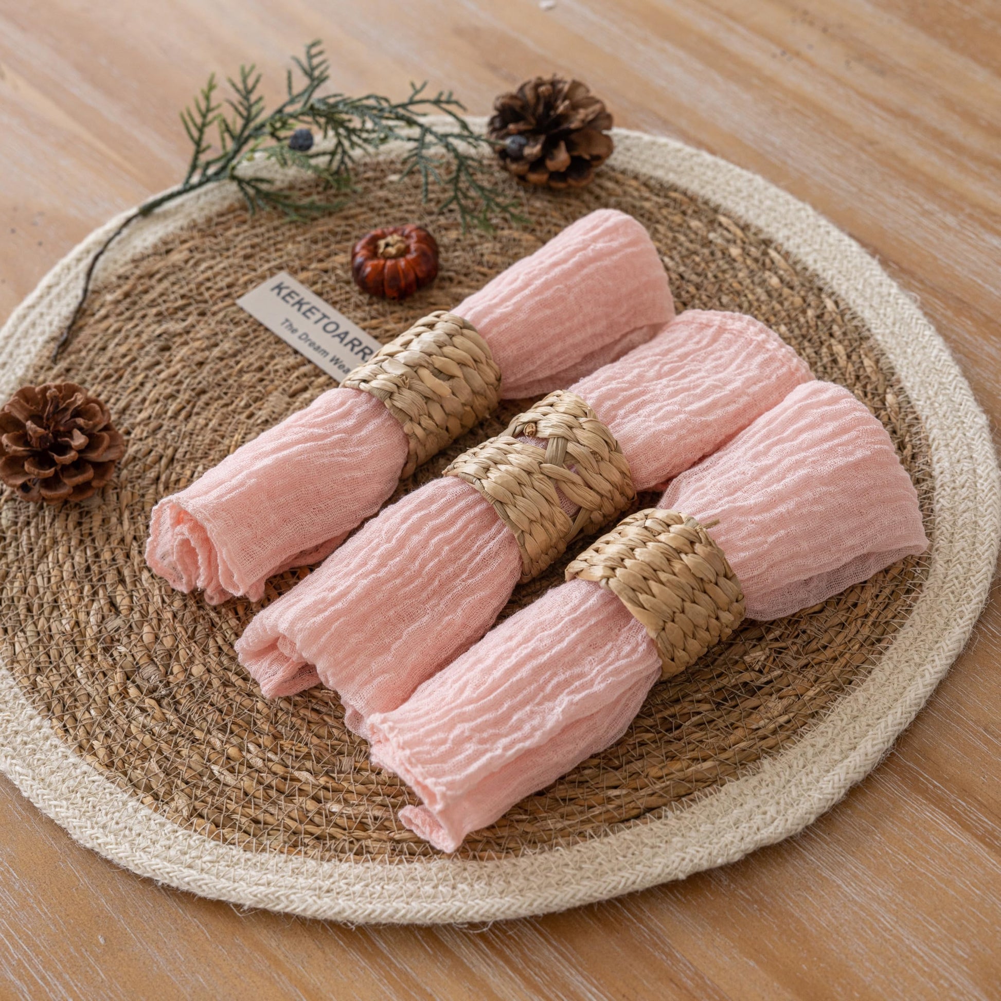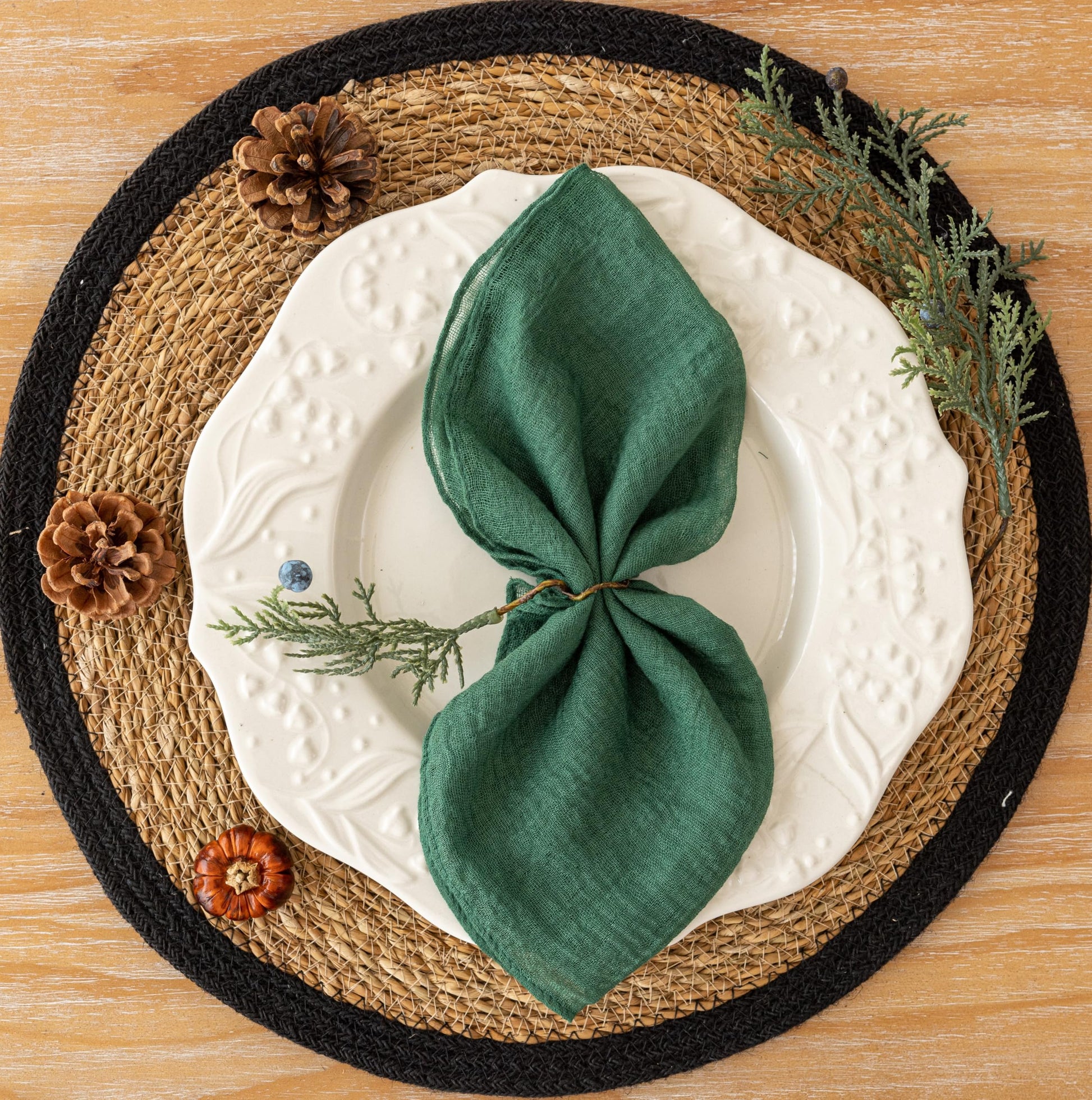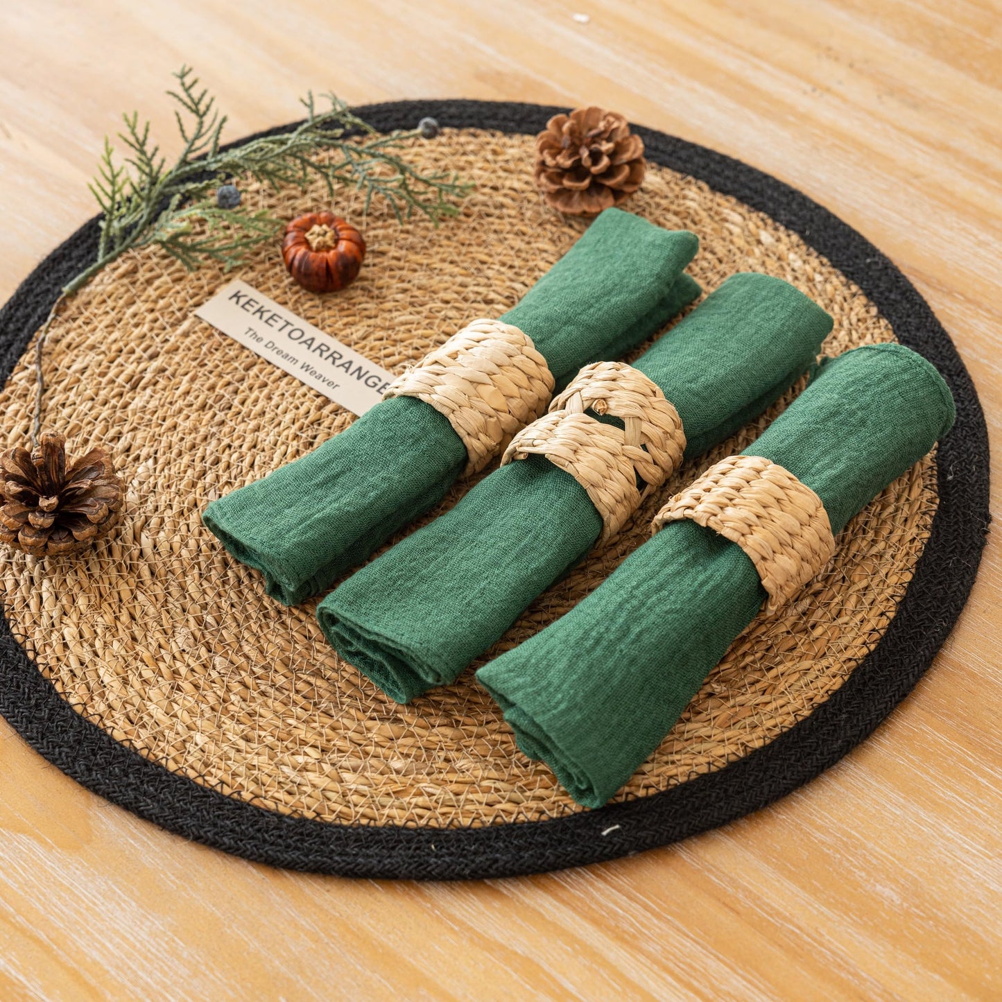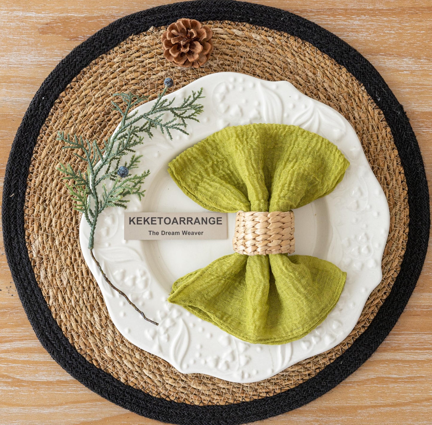 - 【Superior Quality】Crafted from premiun cheesecloth fabric with manual dying process. The edges are thoughtfully stitched to prevent fraying. This top-notch material is incredibly soft, breathable, and long-lasting,The classy napkins bringing a delightful vintage, rustic, and aesthetic charm to your table.