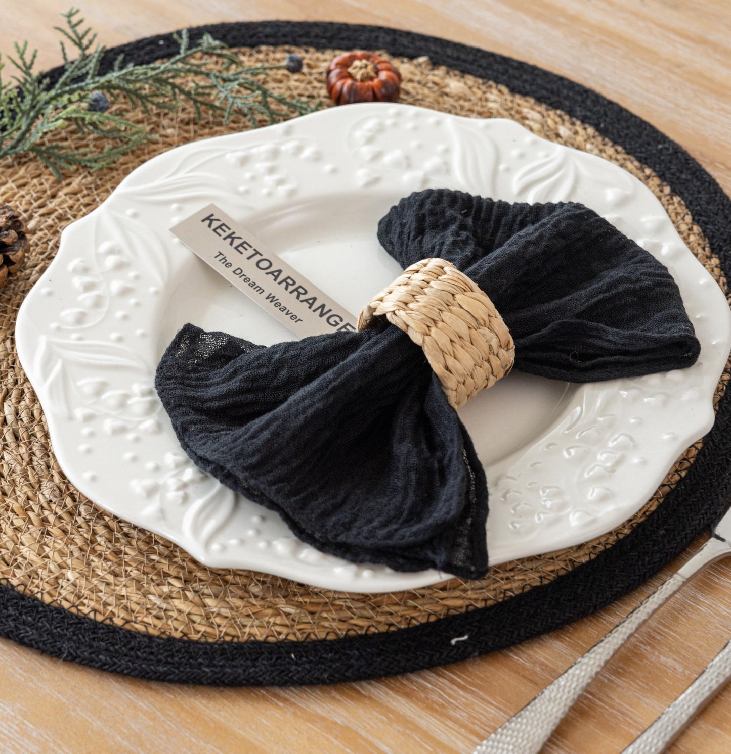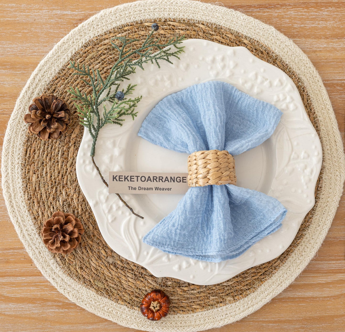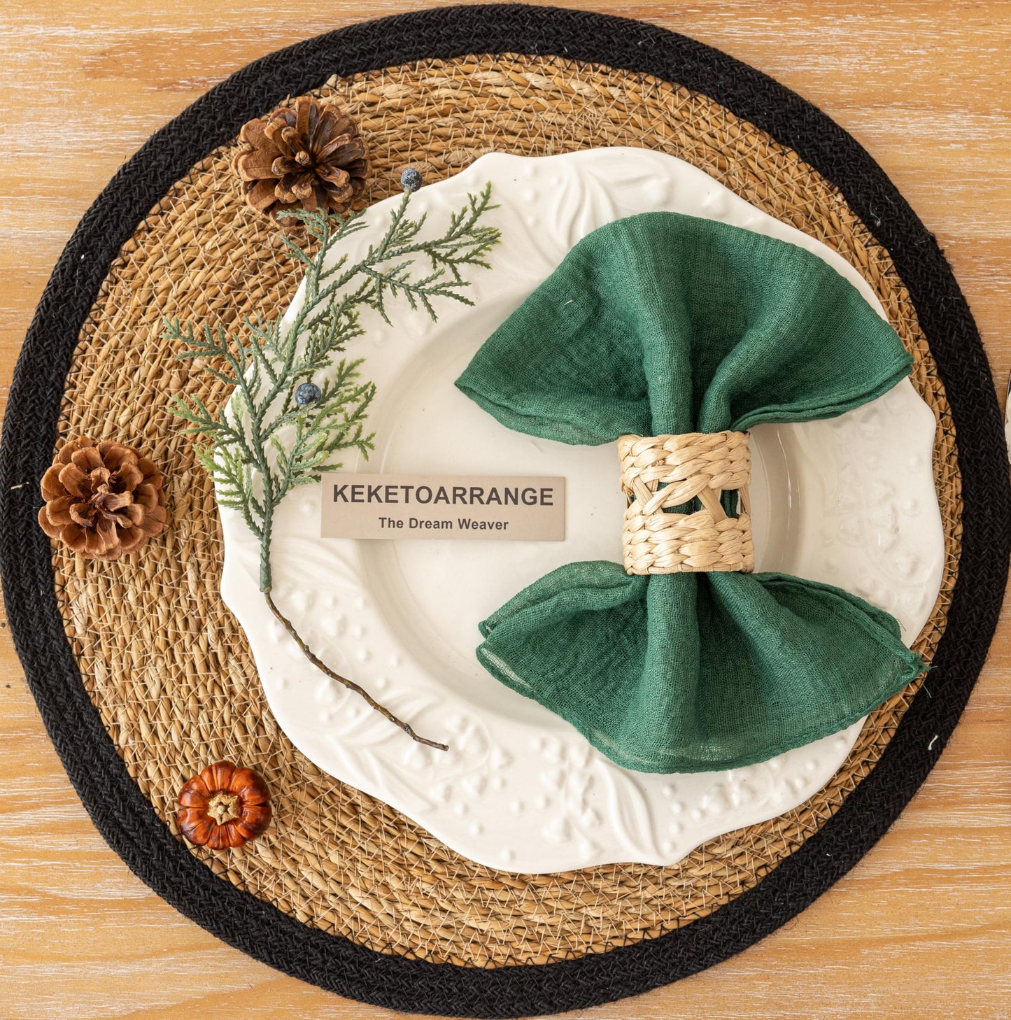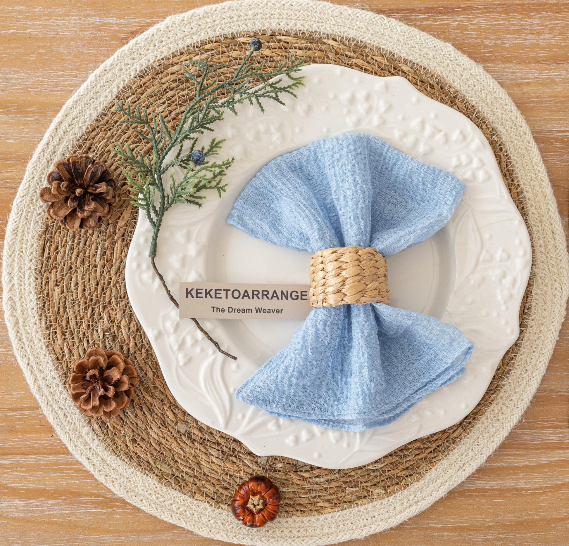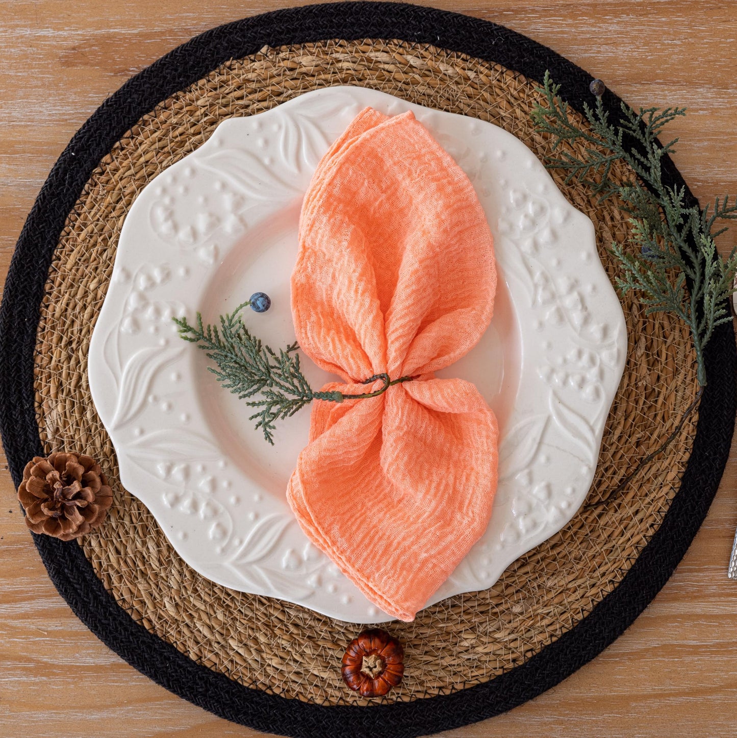 - 【Superior Quality】Crafted from premiun cheesecloth fabric with manual dying process. The edges are thoughtfully stitched to prevent fraying. This top-notch material is incredibly soft, breathable, and long-lasting,The classy napkins bringing a delightful vintage, rustic, and aesthetic charm to your table.