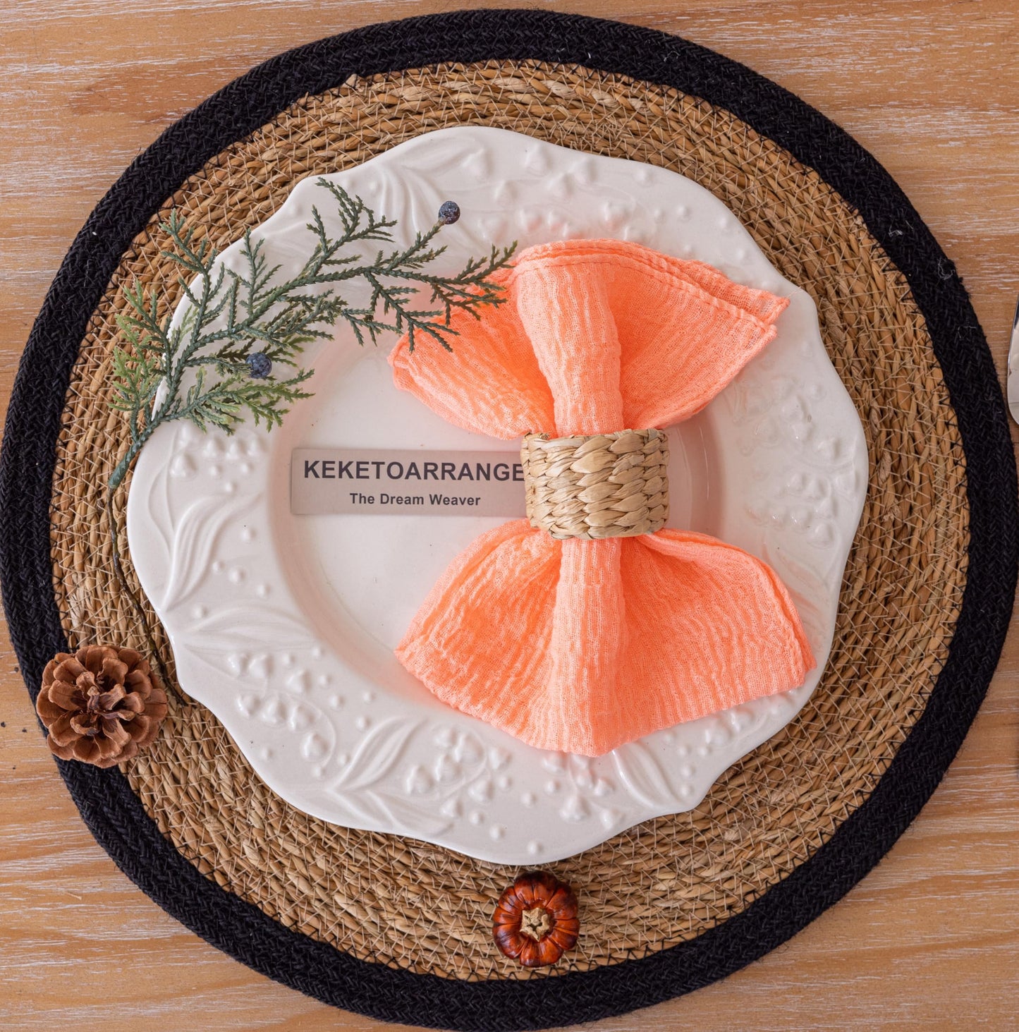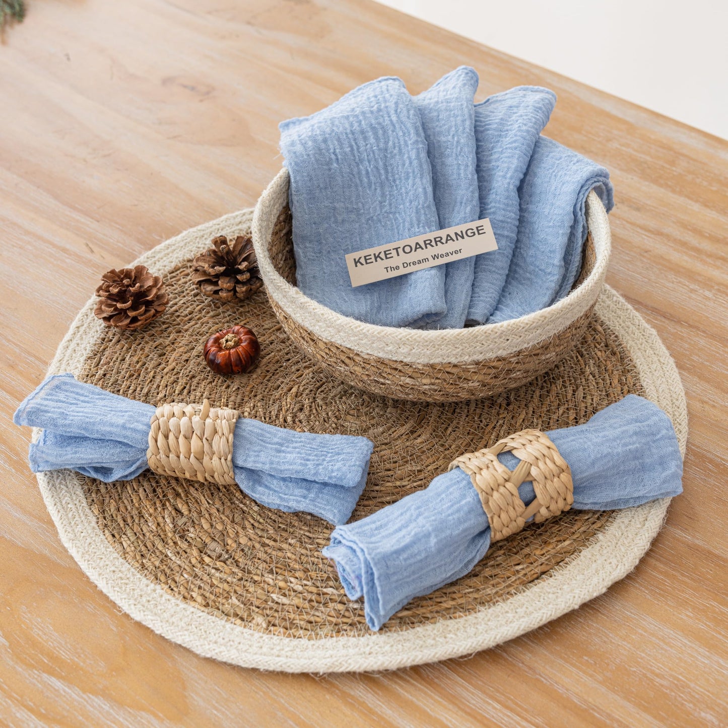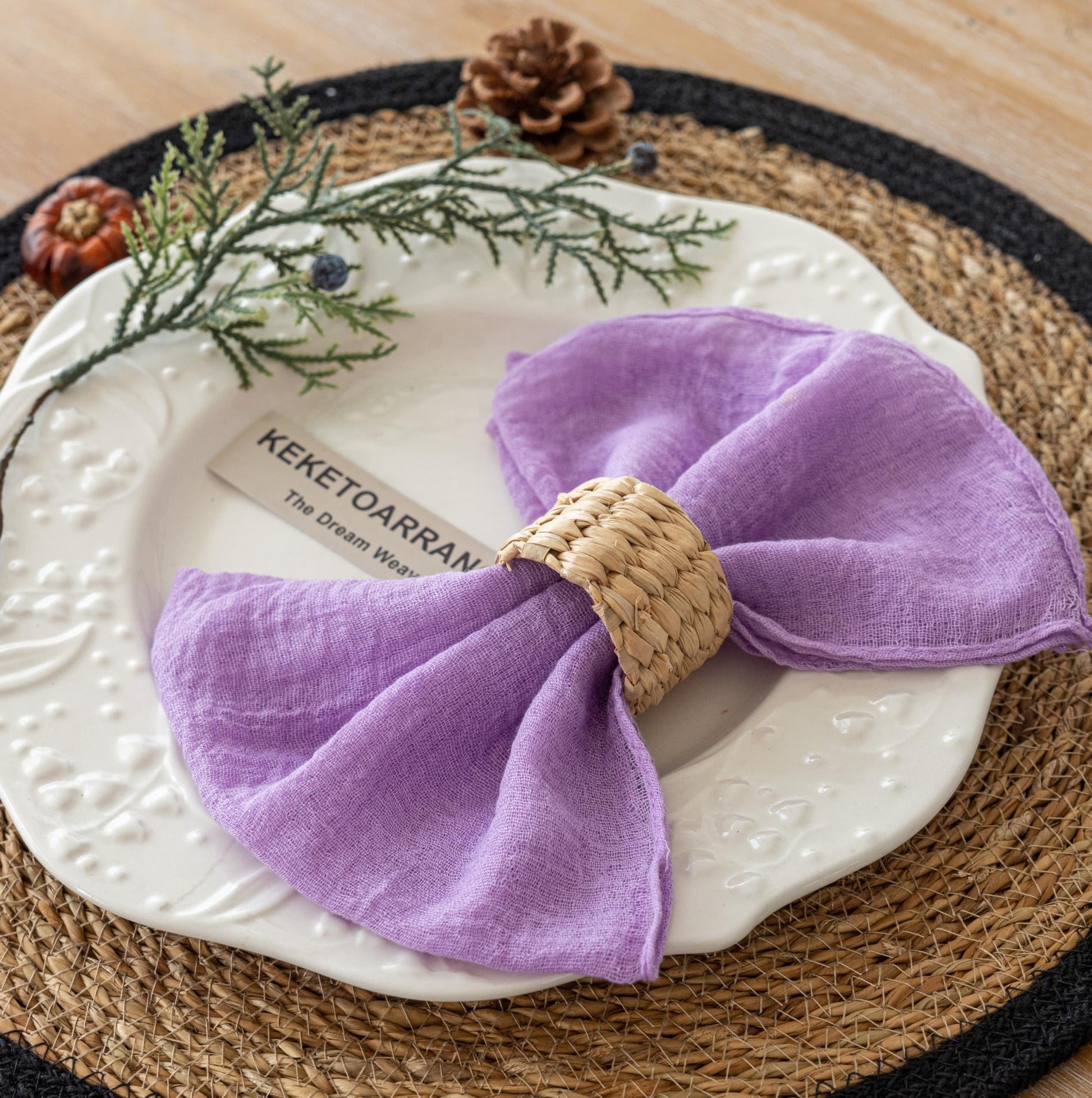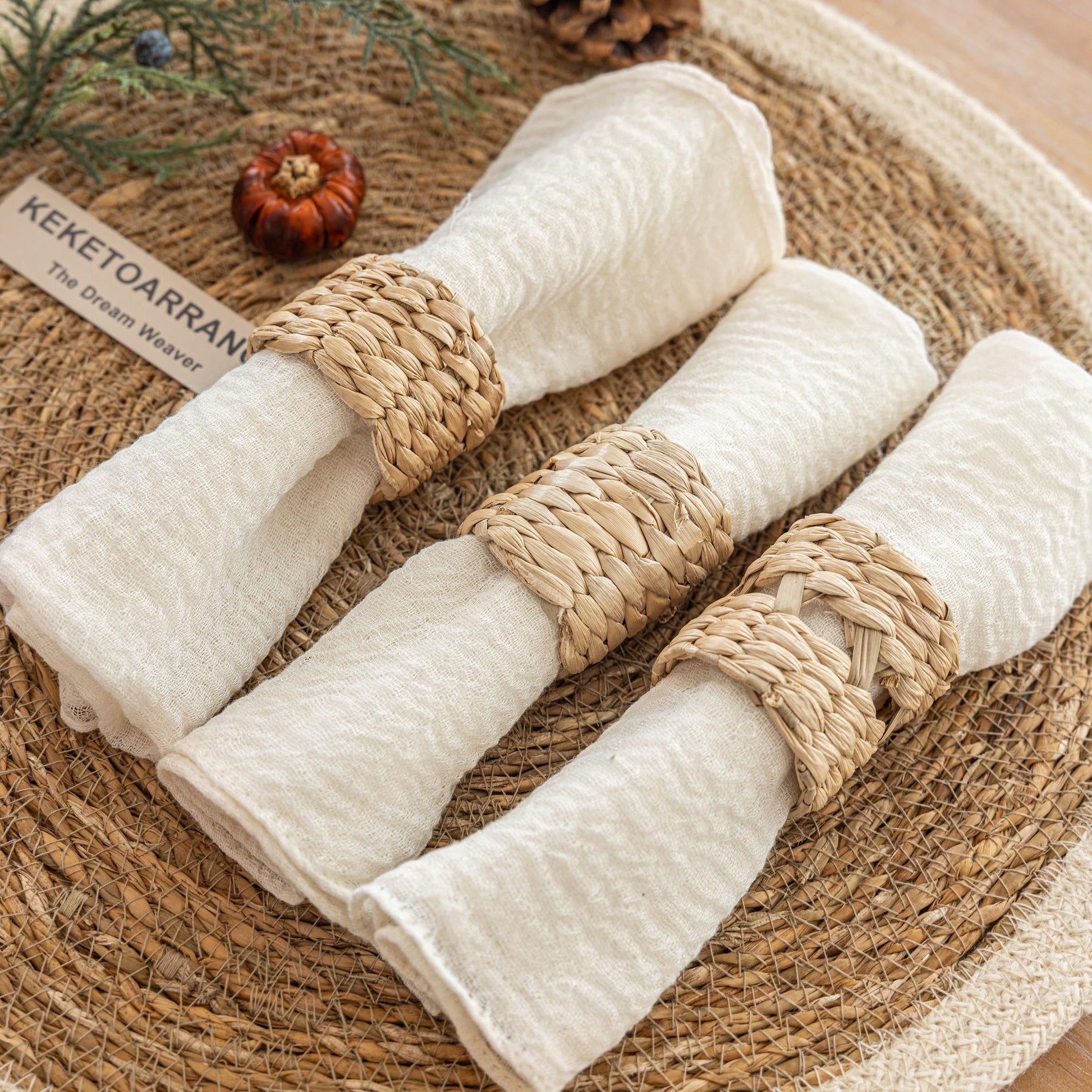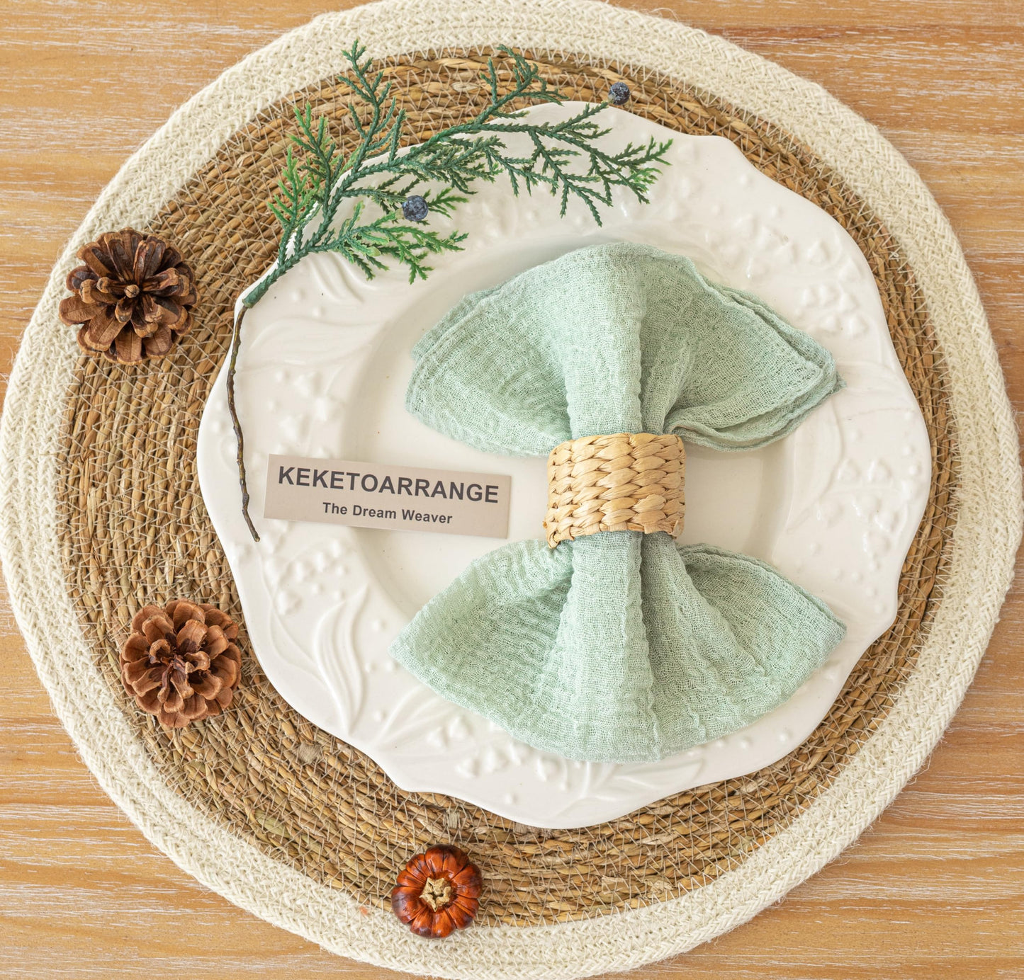 - 【Superior Quality】Crafted from premiun cheesecloth fabric with manual dying process. The edges are thoughtfully stitched to prevent fraying. This top-notch material is incredibly soft, breathable, and long-lasting,The classy napkins bringing a delightful vintage, rustic, and aesthetic charm to your table.
