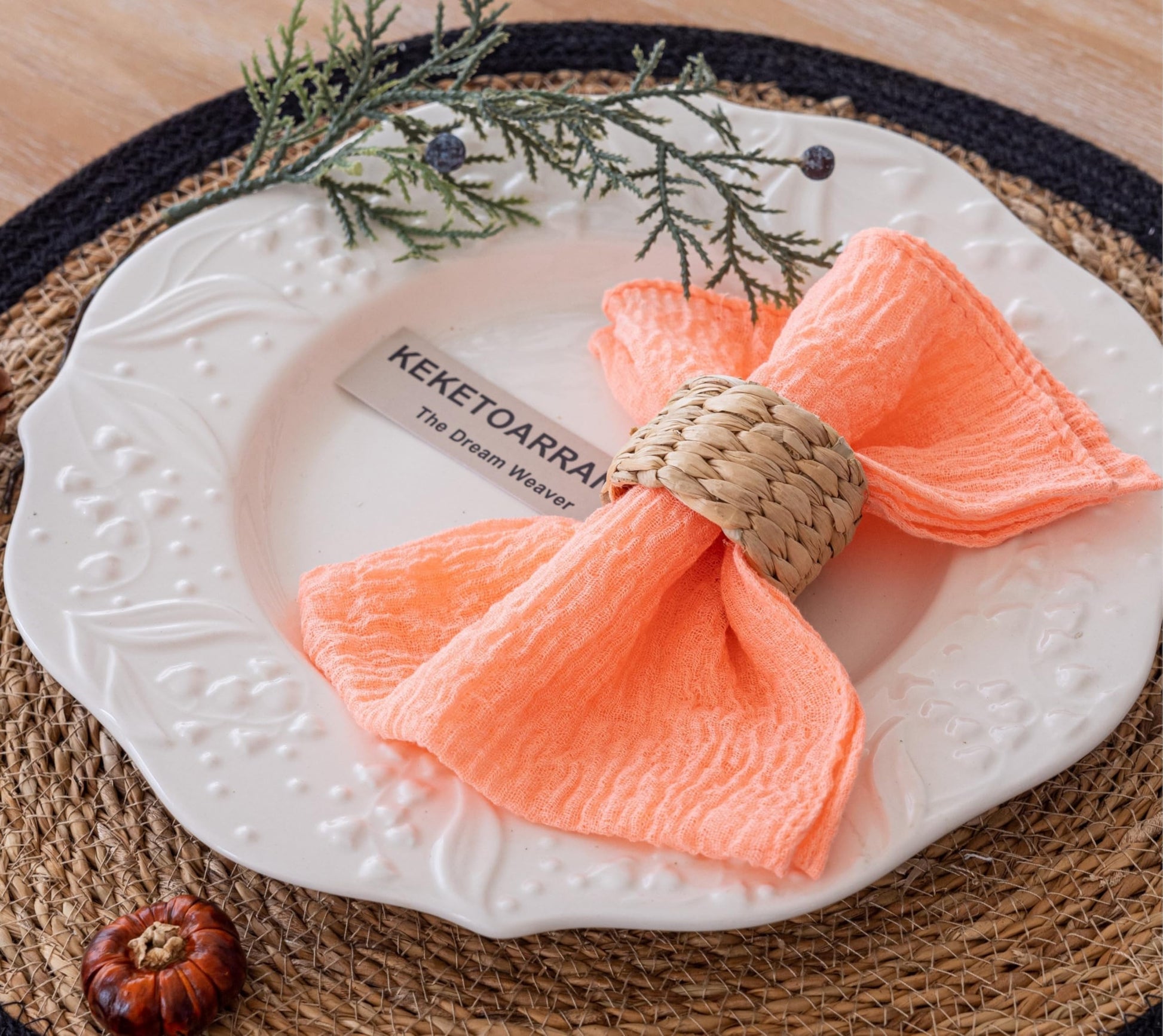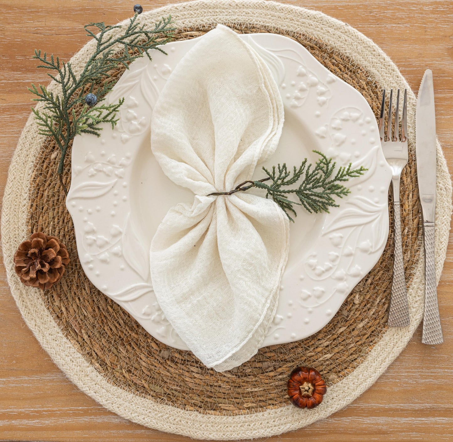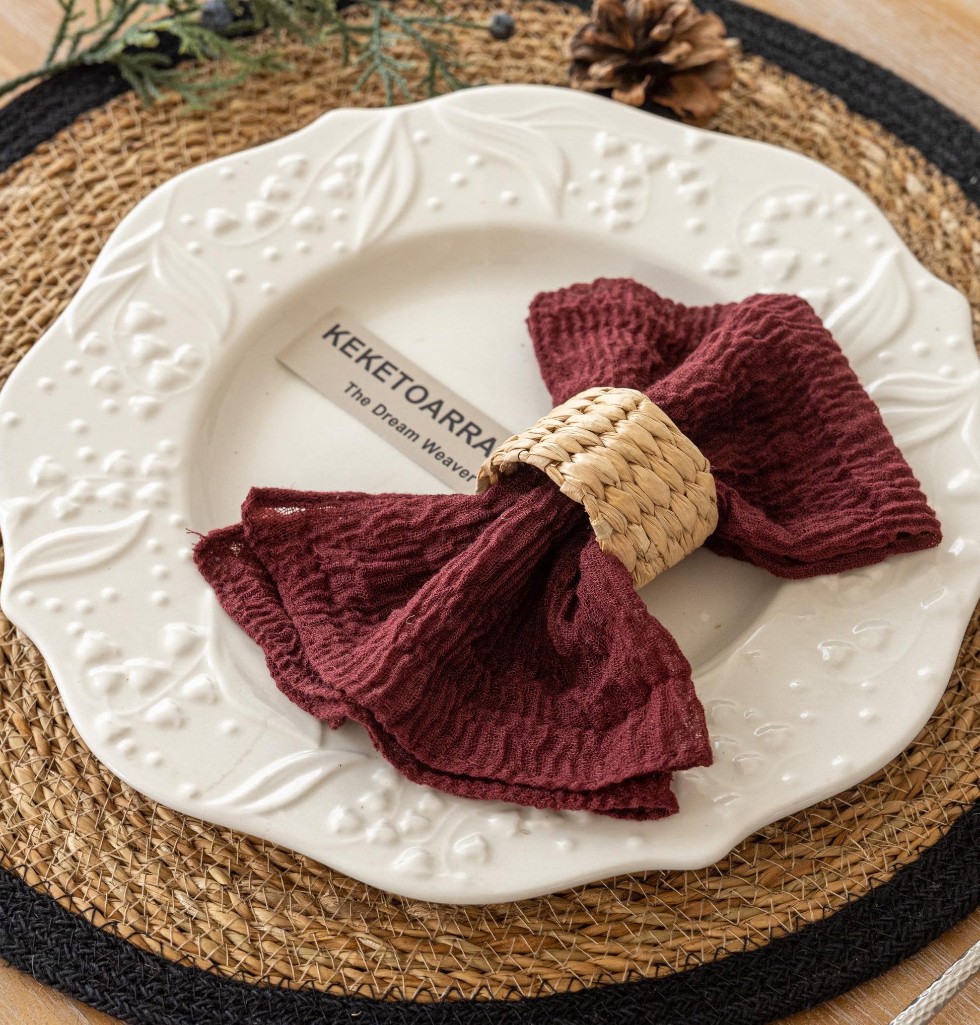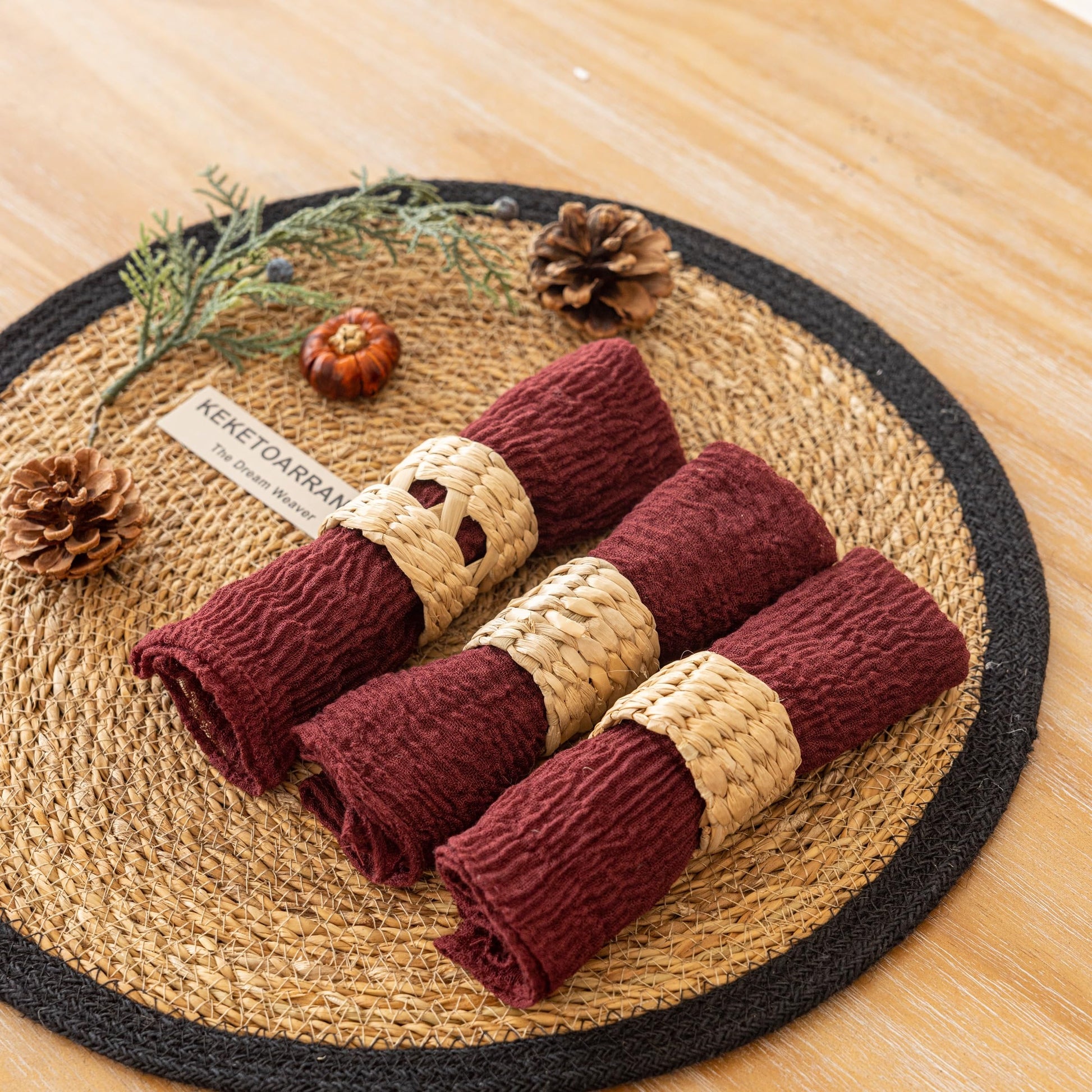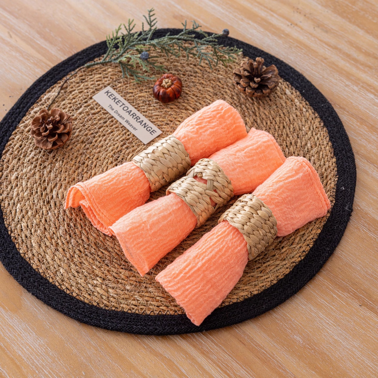 - 【Superior Quality】Crafted from premiun cheesecloth fabric with manual dying process. The edges are thoughtfully stitched to prevent fraying. This top-notch material is incredibly soft, breathable, and long-lasting,The classy napkins bringing a delightful vintage, rustic, and aesthetic charm to your table.