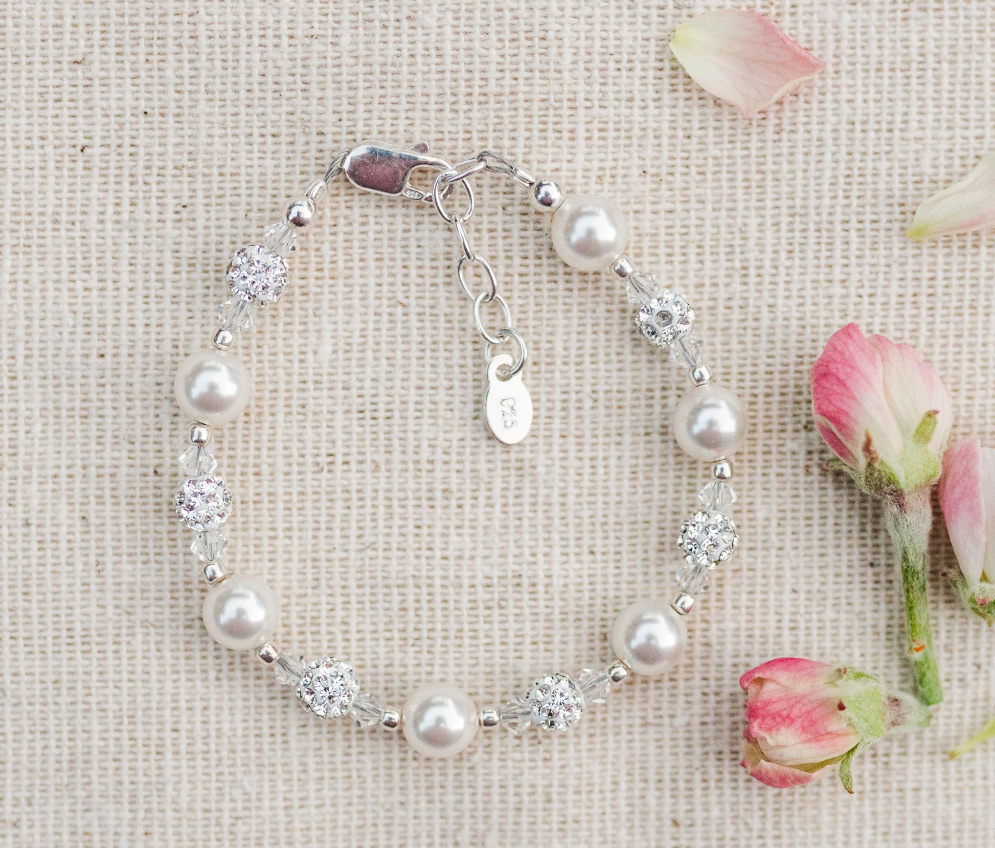 - PREMIUM QUALITY – Bracelets are hand beaded in the USA by crafted jewelers and designed with 14K Gold Plating (over .925 sterling silver). Created with the finest components including High-End Simulated pearls, High-end Crystals, and sparkling pave beads making this a timeless keepsake piece she will treasure forever.