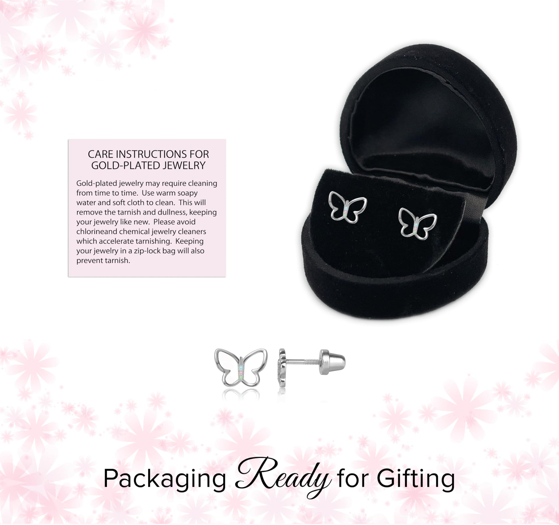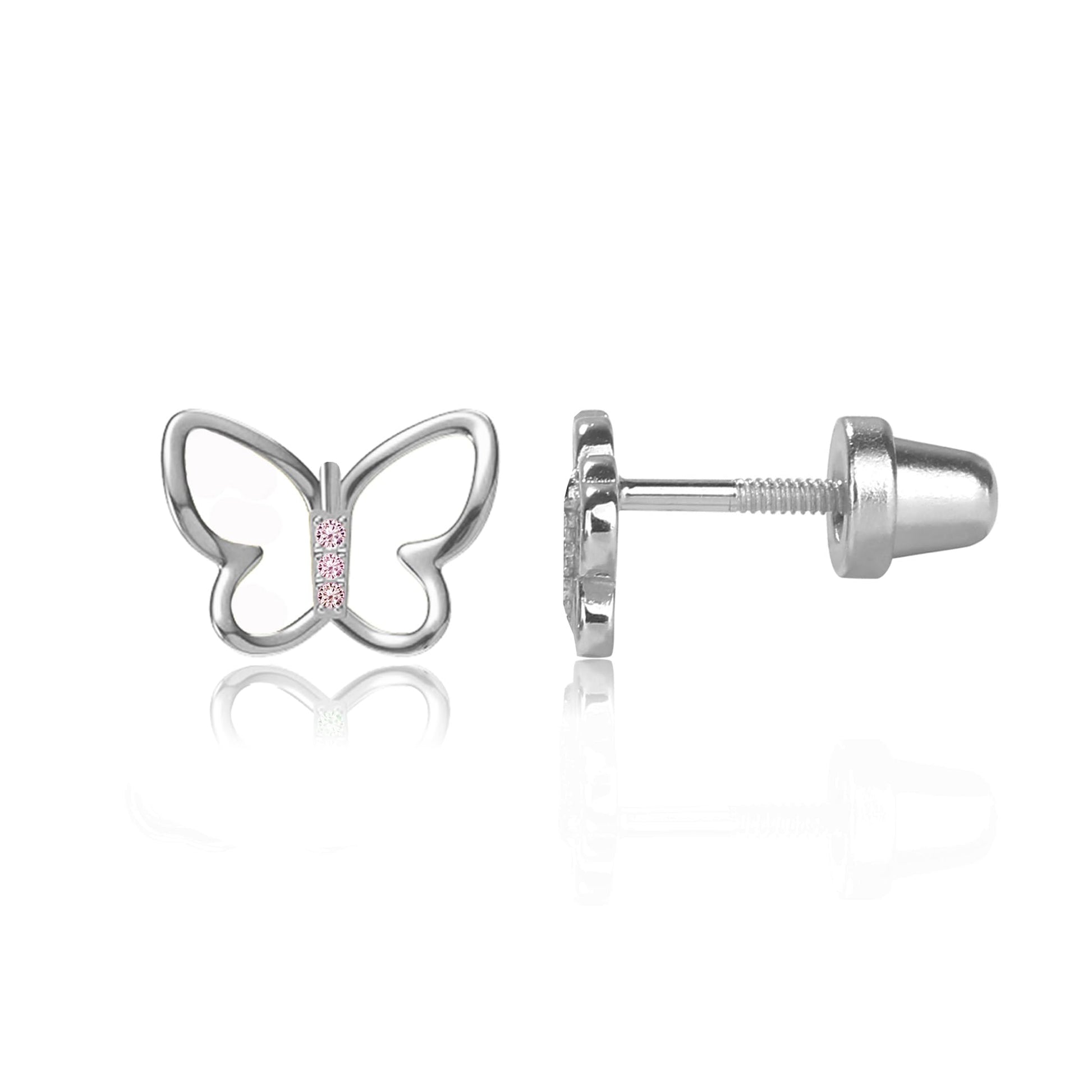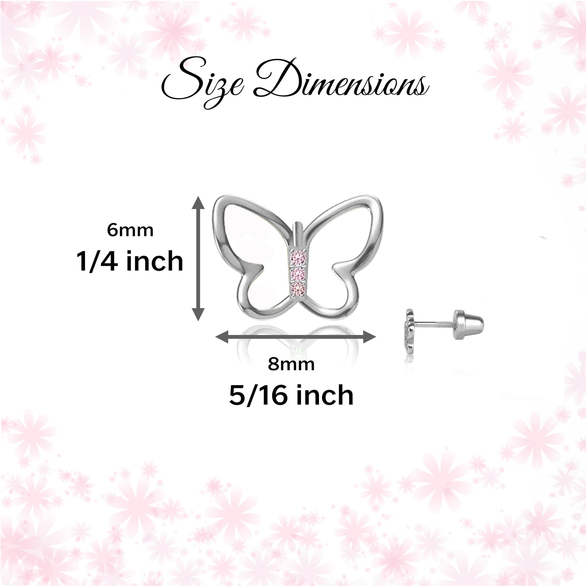 - PREMIUM QUALITY – Adorable butterfly earrings are designed using .925 sterling silver and feature sparkling pink CZ stones. They are hypoallergenic and nickel free so they will not irritate sensitive ears. These make a timeless keepsake she will treasure forever.