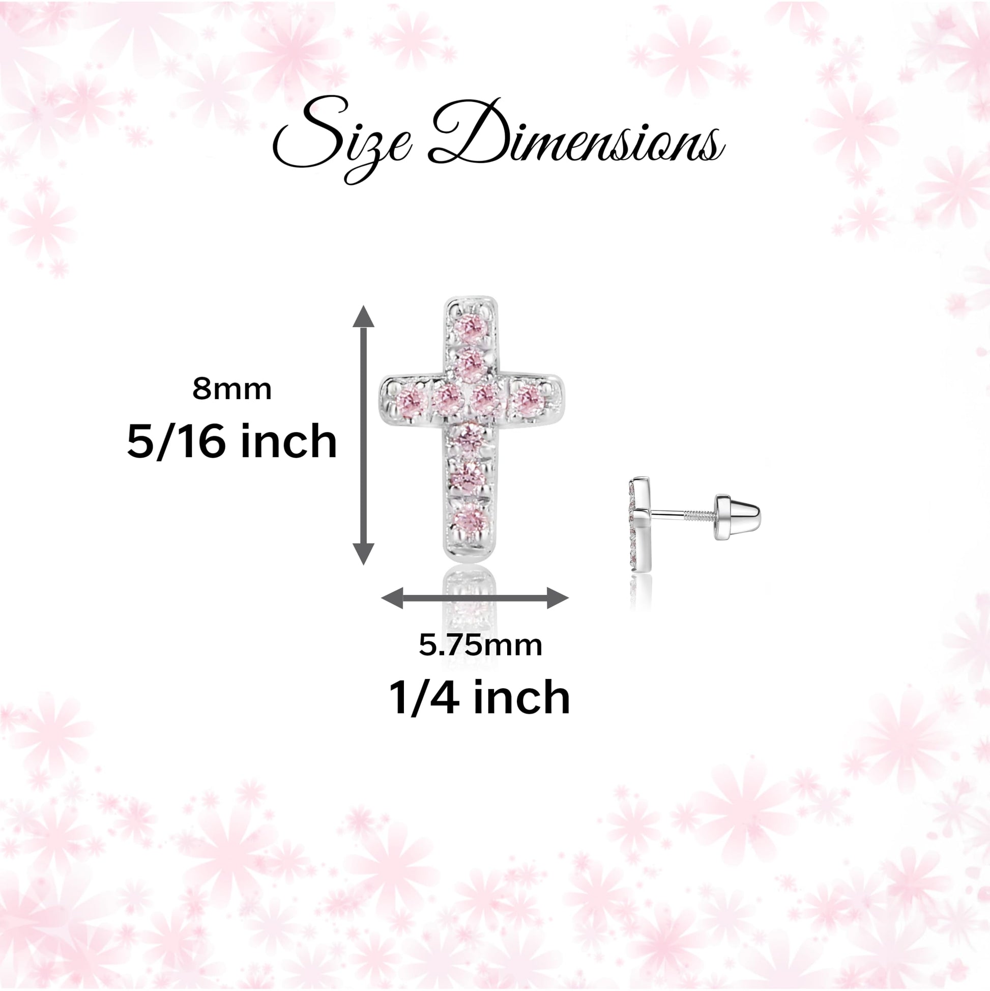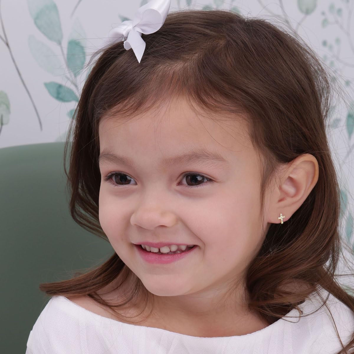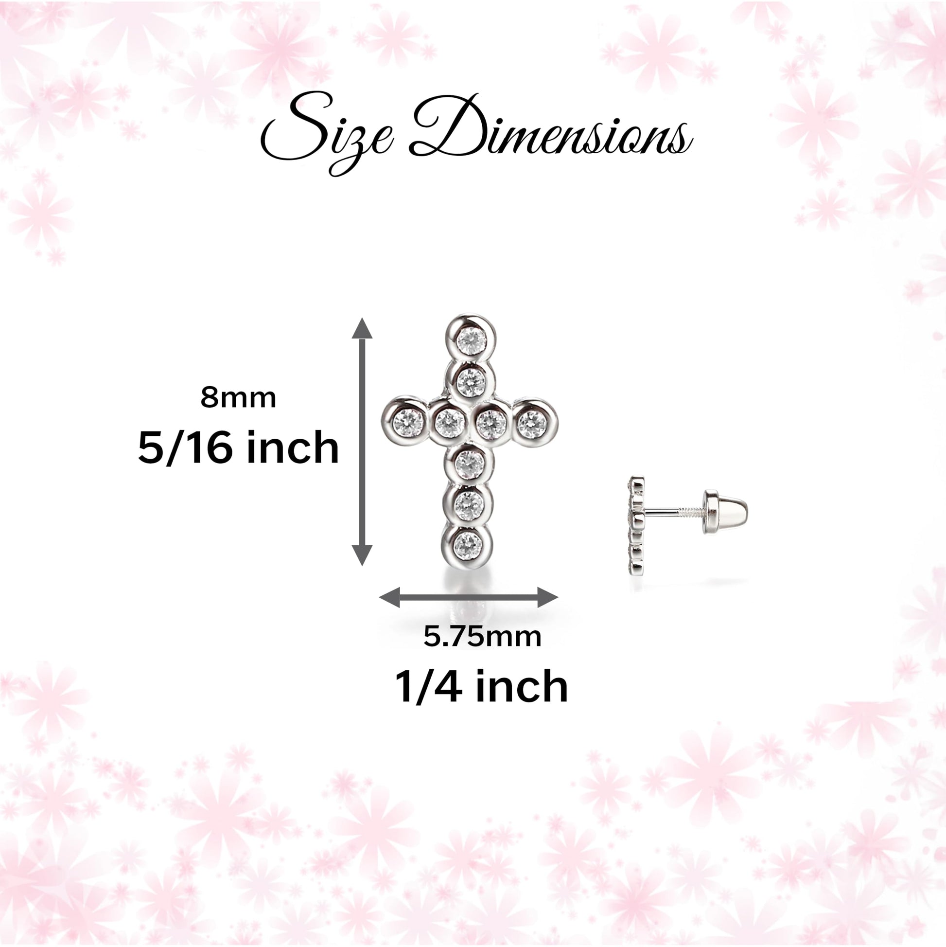 Cherished Moments Children's Sterling Silver or Gold-Plated Cross Earrings with CZs and Safety Screw Backs for Baptism, Christening and First Communion Gifts for Girls