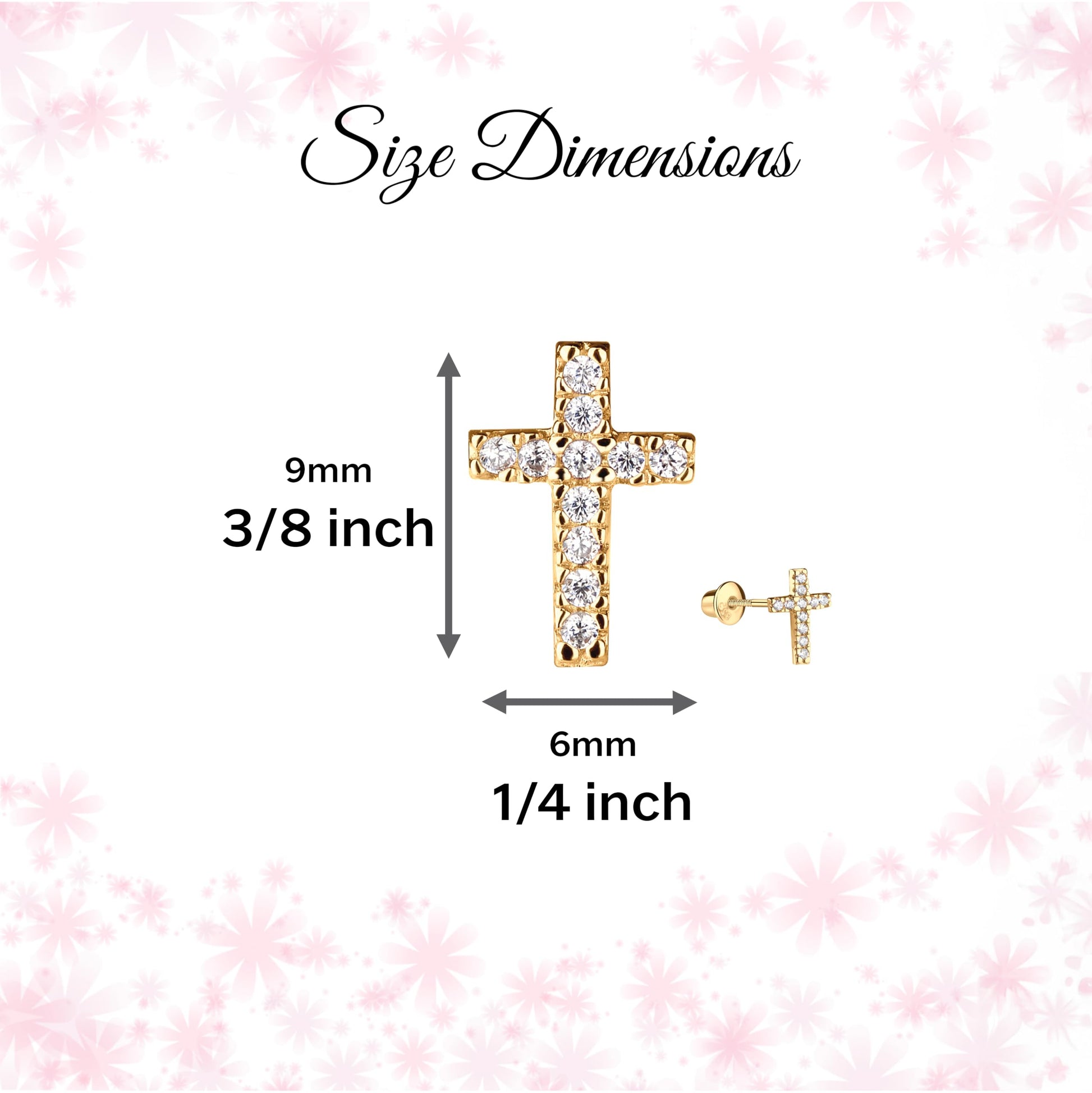 - PREMIUM QUALITY – Earrings are designed with 14K gold-plating (over .925 sterling silver) and feature a cross with sparkling CZ's. They are hypoallergenic and nickel free so they will not irritate sensitive ears. These make a timeless keepsake she will treasure forever.