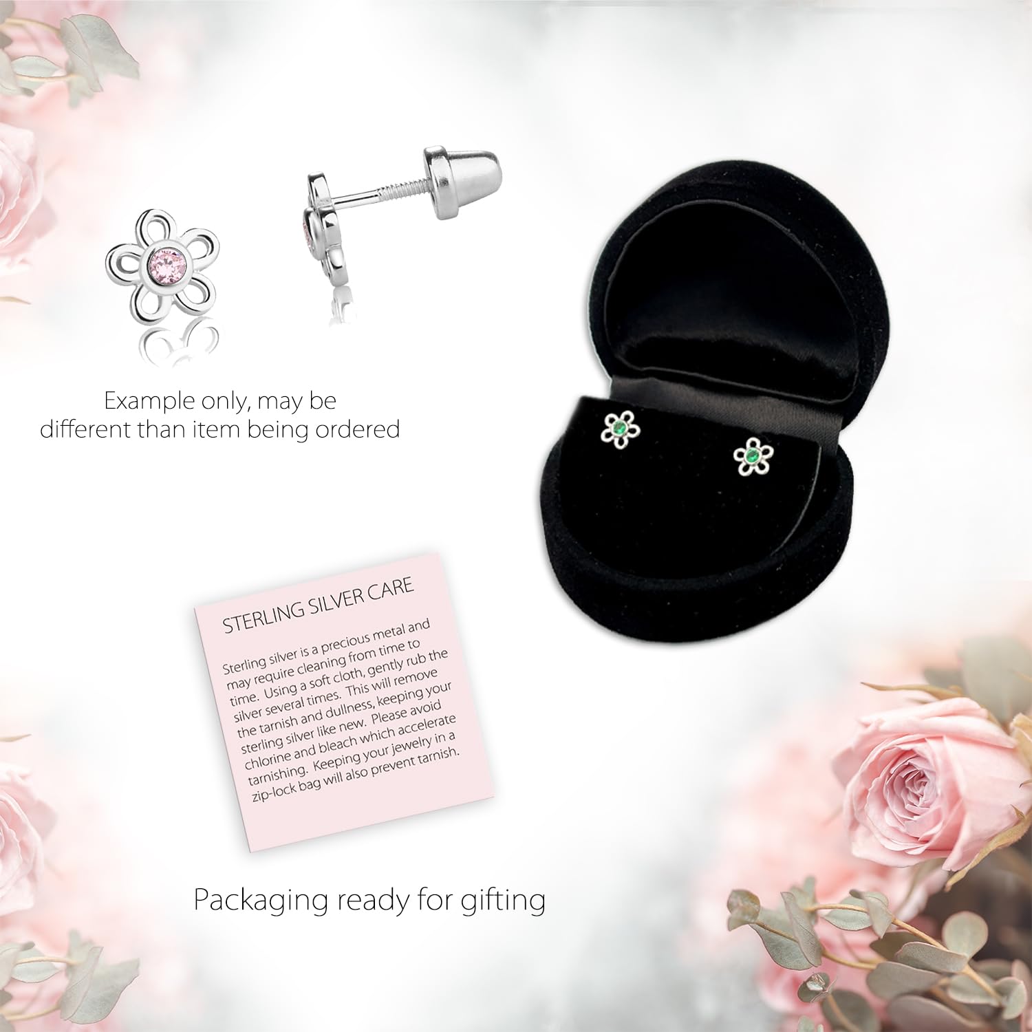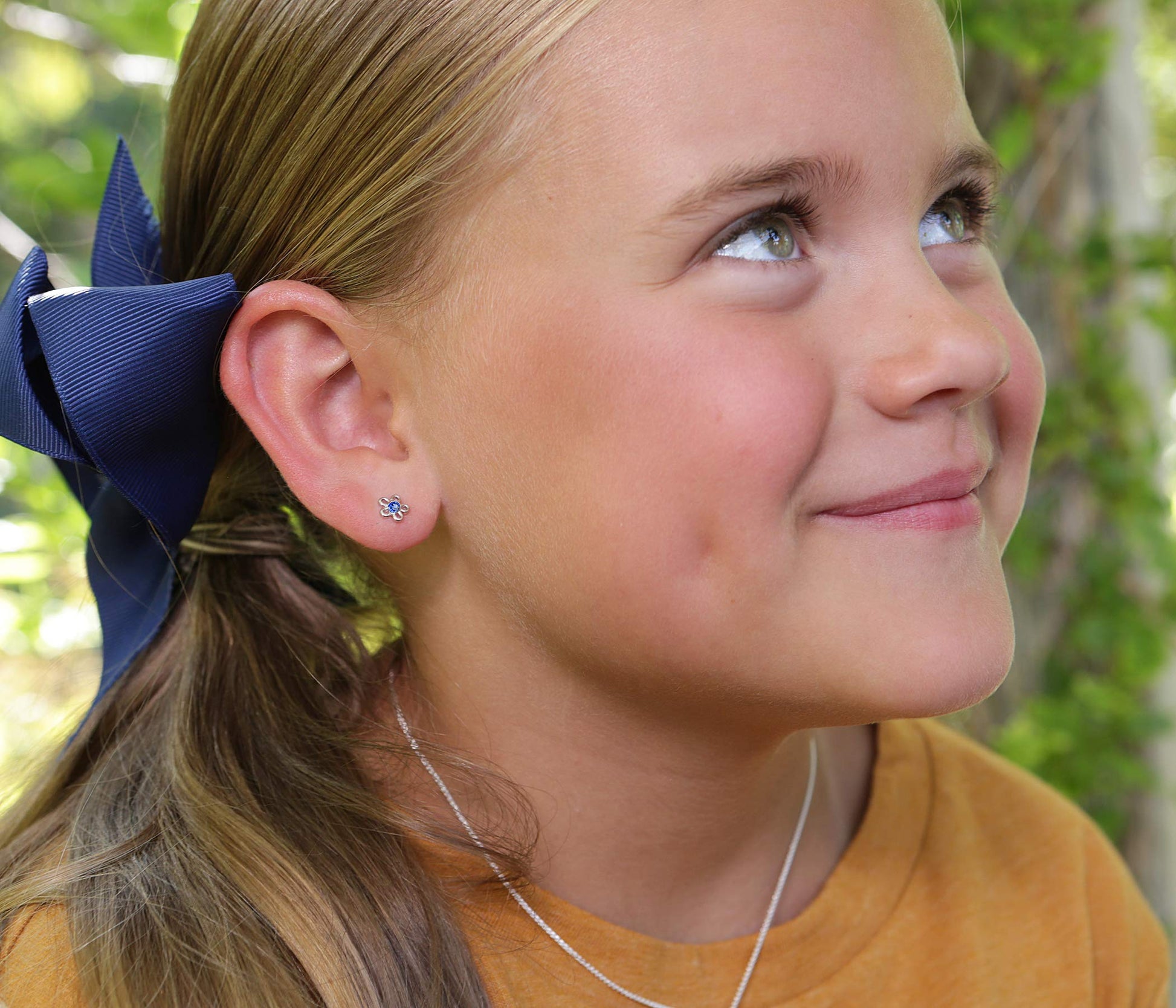 Sterling Silver Daisy Birthstone Earrings for Children ... FLOWER Power!