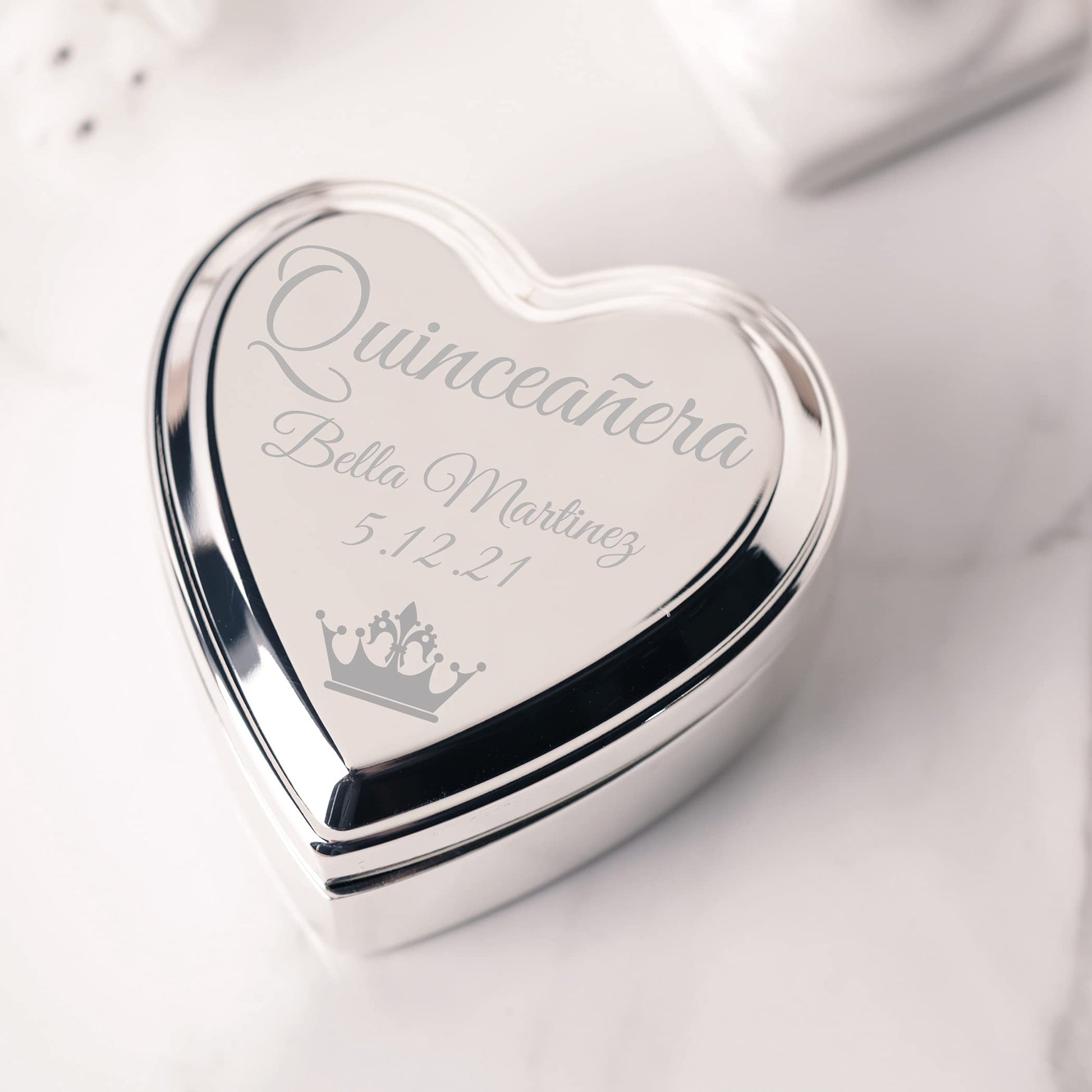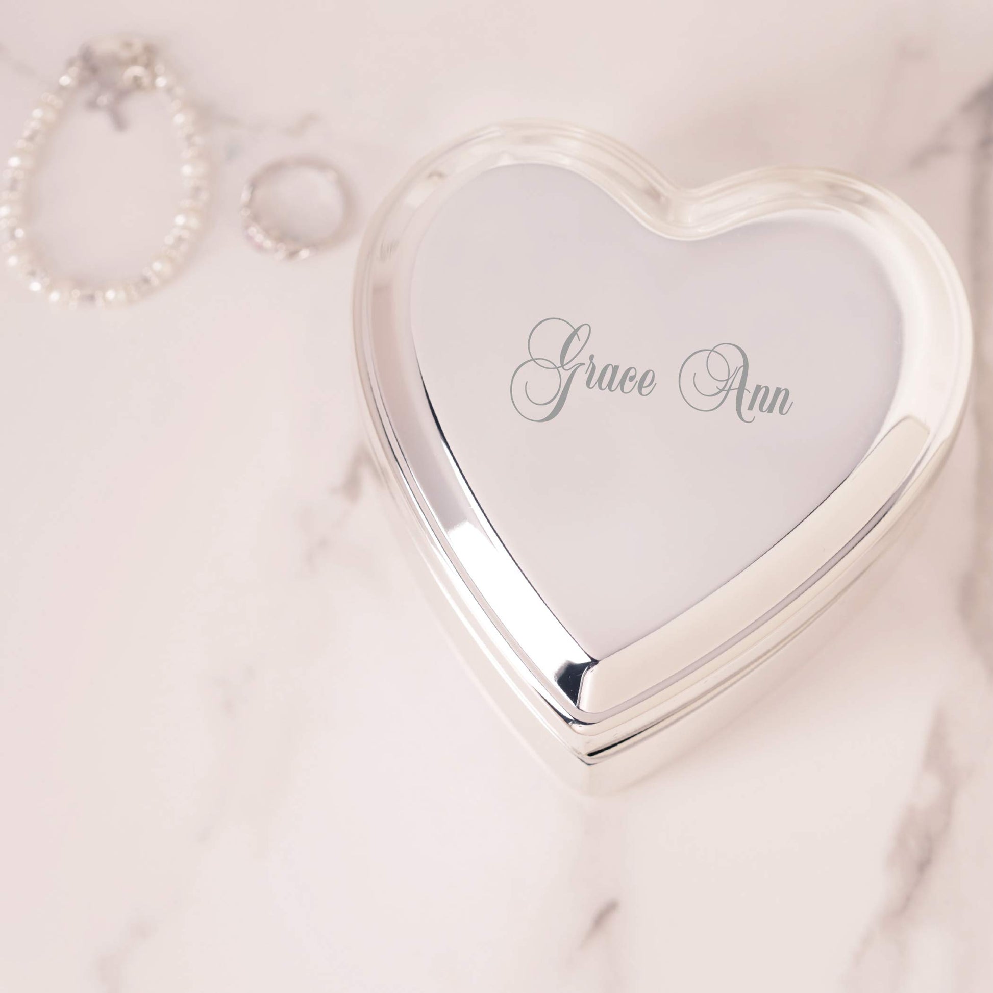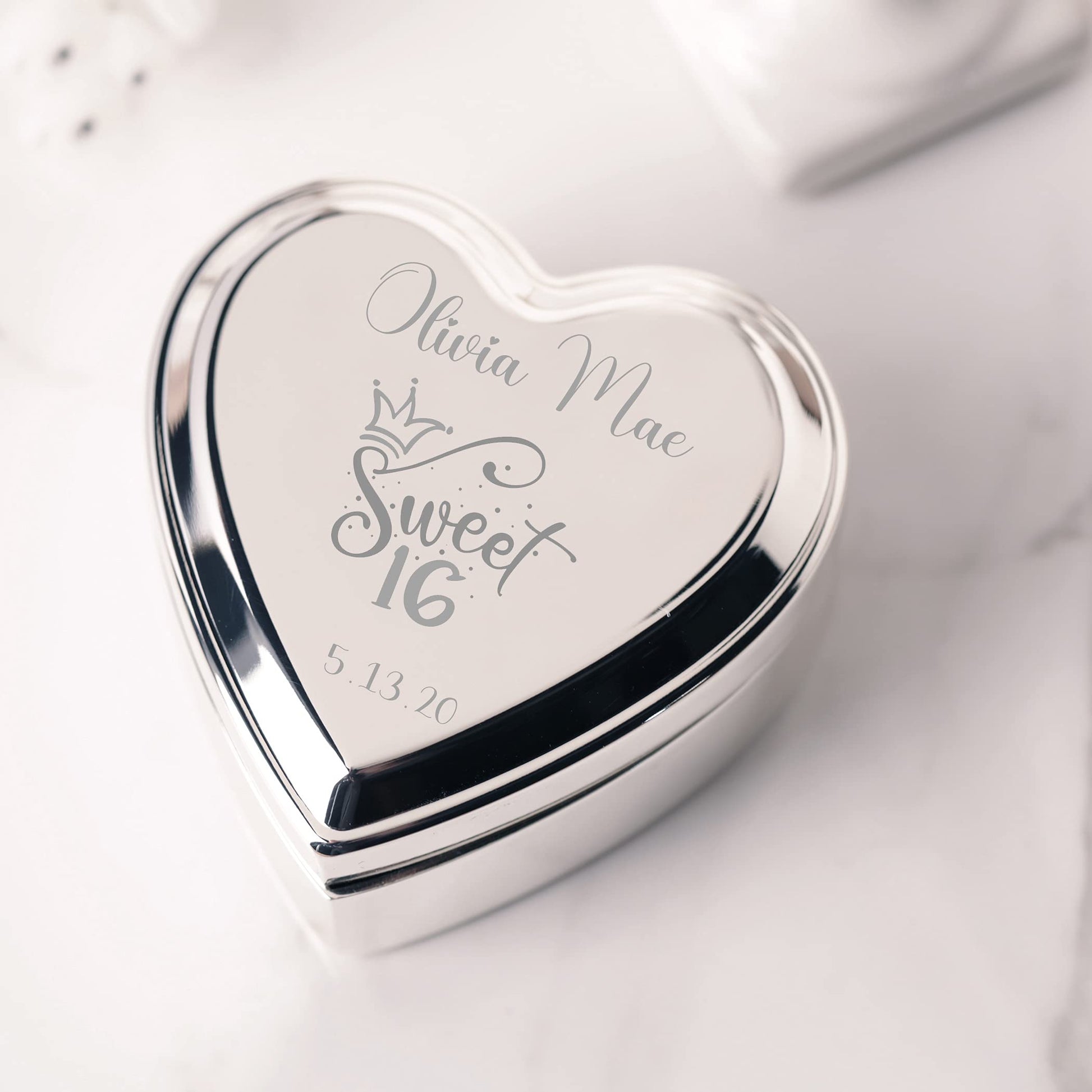 - PREMIUM QUALITY - Keep her beautiful jewelry safe and organized in this heart-shaped silver toned jewelry box. This special keepsake box measures 3.5" x 3.5" x 1.625".