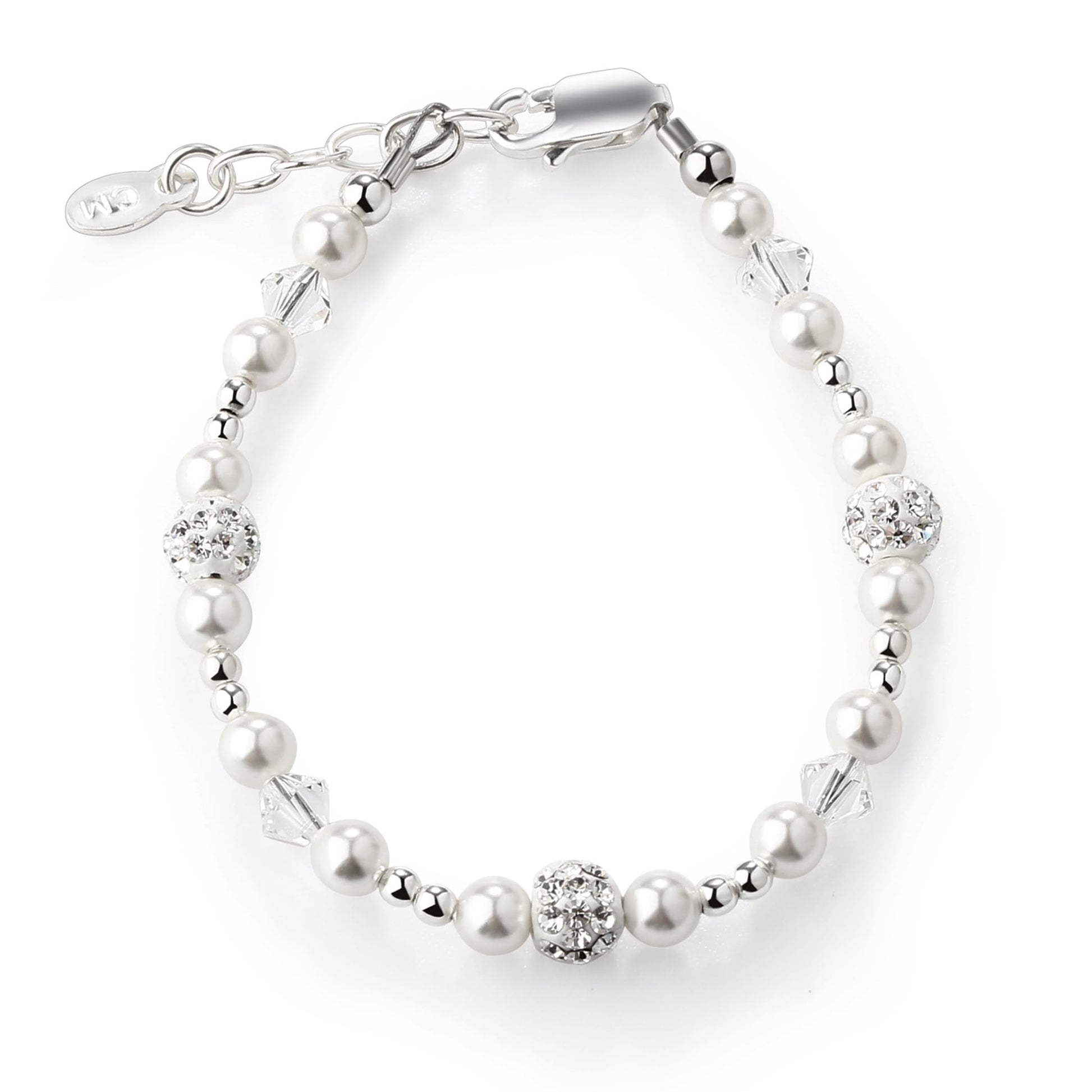 Cherished Moments Sterling Silver Bracelet for Babies, Toddlers and Little Girls with High-End Simulated Pearl, Crystal and Sparkling Stardust Beads