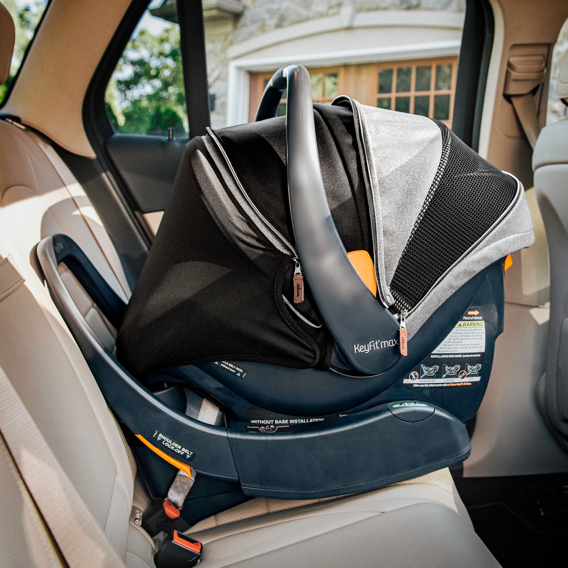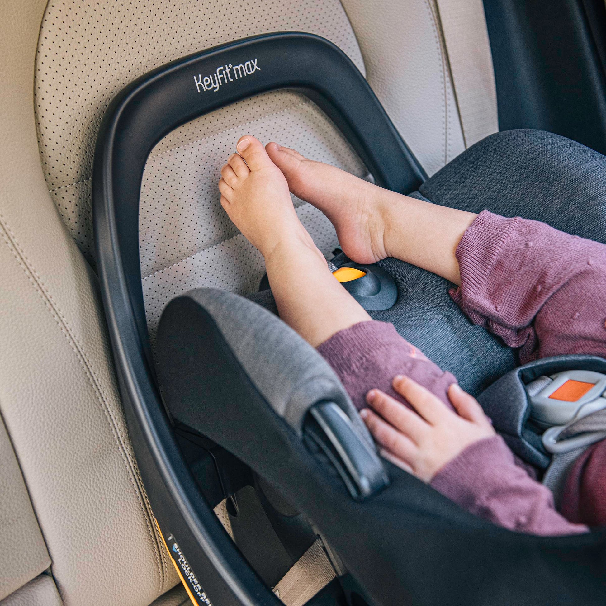 The Chicco KeyFit Max ClearTex Infant Car Seat offers more headrest height and legroom for extended rear-facing use. Featuring ClearTex flame retardant-free fabrics, KeyFit Max ClearTex is GREENGUARD Gold Certified for low chemical emissions, contributing to healthier air quality around your baby. Top-rated, innovative safety features make the KeyFit Max ClearTex the easiest baby car seat to install and use correctly. The carry handle lowers and raises with one hand for easy access.