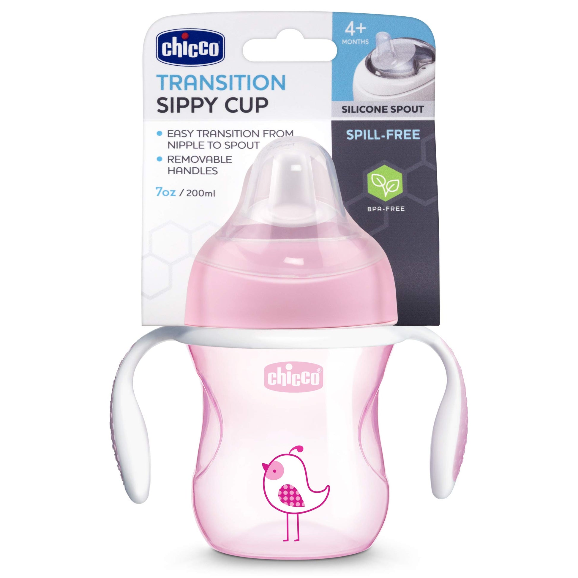 Chicco Transition Sippy Cup with Silicone Spout and Spill-Free Lid 7oz.| Calibration Markings | Removable Handles | Top-Rack Dishwasher Safe | Easy to Hold with Ergonomic Indents | Pink| 4+ Months