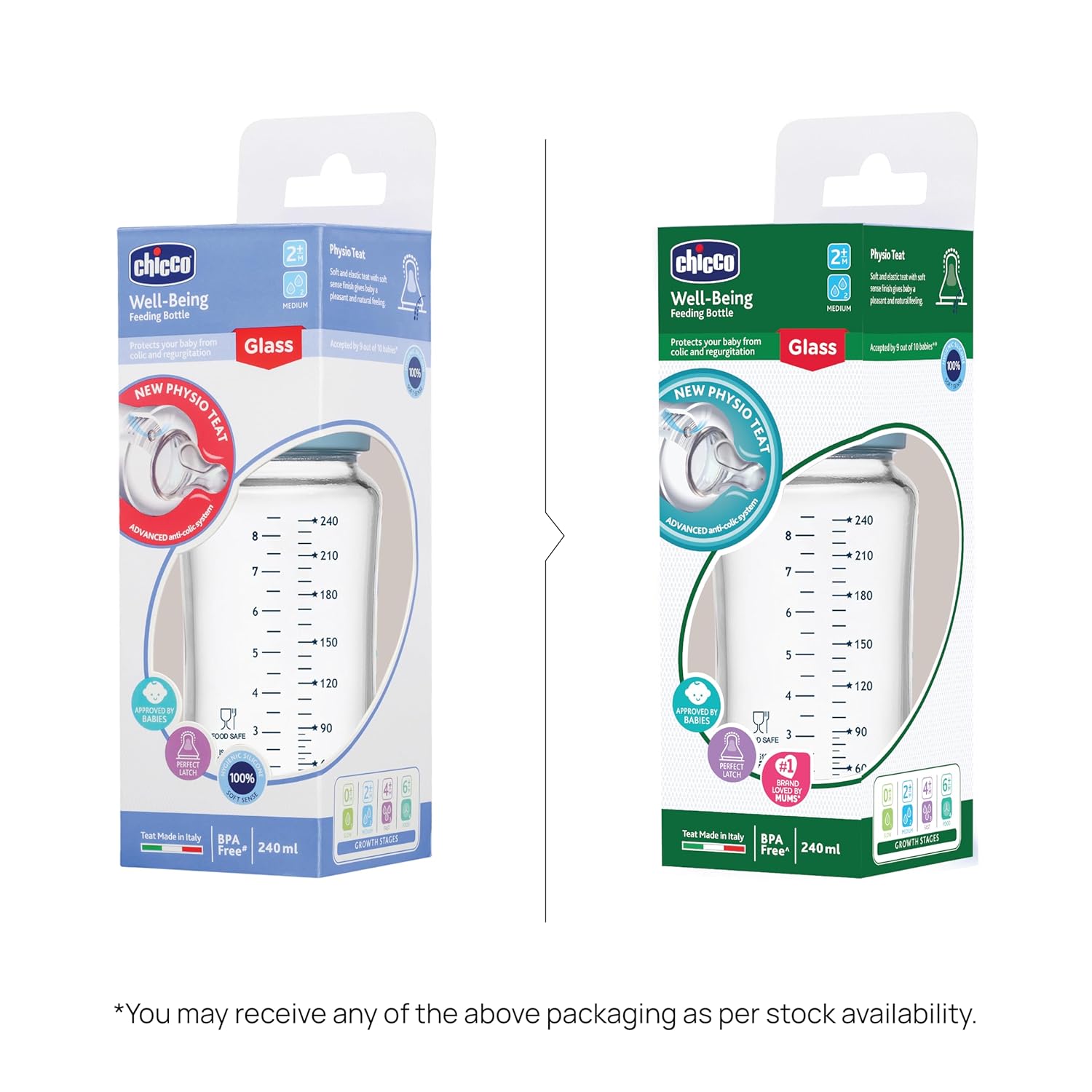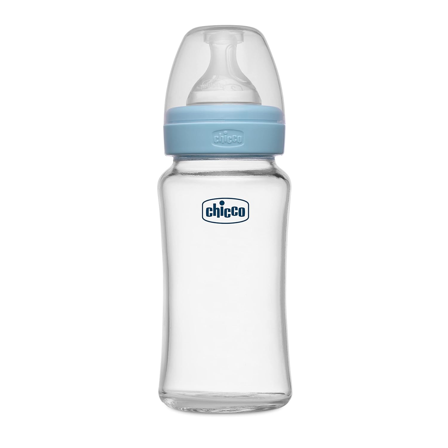 chicco Well-Being Glass Feeding Bottle (240ml, Medium Flow) (Blue)
