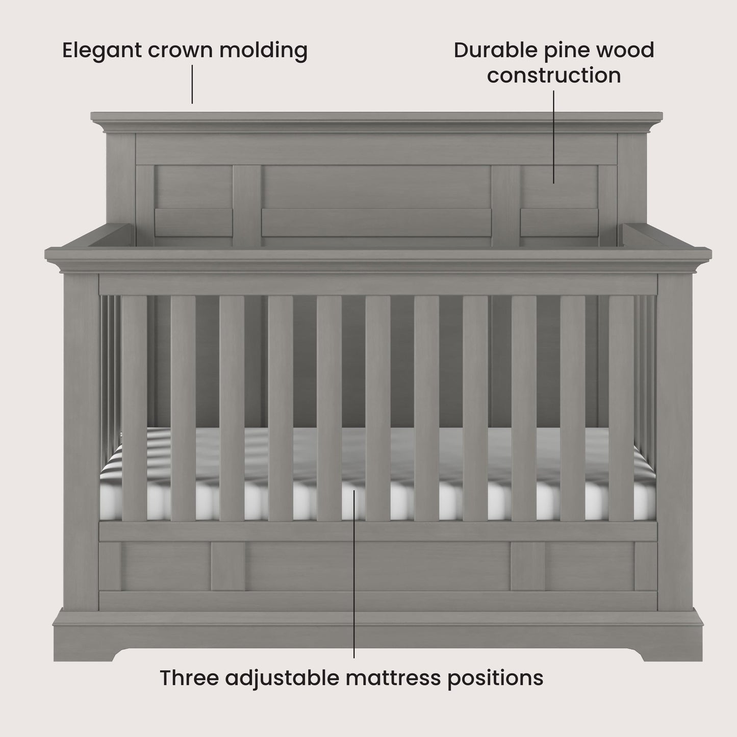 - Elegant Traditional Style: The Jordyn collection creates a one-of-a-kind feel for every nursery with crown molding and raised panels. Crafted with strong, sturdy pine wood and MDF with non-toxic, baby safe finishes that are designed to last.