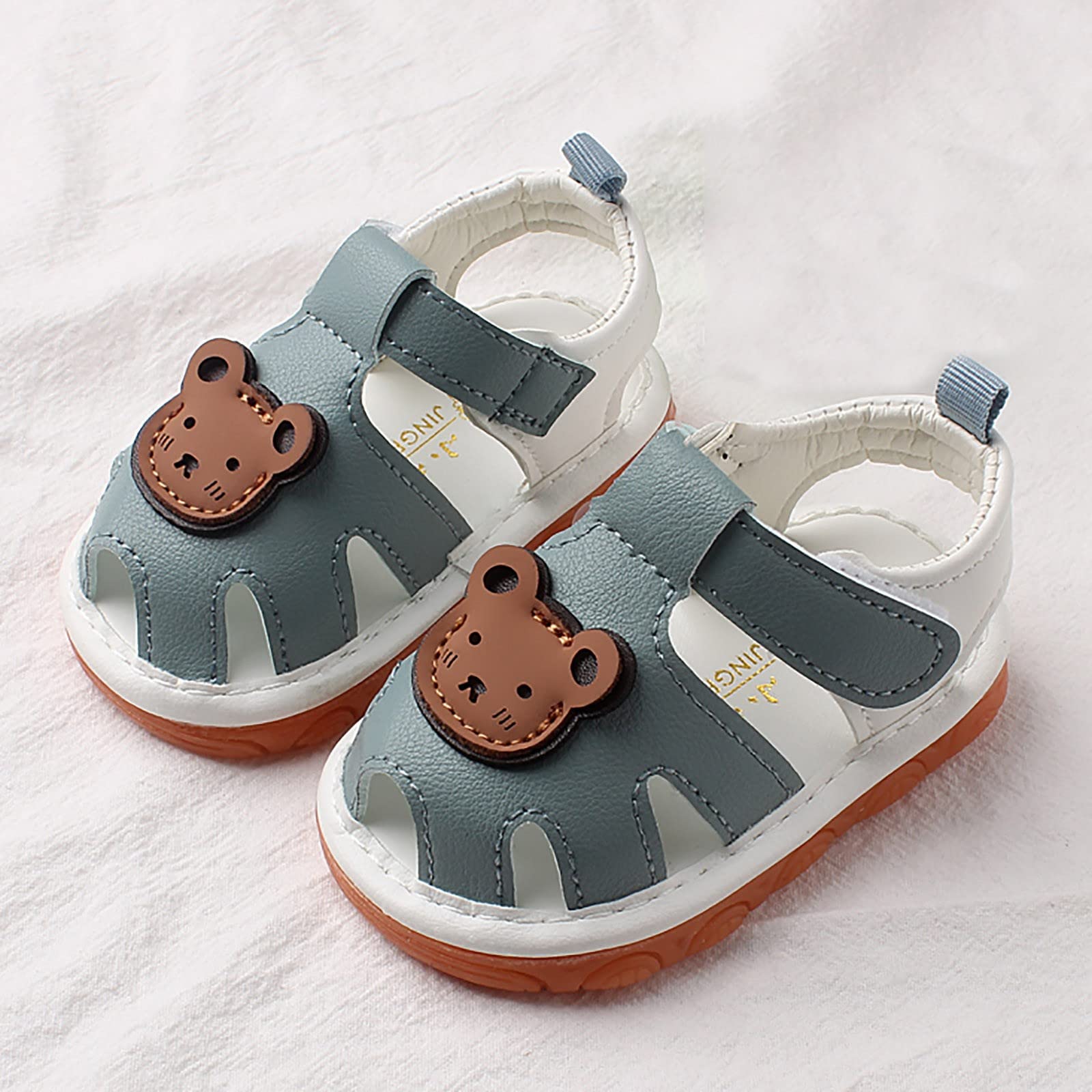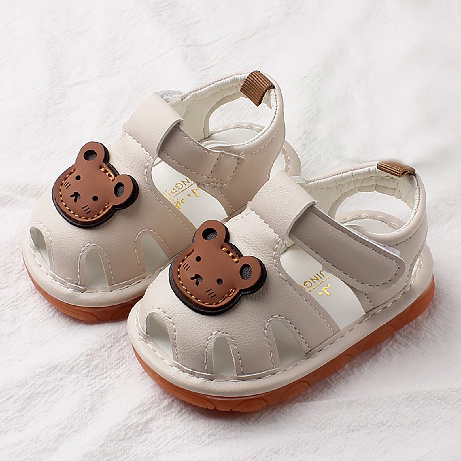 Childrens Bear Leather Foam Sandals Baby Boys Girls Hook Loop Flat Wide Barefoot Shoes Summer Outdoor Casual Water Shoes