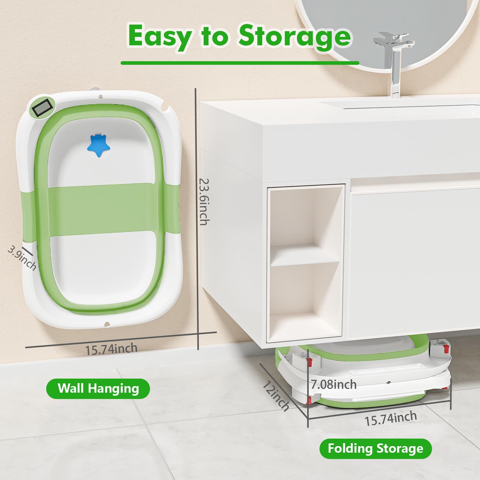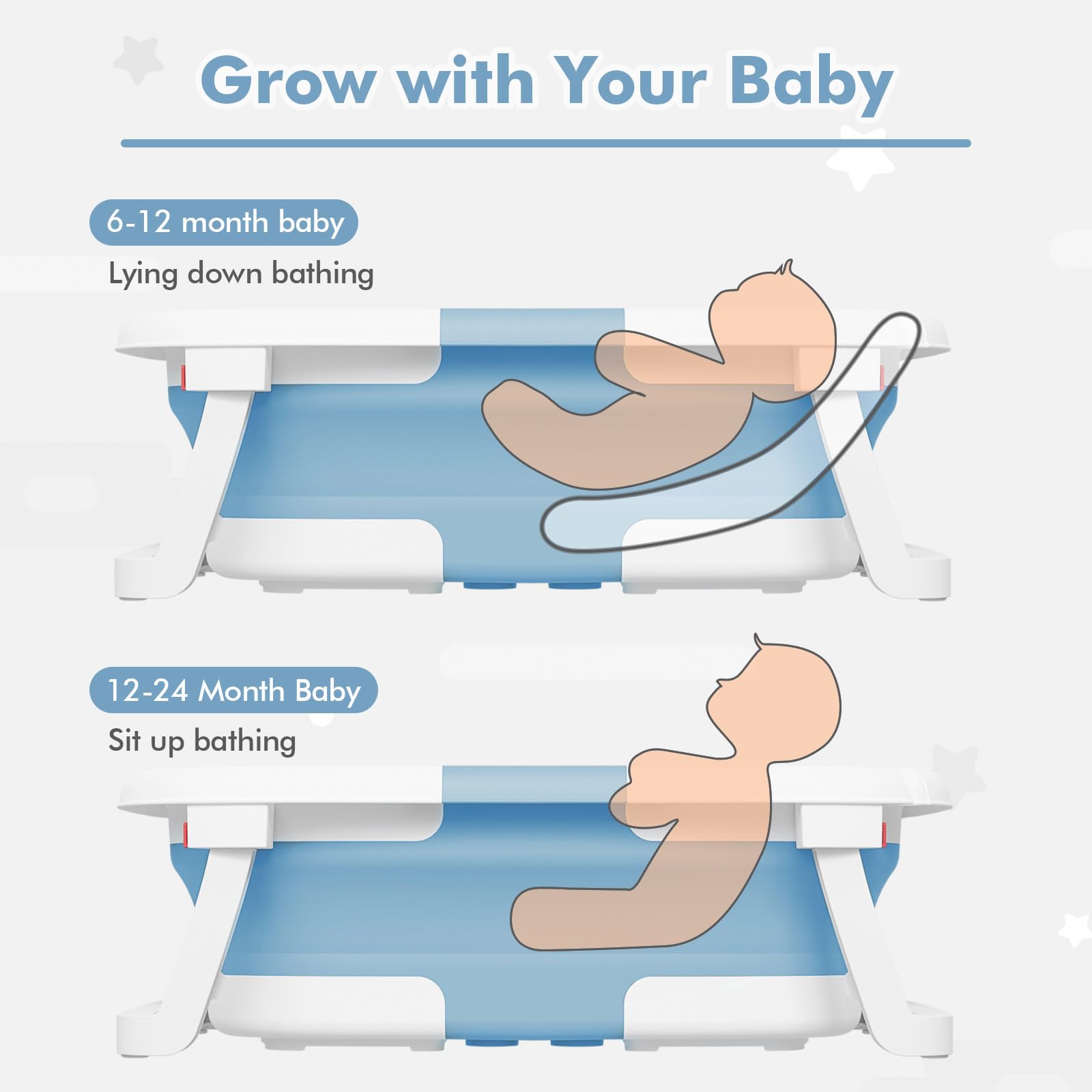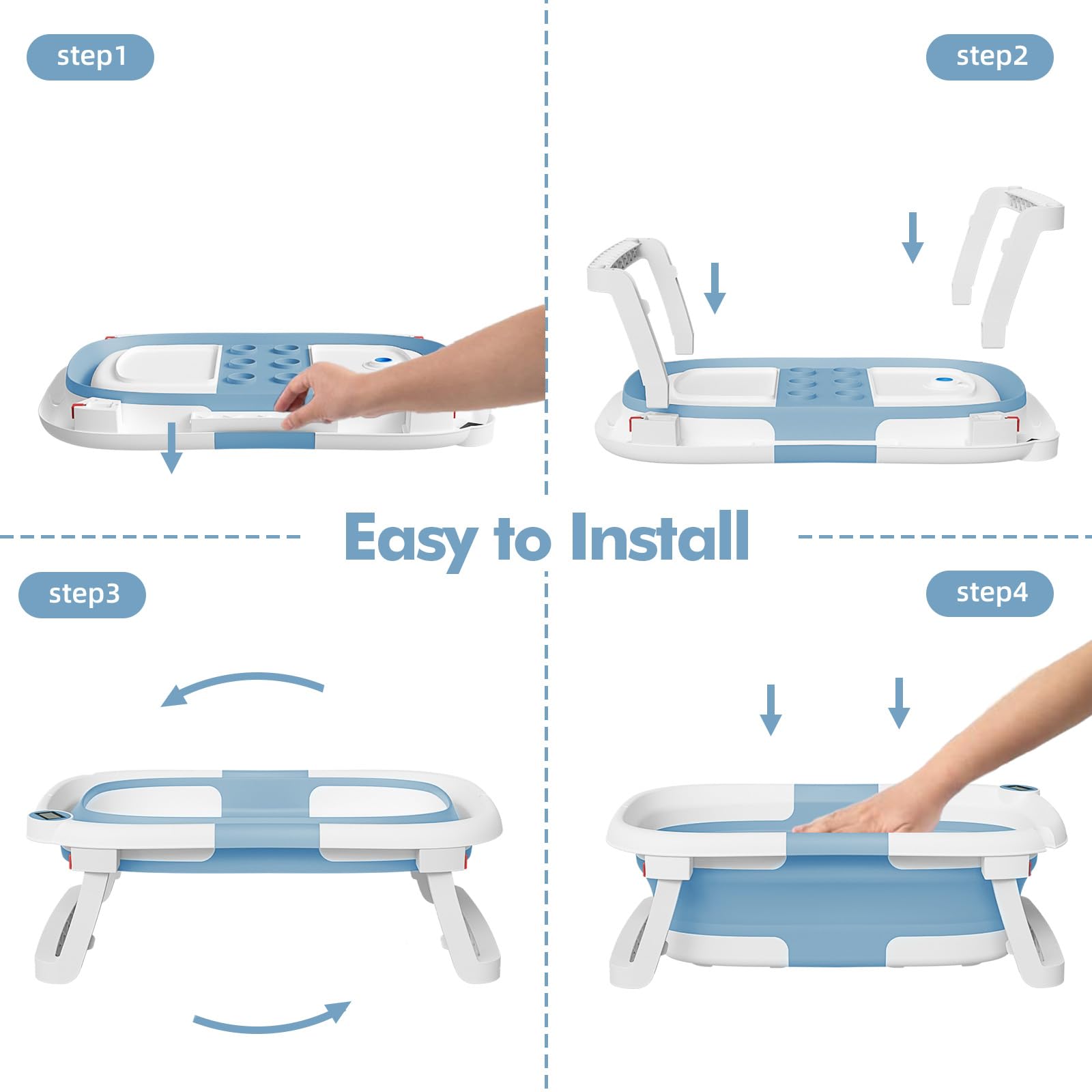 - 【Visible Temperature】Baby Bathtub is equipped with a temperature sensor, convenient for parents to adjust the water temperature in time. Ensure the safety and comfort of the baby when bathing.