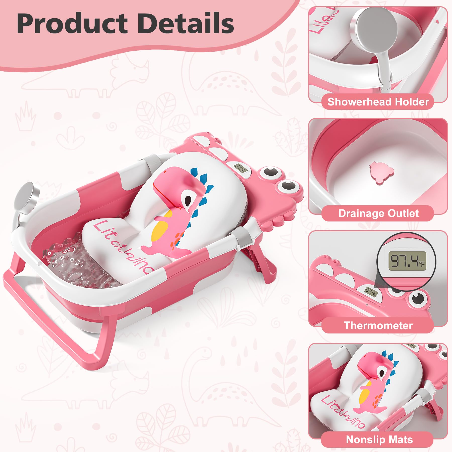 The toddler bathtub is equipped with a real-time temperature sensor that continuously monitors the water temperature to ensure it is at the right temperature, maintaining a safe and comfortable bathing environment for your baby.