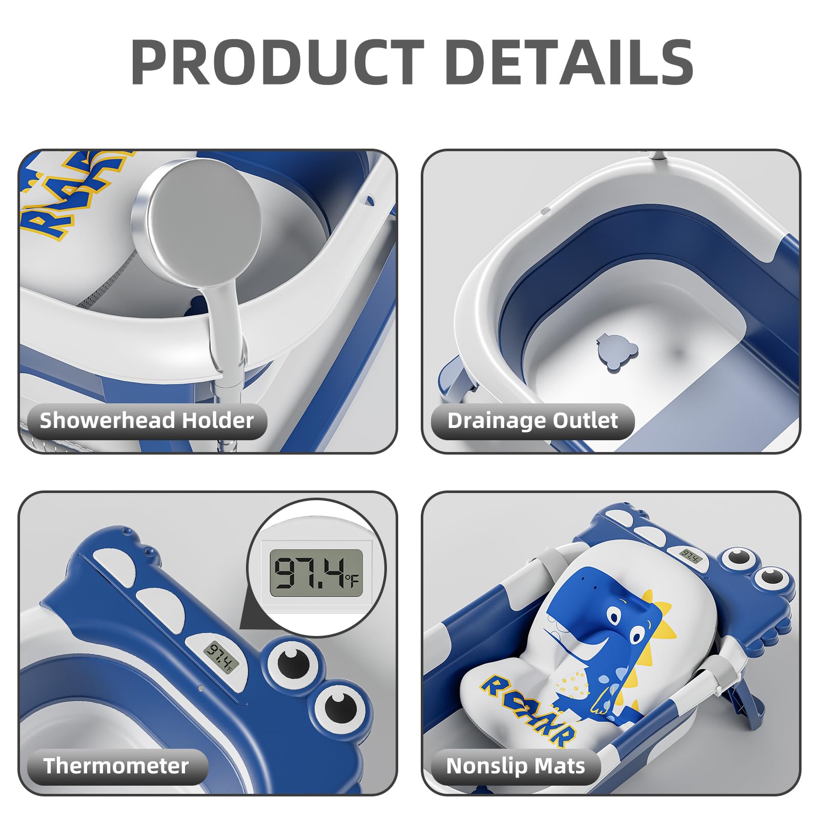 - Advanced Real-time Temperature Monitoring: Equipped with a cutting-edge temperature sensor, our travel baby bathtub offers visible real-time temperature monitoring. Instant reminders help prevent scalding or exposure to cold water. The wrap-around temperature lock system ensures accurate monitoring, making it versatile for use at home, during travel, or camping trips.