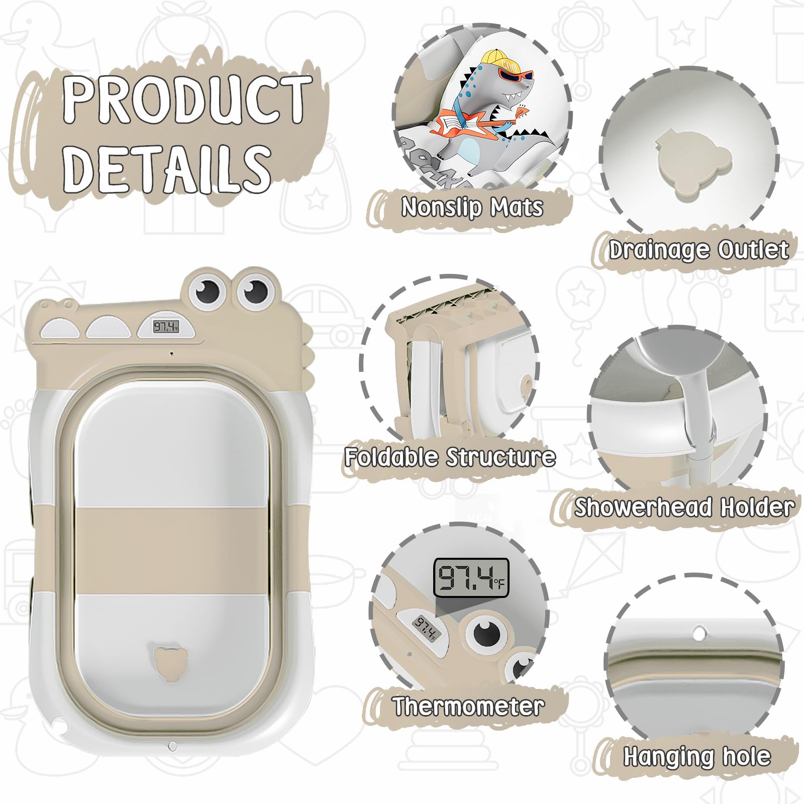 - Adorable and Functional Design: Our baby shower tub features a charming crocodile-shaped design that adds joy to bath time for your little one. Its foldable design ensures convenience and safety, accompanying your baby from newborn to toddler (0-36 months) under adult supervision. Enjoy a delightful and safe bathing experience at every stage of your baby's growth.