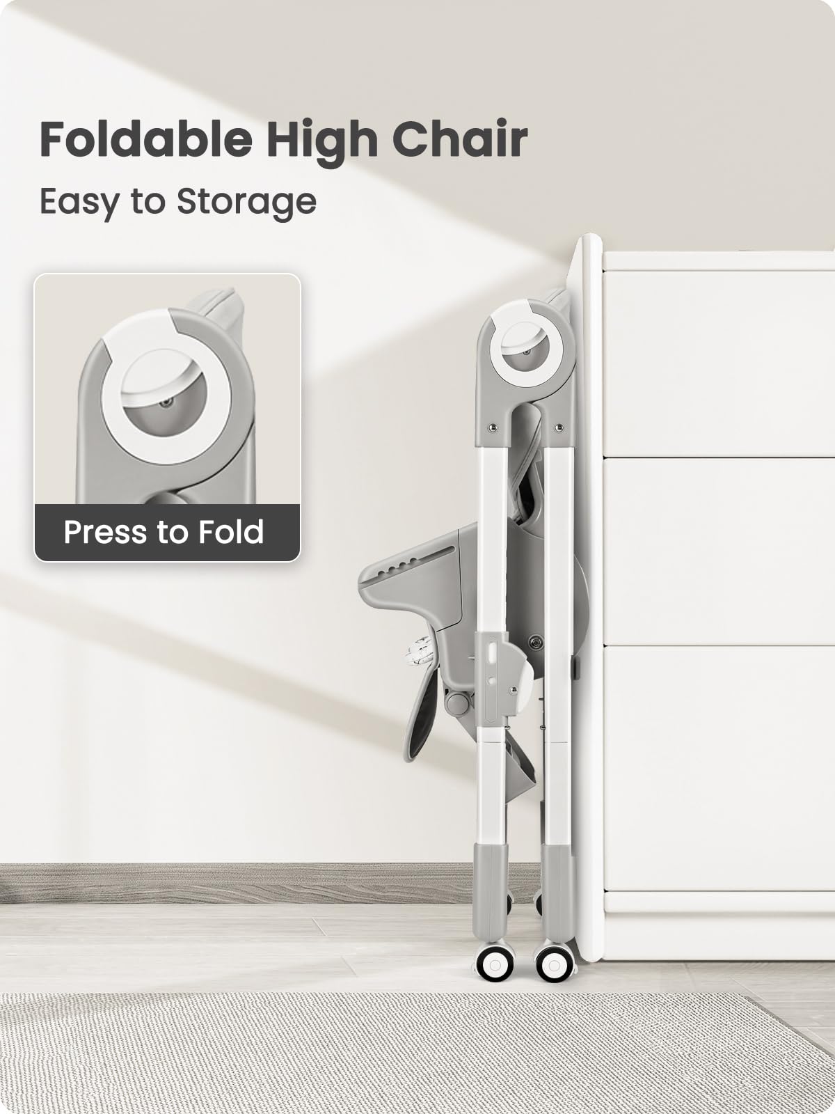 - Compact Foldable Convenience: Designed to save space, this high chair folds into a compact size for easy storage. The rear legs also provide a built-in tray holder to keep everything organized.