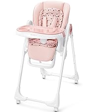 Convertible High Chairs for Babies and Toddlers, Foldable High Chair with Adjustable Backrest, Footrest and Tray, Baby Dinning High Chair with Lockable Wheels, Star Pink