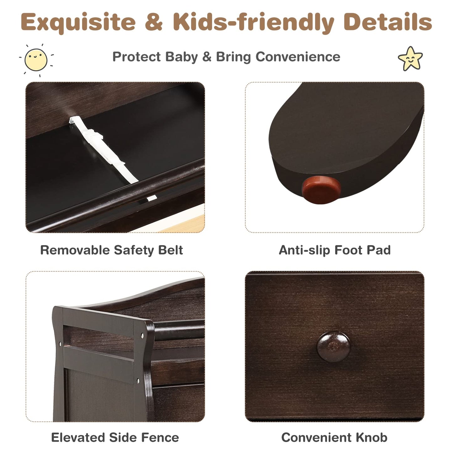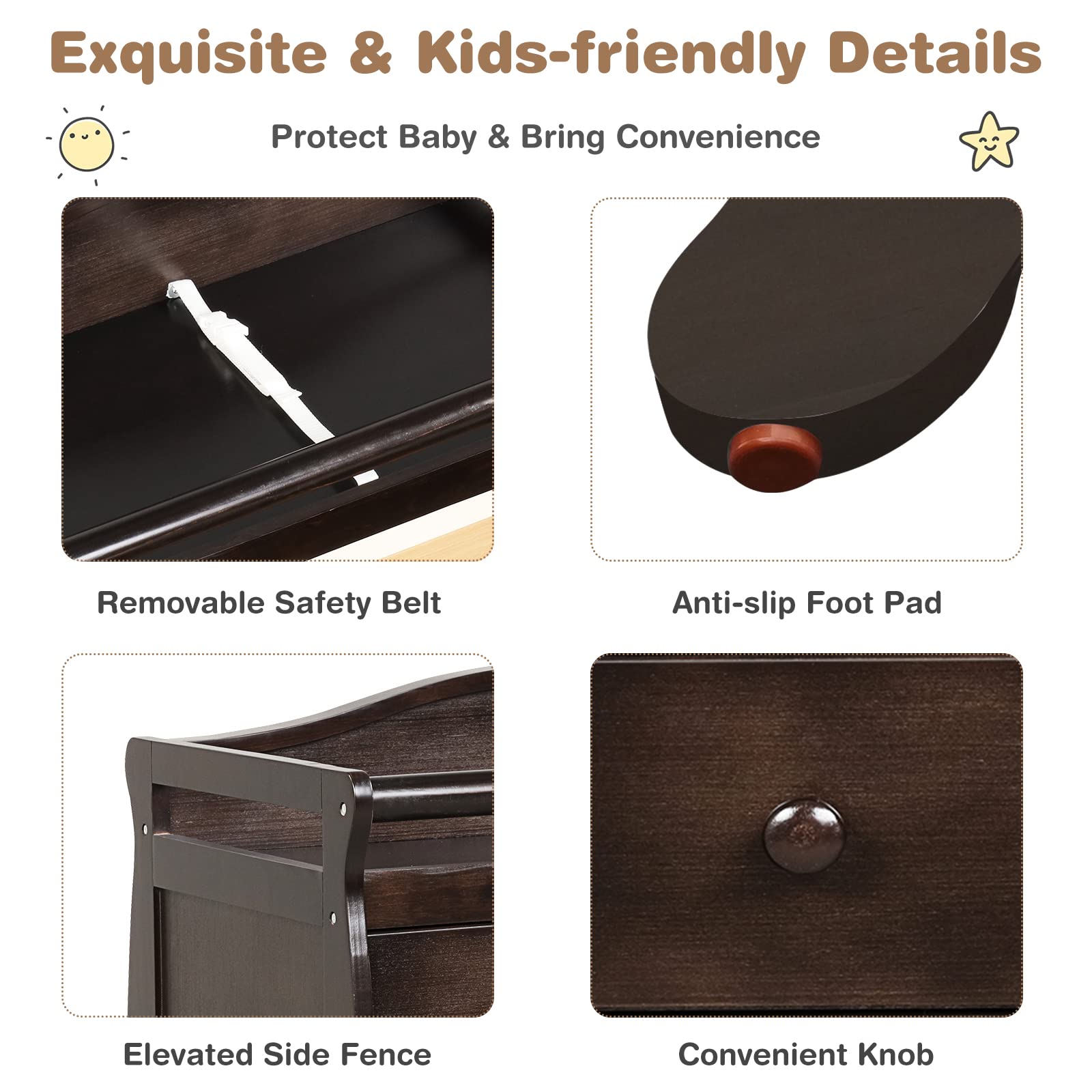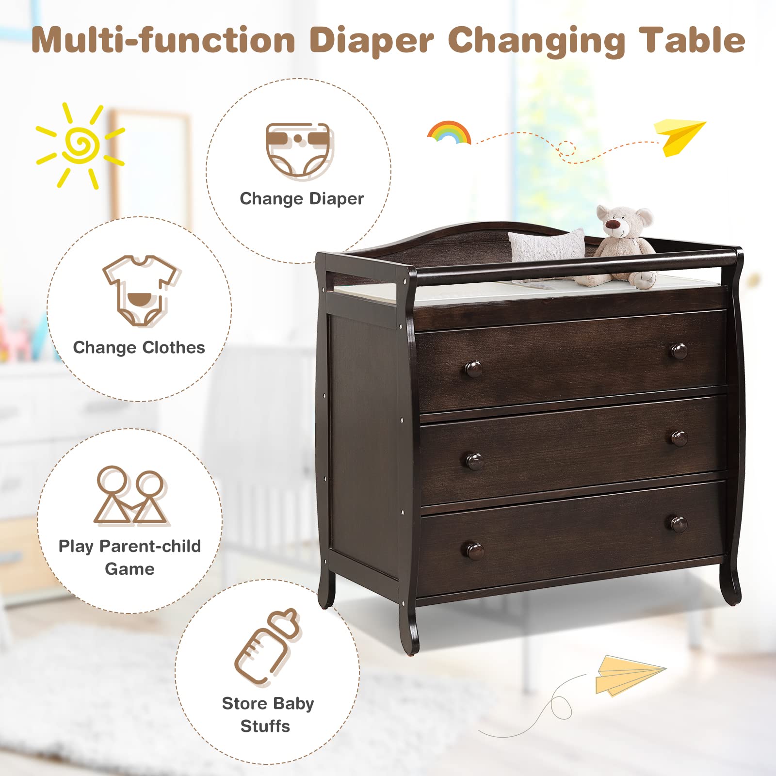 Costzon 3-Drawer Changing Table, Infant Diaper Changing Station with Drawers, Safety Rails & Strap, Baby Changing Table Dresser for Nursery, Easy Assembly (Brown)